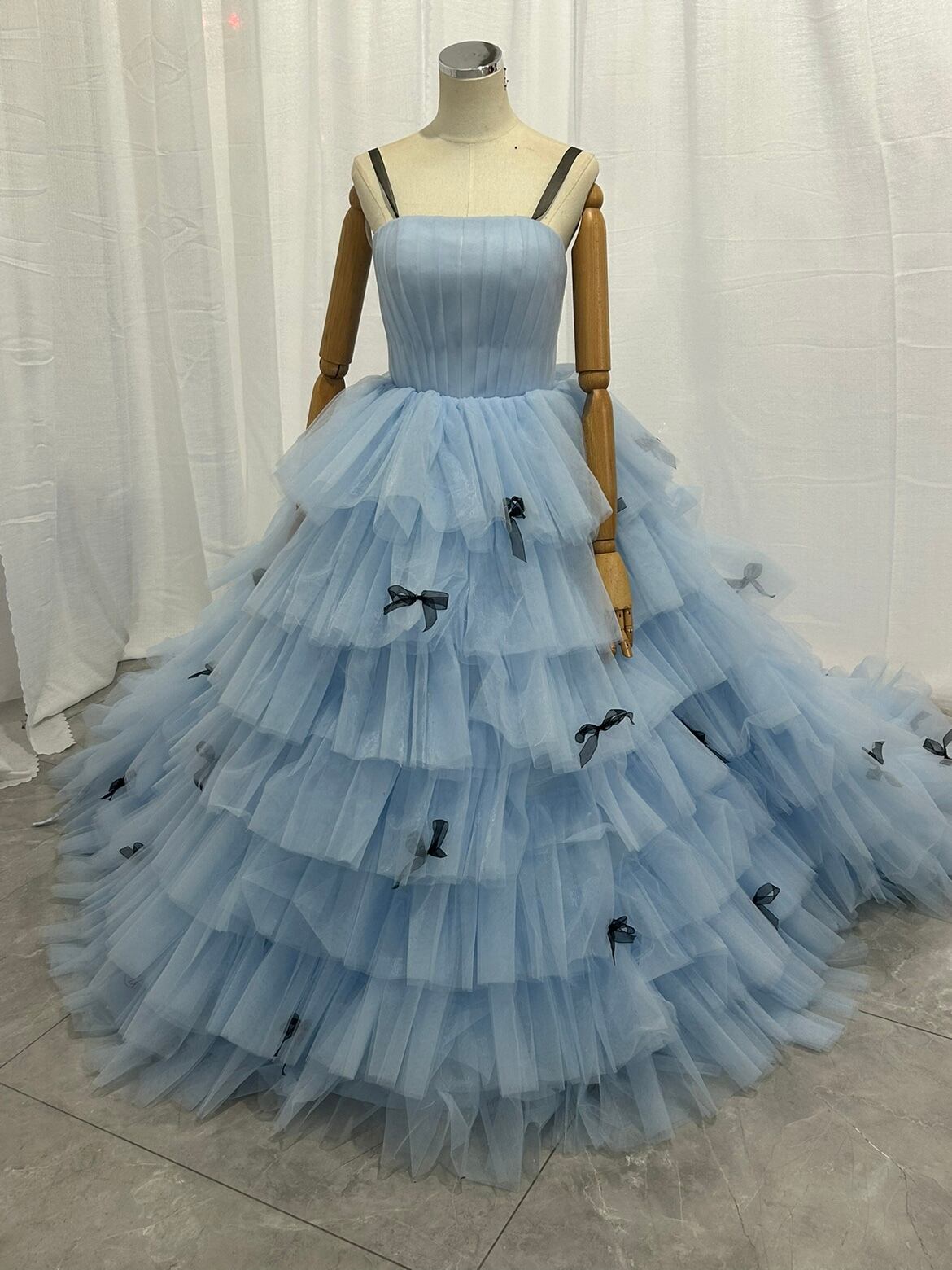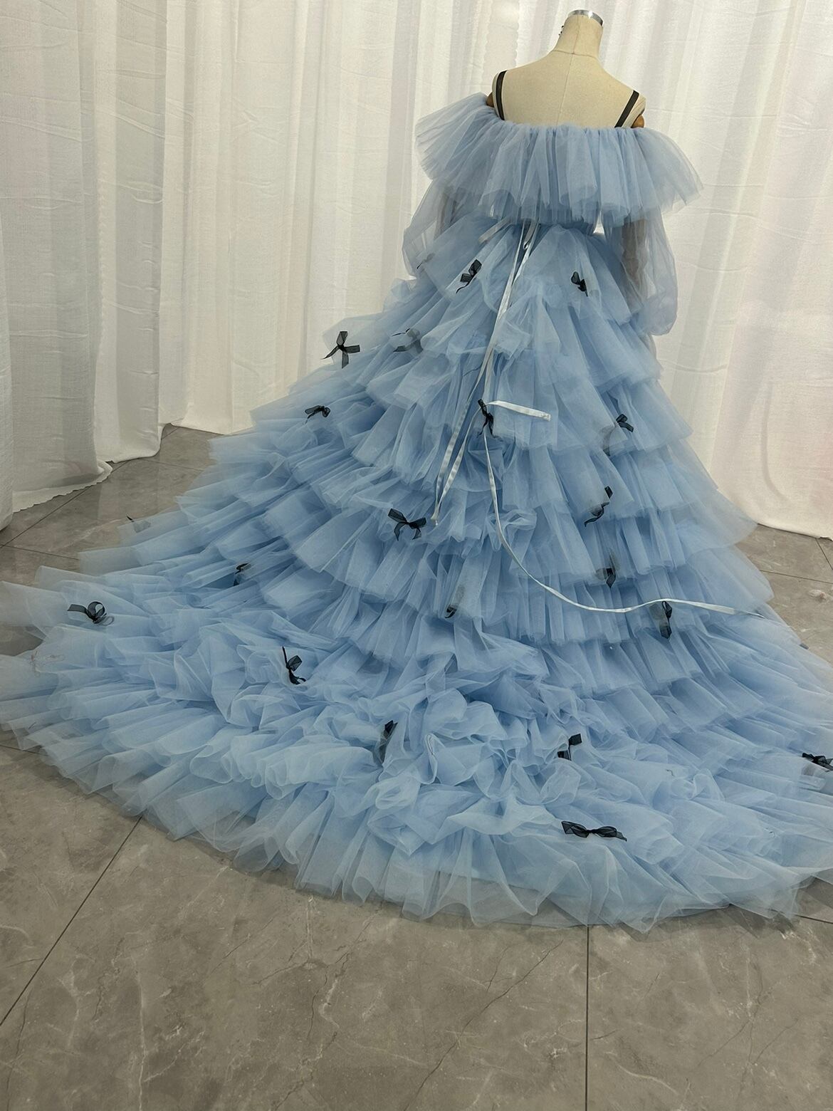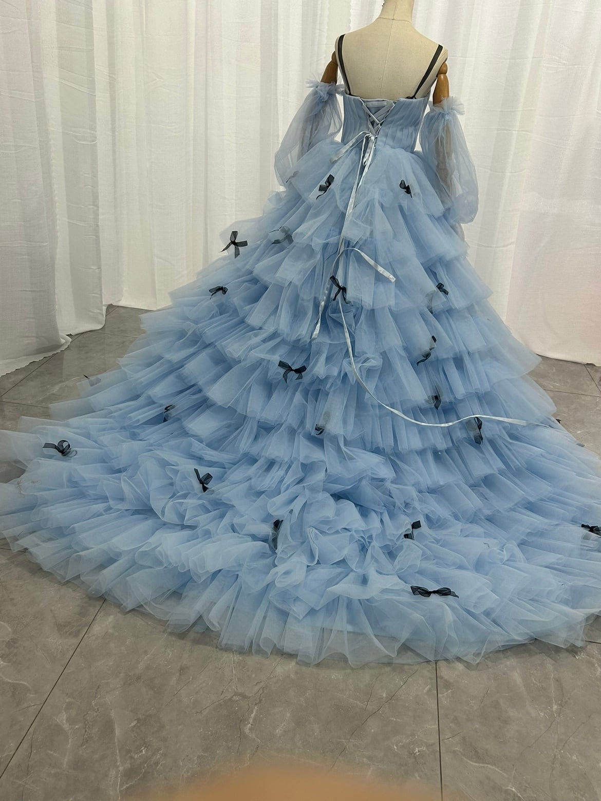 人気上昇! ブルーグレー ブルーグレー リボン カラードレス ソフトチュール ビスチェ 柔らかく重ねたチュールスカート結婚式
