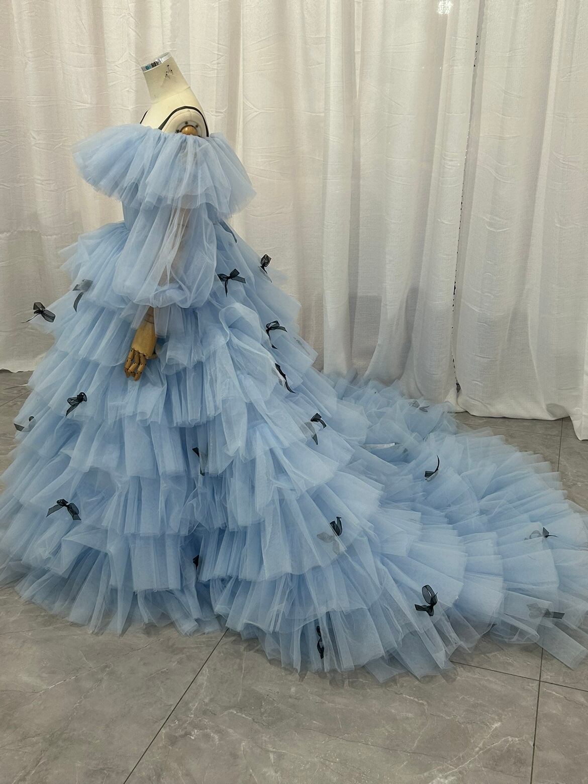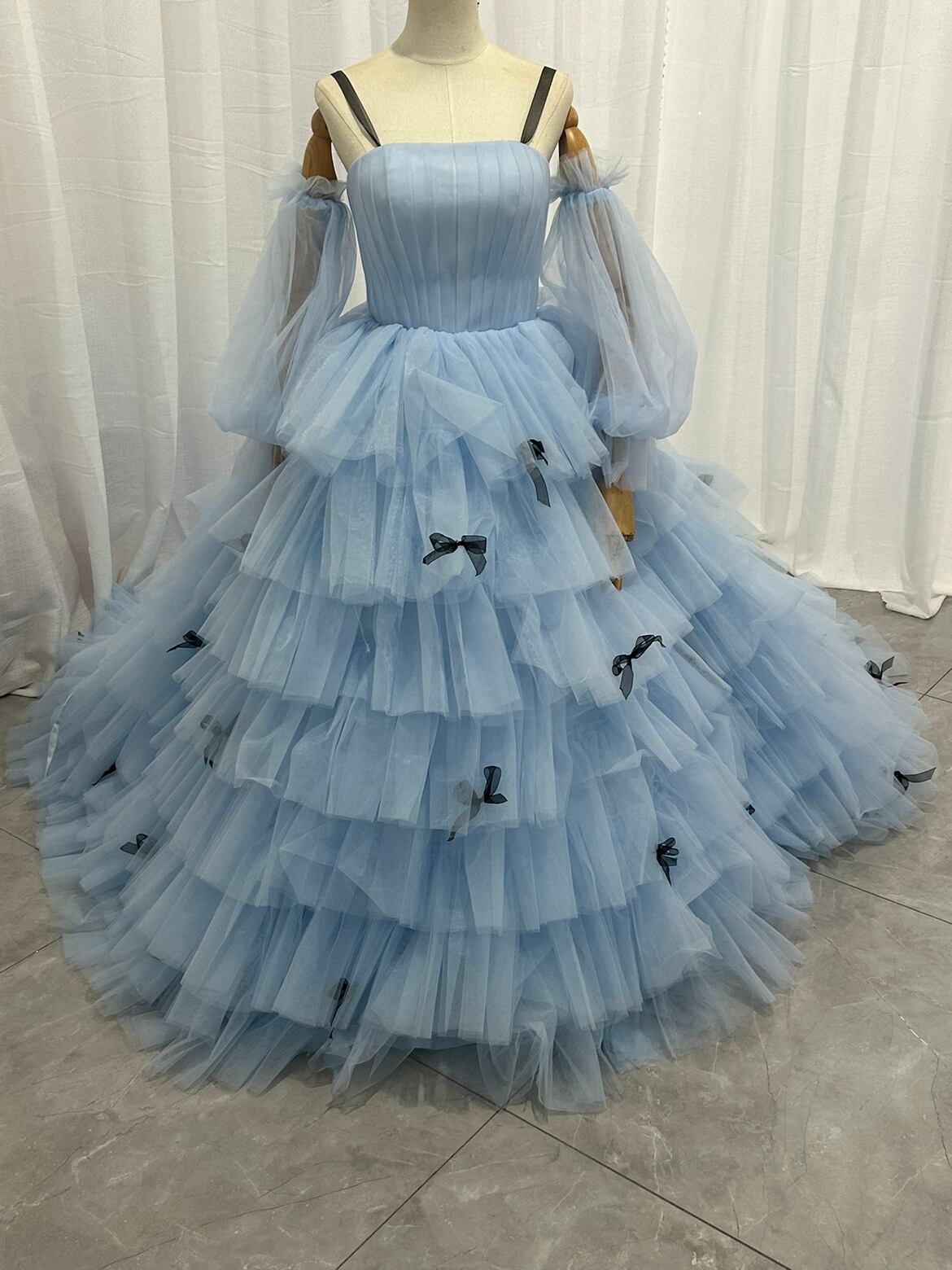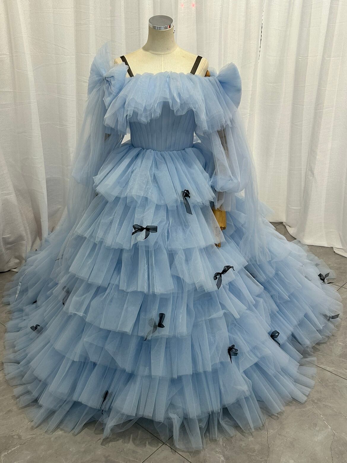 人気上昇! ブルーグレー ブルーグレー リボン カラードレス ソフトチュール ビスチェ 柔らかく重ねたチュールスカート結婚式