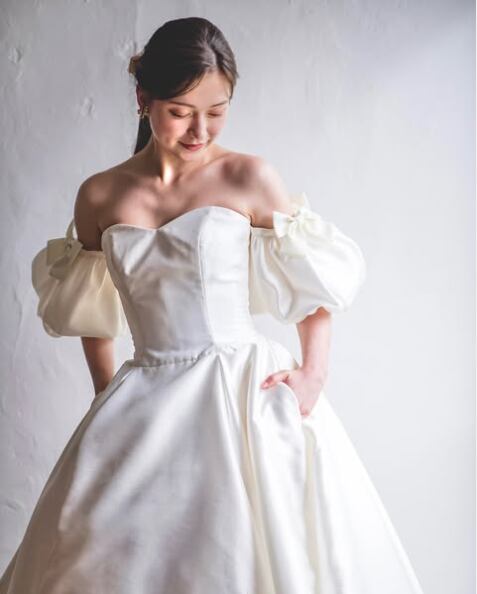 美品!ウエディングドレス Aラインドレス リボンのパフスリーブ 二次会ドレス イブニングドレス パーティードレス【色変更可能】