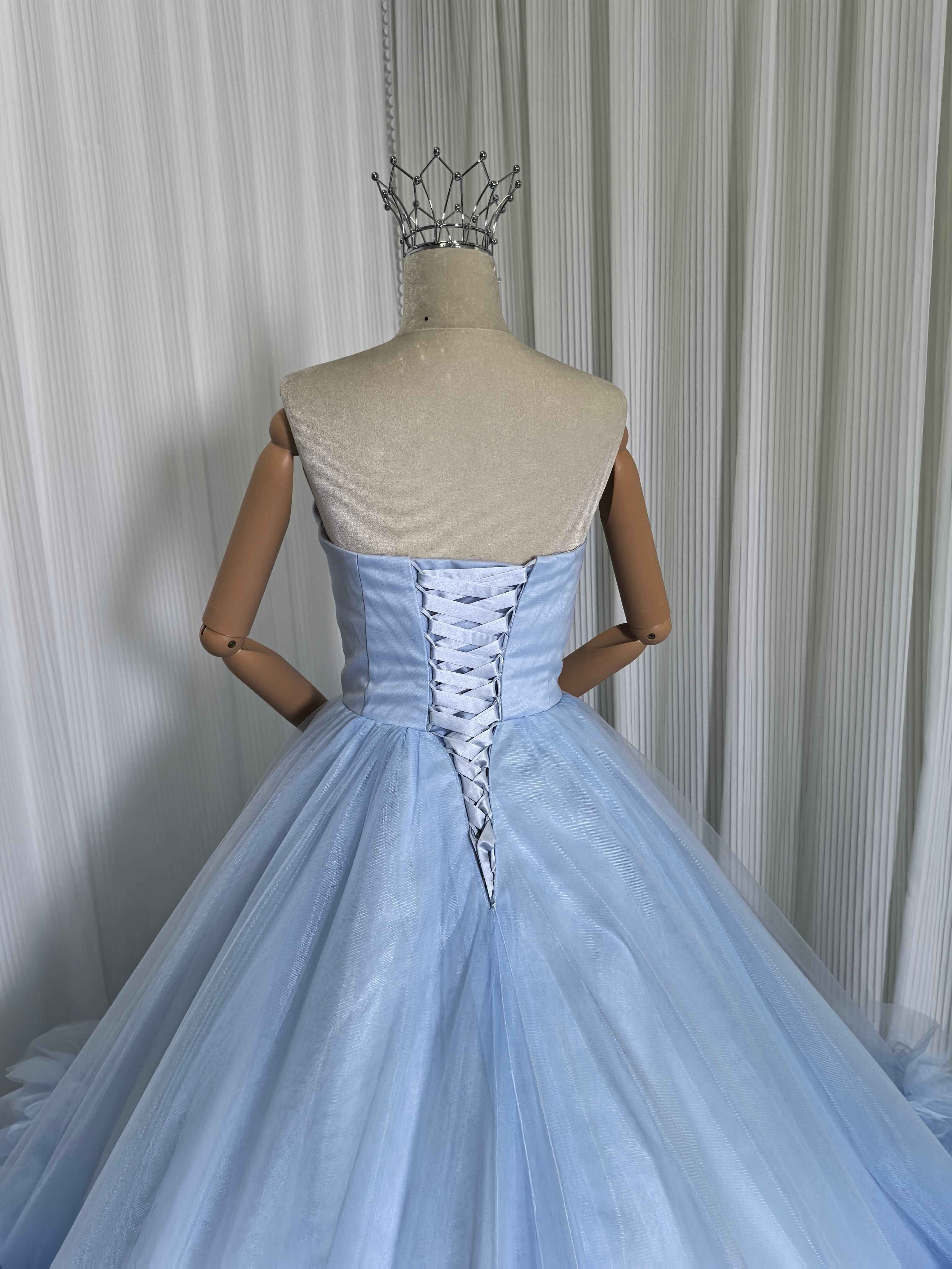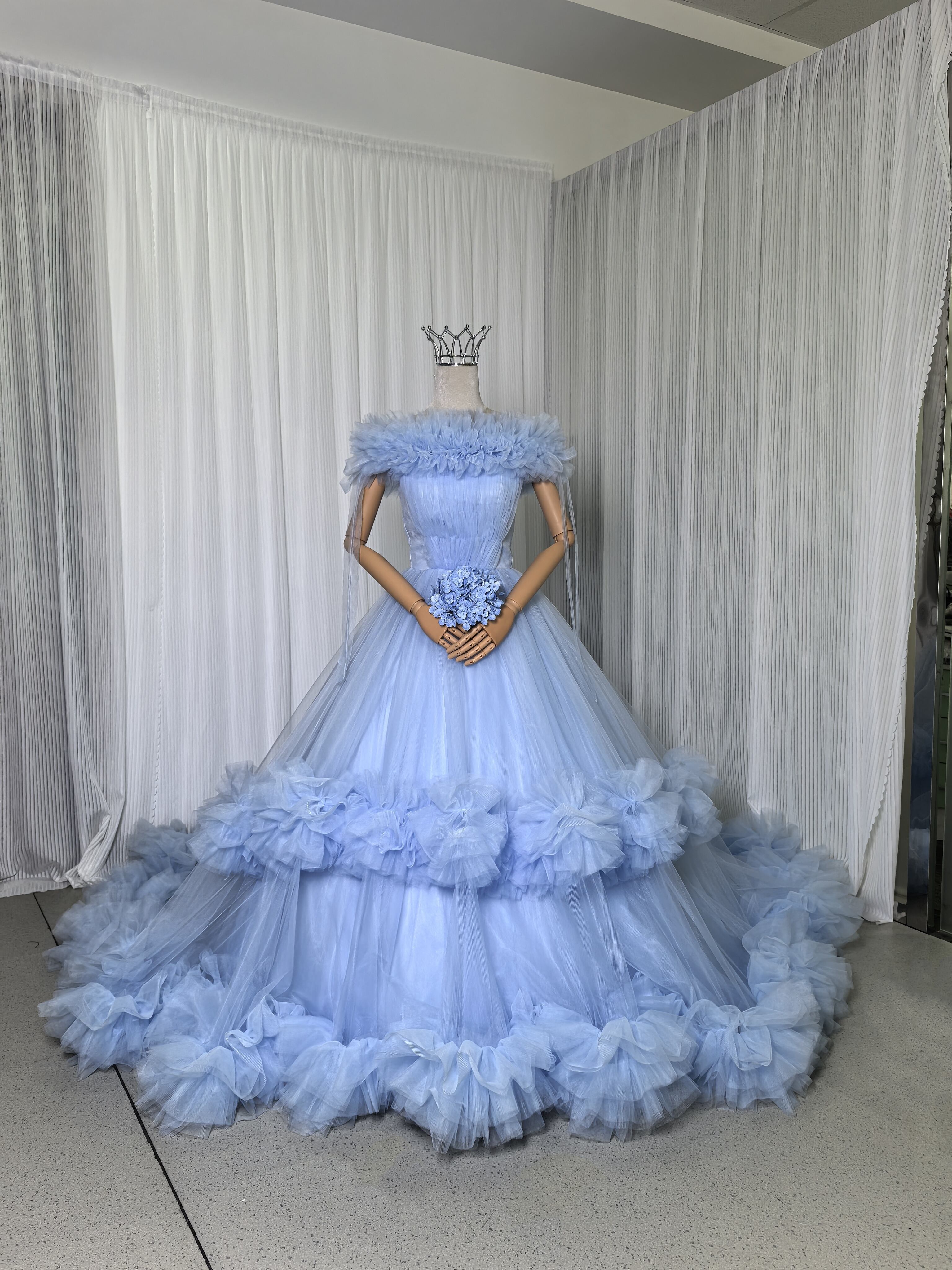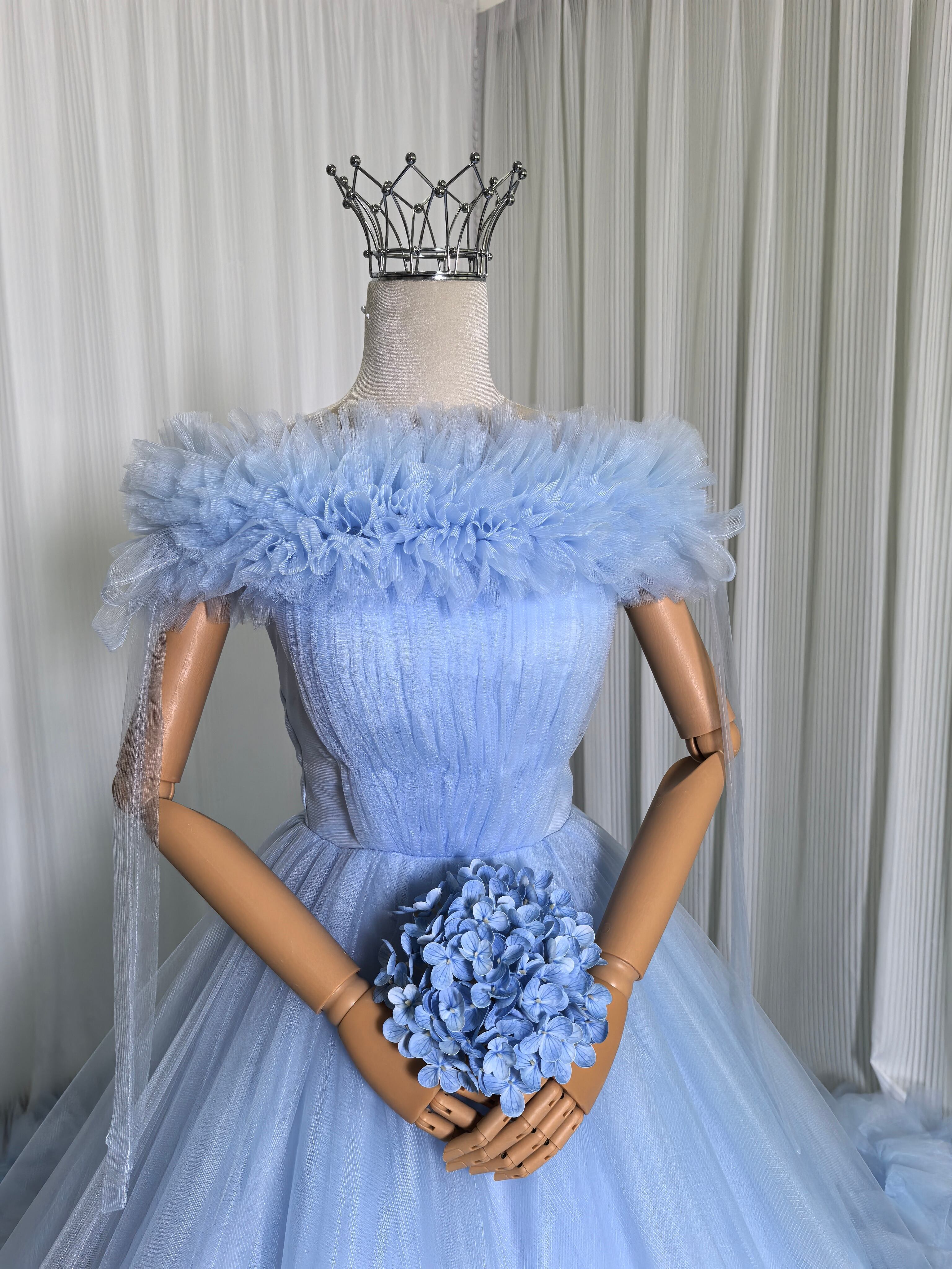 実例写真!爽やかで優しいブルー カラードレス ロールカラー プリンセスライン スパコール イブニングドレス 前撮り パーティードレス【色変更可能】