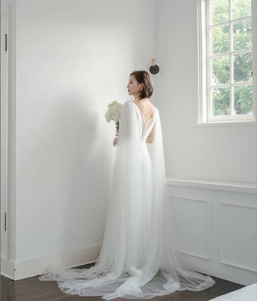 美品!ウエディングドレス ノースリーブ vネック ソフトチュール ストレートスタイル 二次会ドレス パーティードレス【色変更可能】