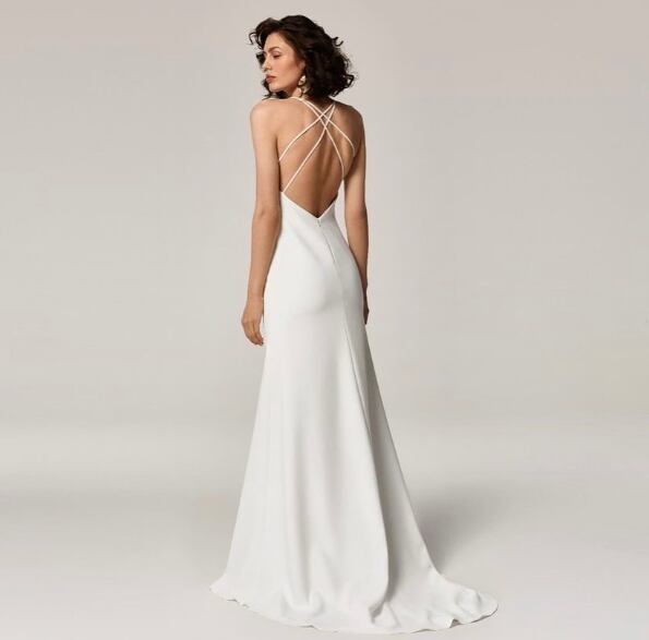 美品!ウエディングドレス キャミソール バックレス vネック スレンダーライン 高見せ 二次会ドレス パーティードレス【色変更可能】