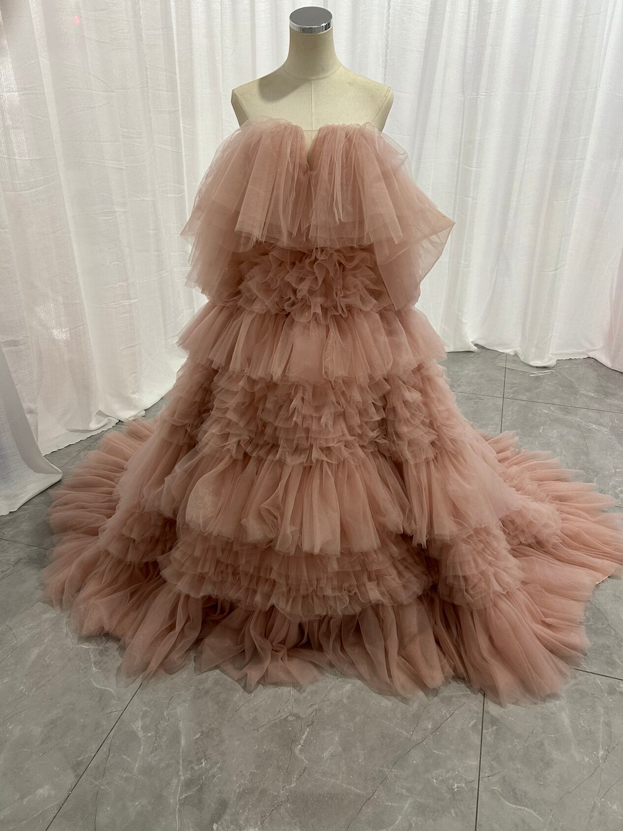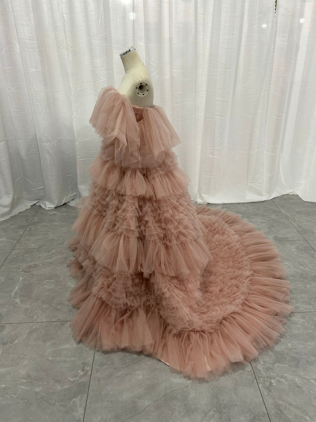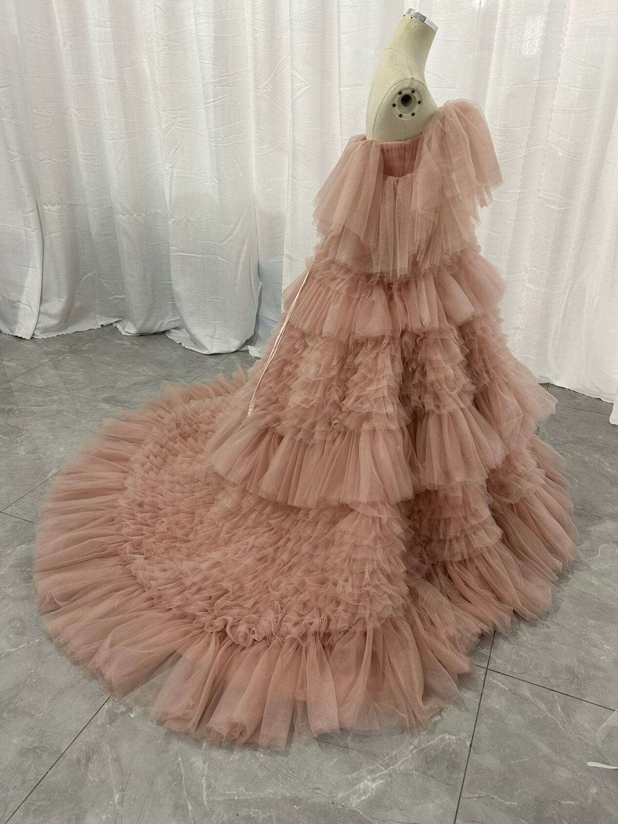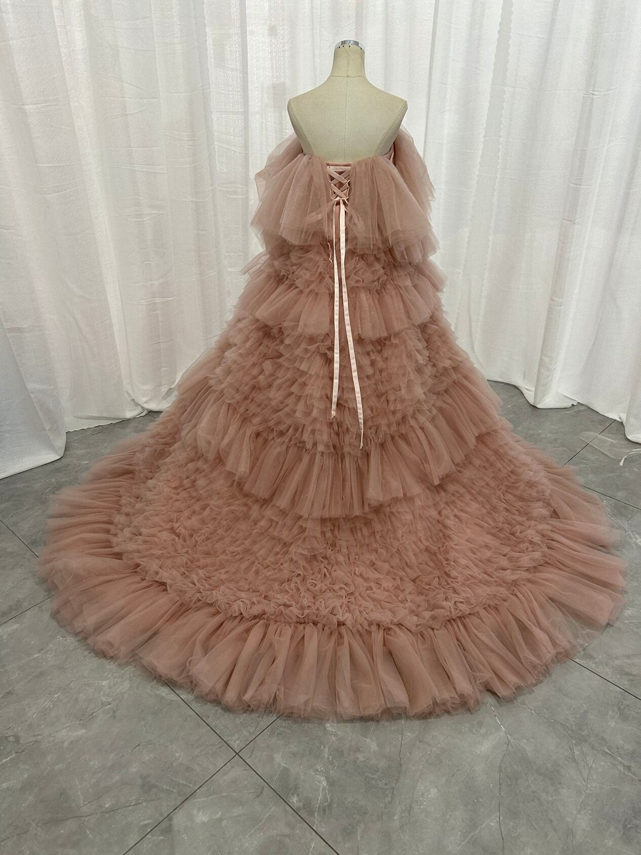 韓国風もこもこチュールドレス ピンクカラードレス フリルオフショルダー お色直し ふわふわ ボリューム