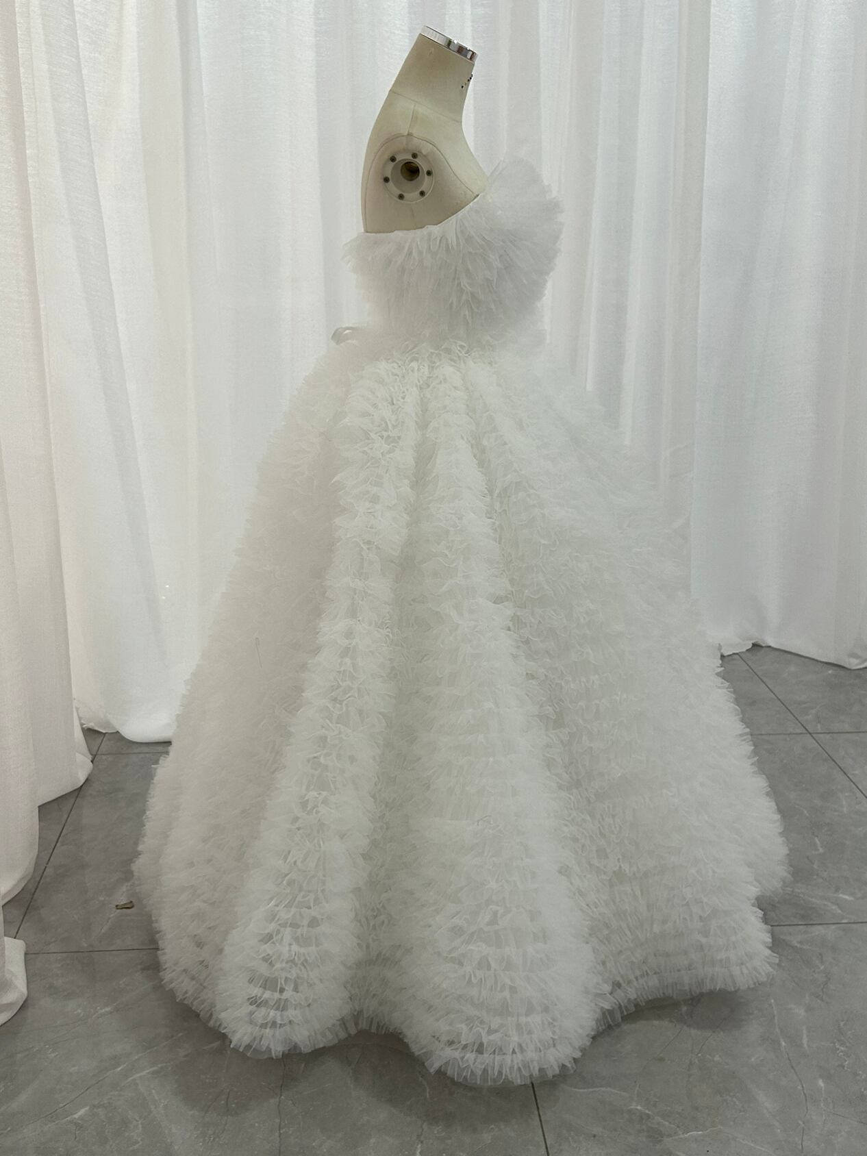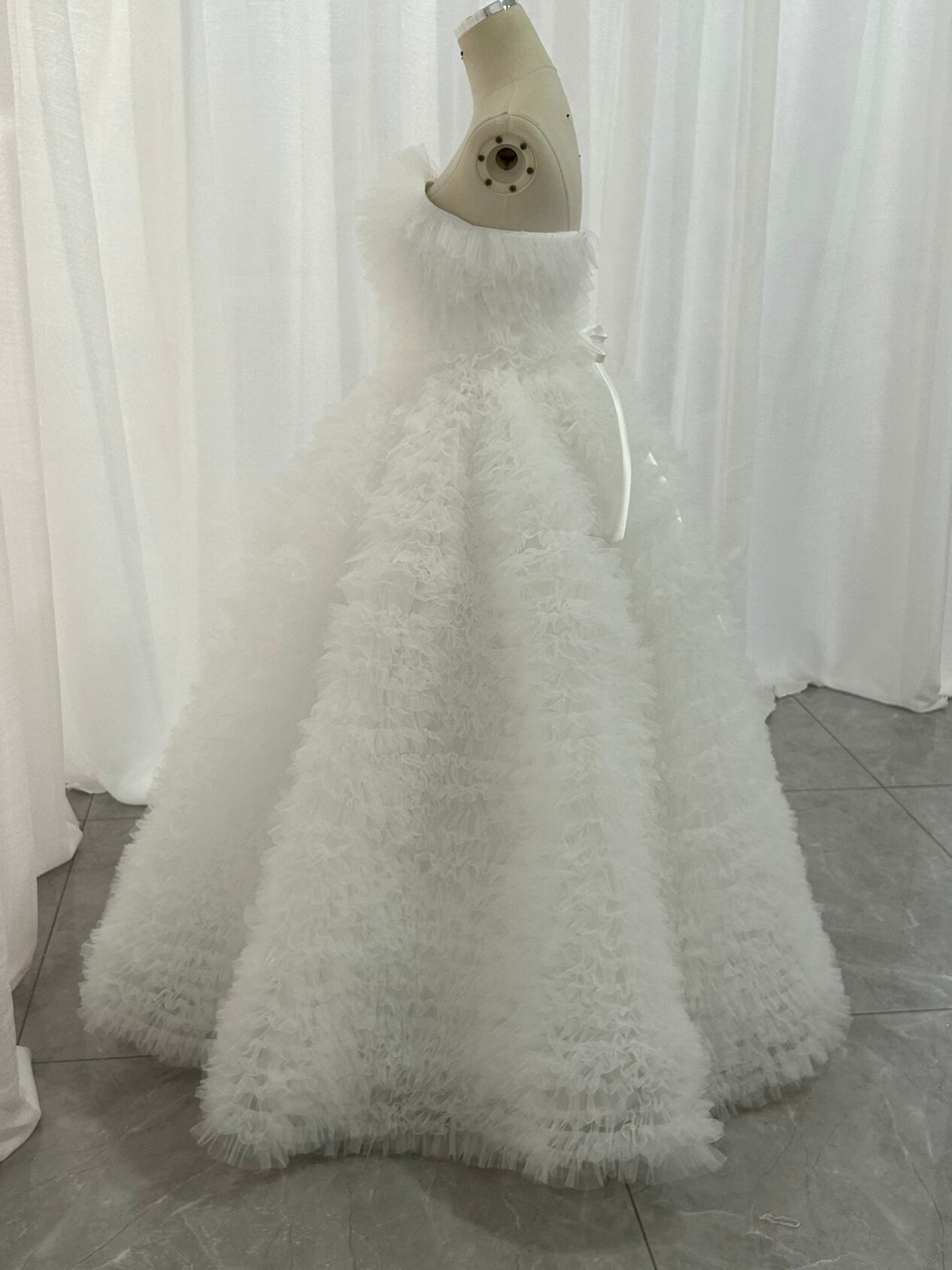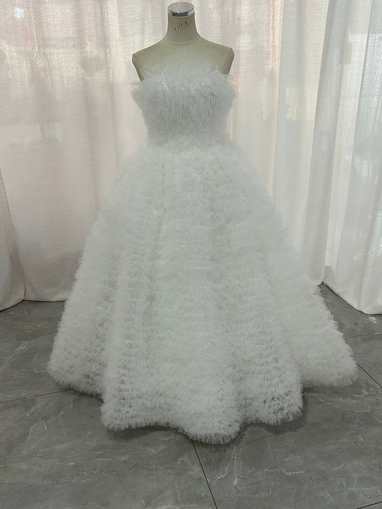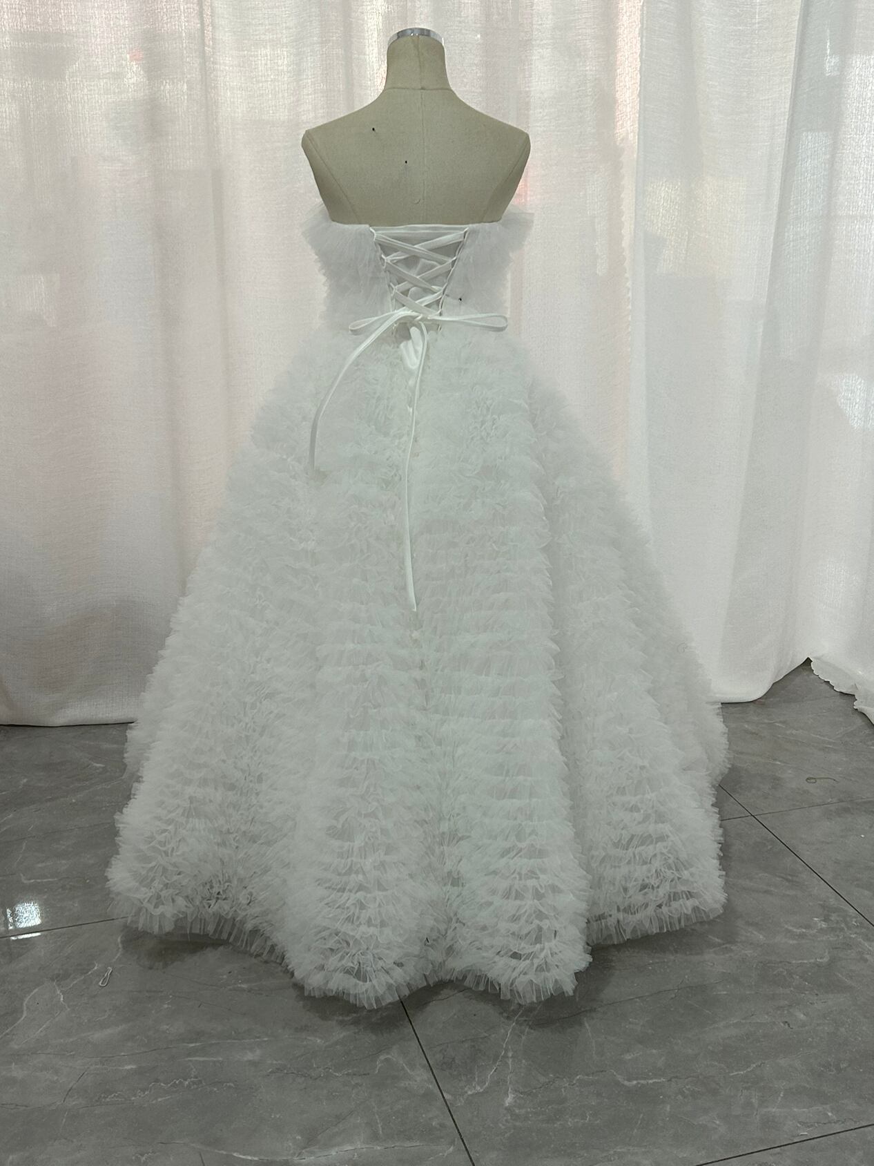 韓国風もこもこチュールドレスオフ ホワイト ベアトップ カラードレス フリルオフショルダー お色直しふわふわ ボリューム