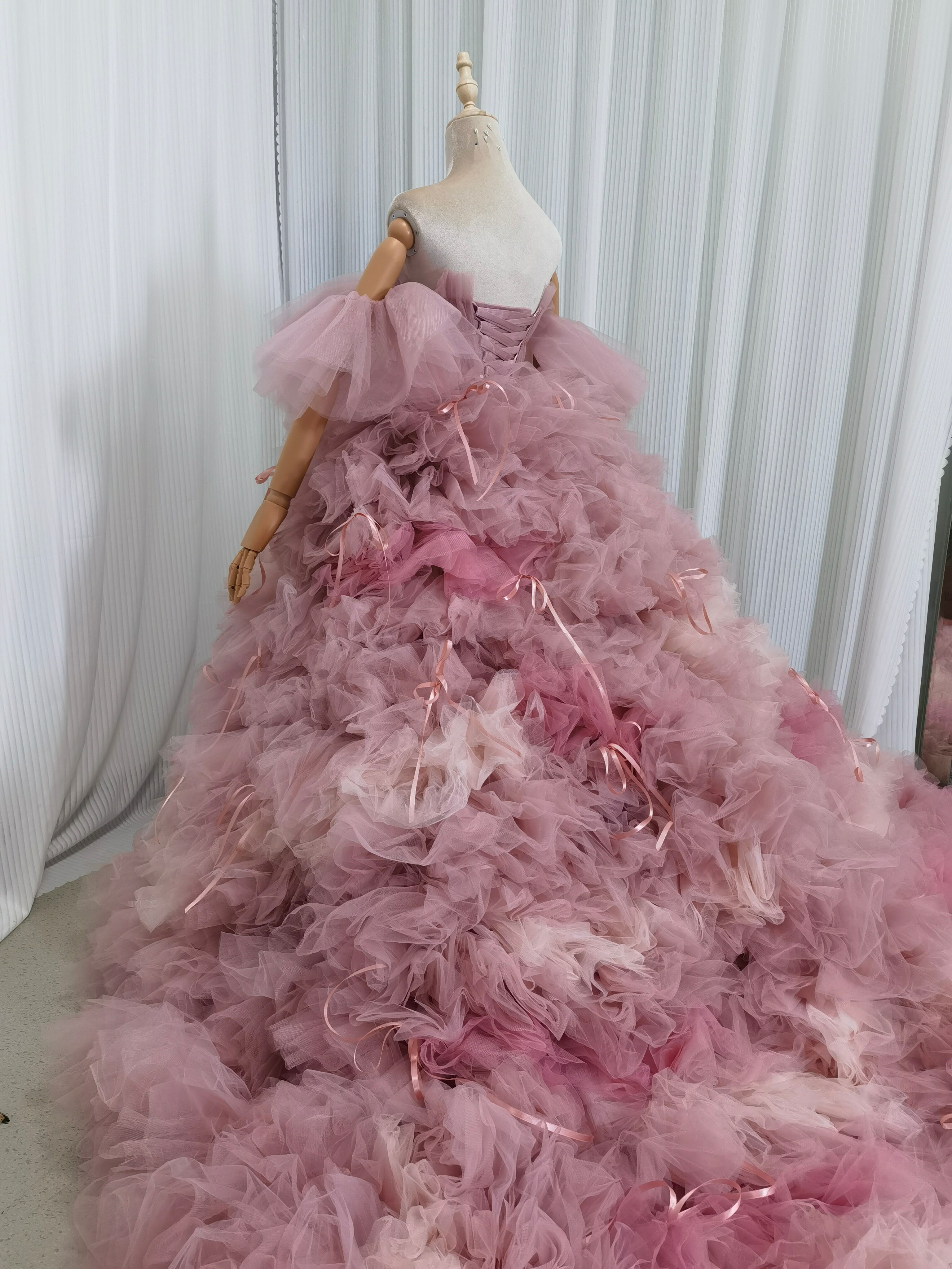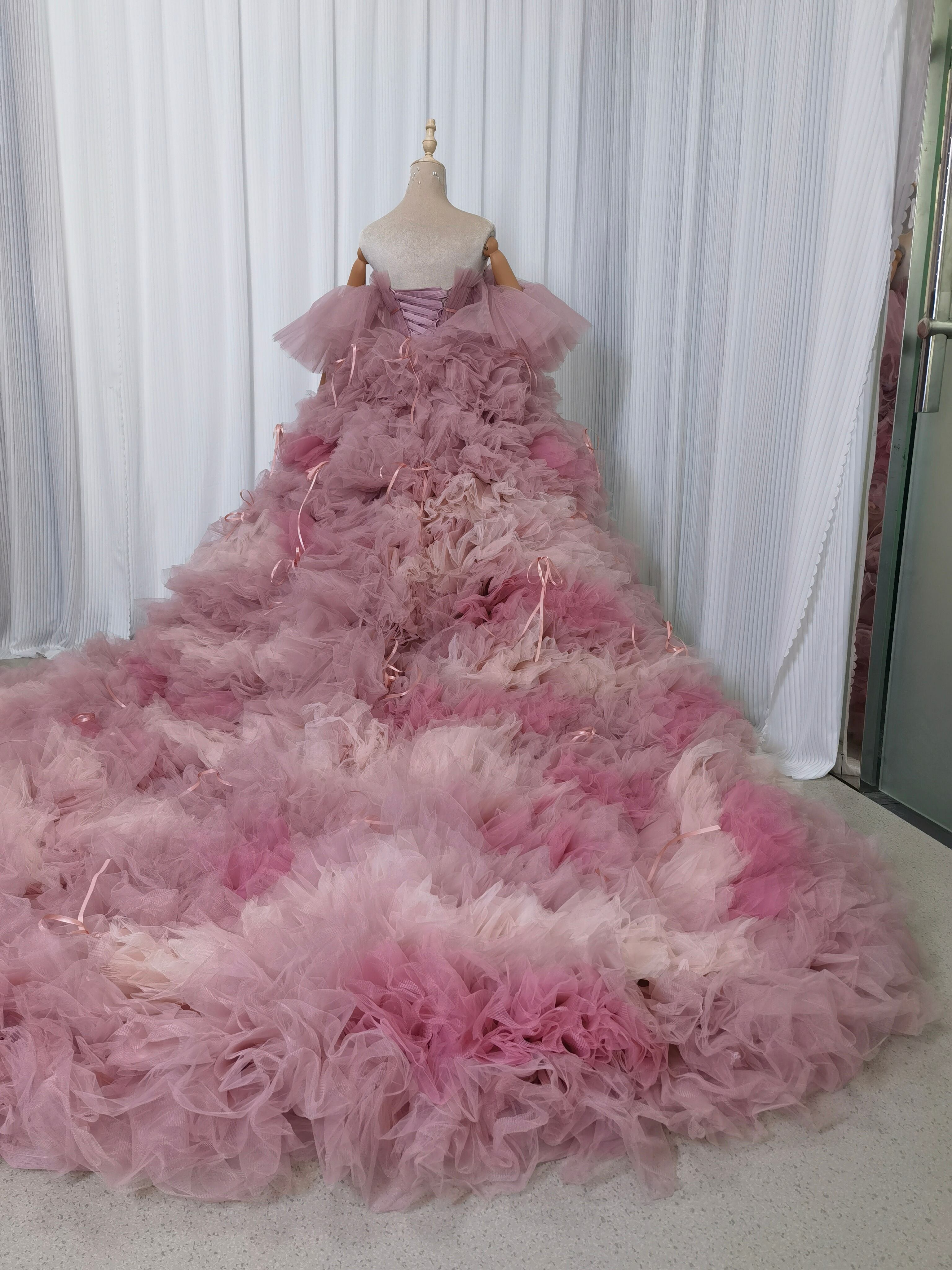 実例写真! ピンク オフショルダー カラードレス オーバースカート 前撮り パーティードレス【色変更可能】