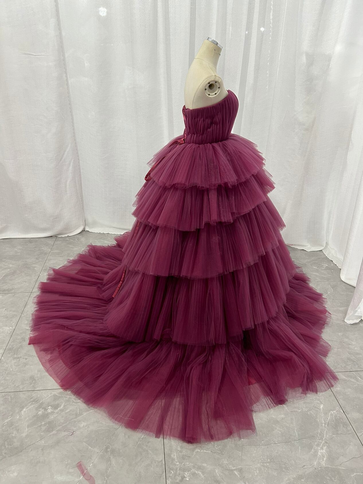 人気上昇! ベアトップ ピンク カラードレス チュールドレス フリルオフショルダーお色直し結婚式 披露宴