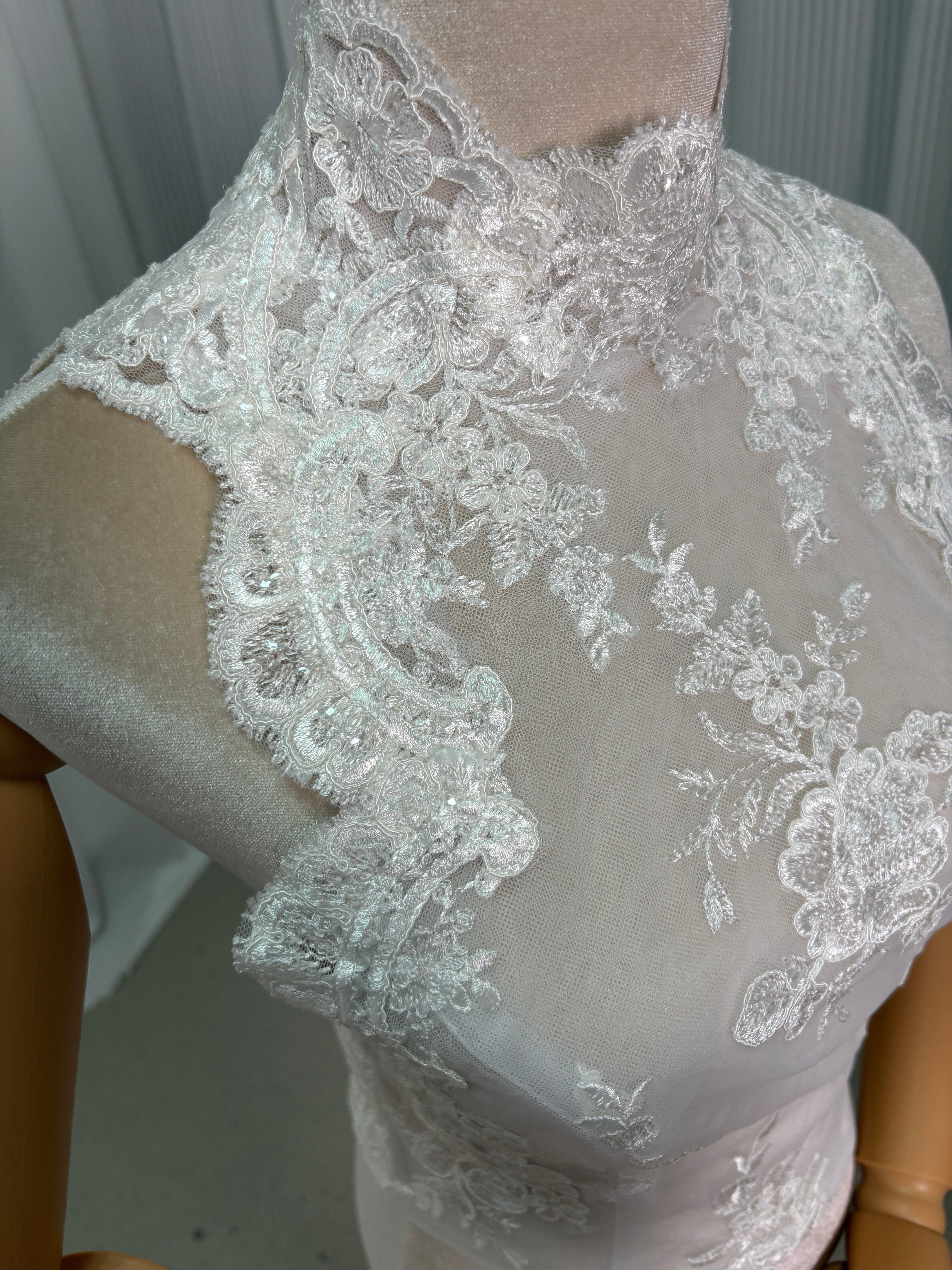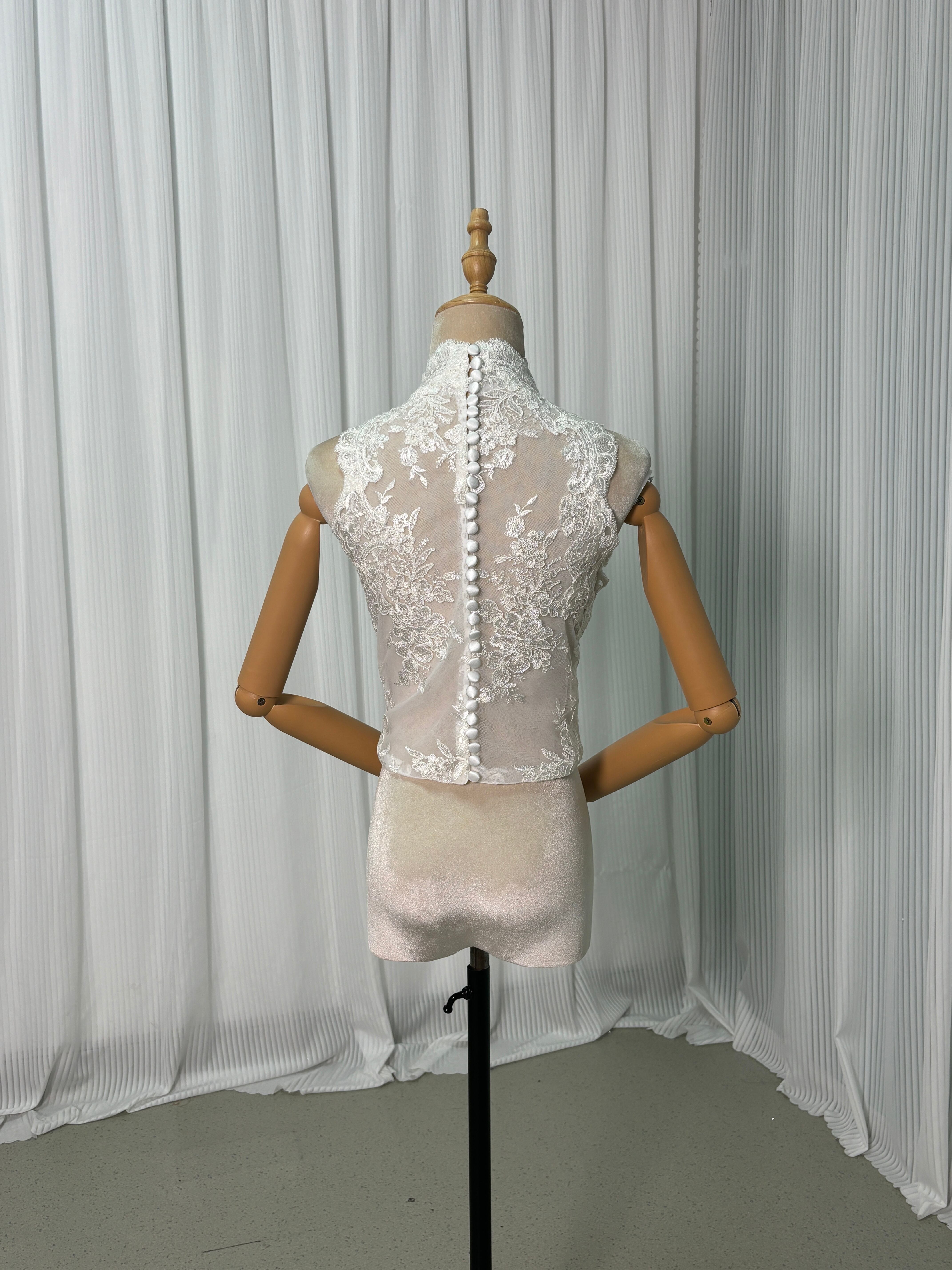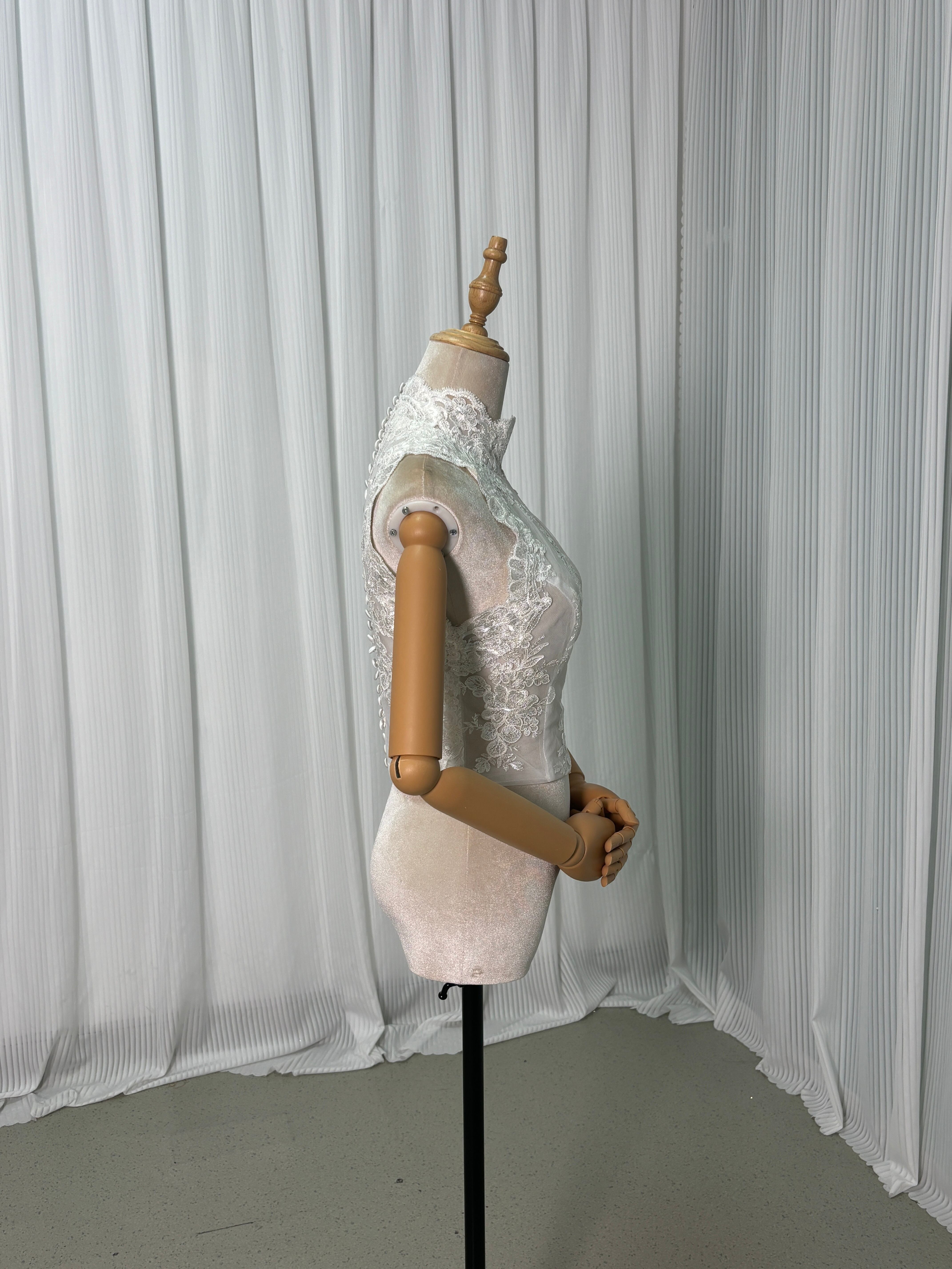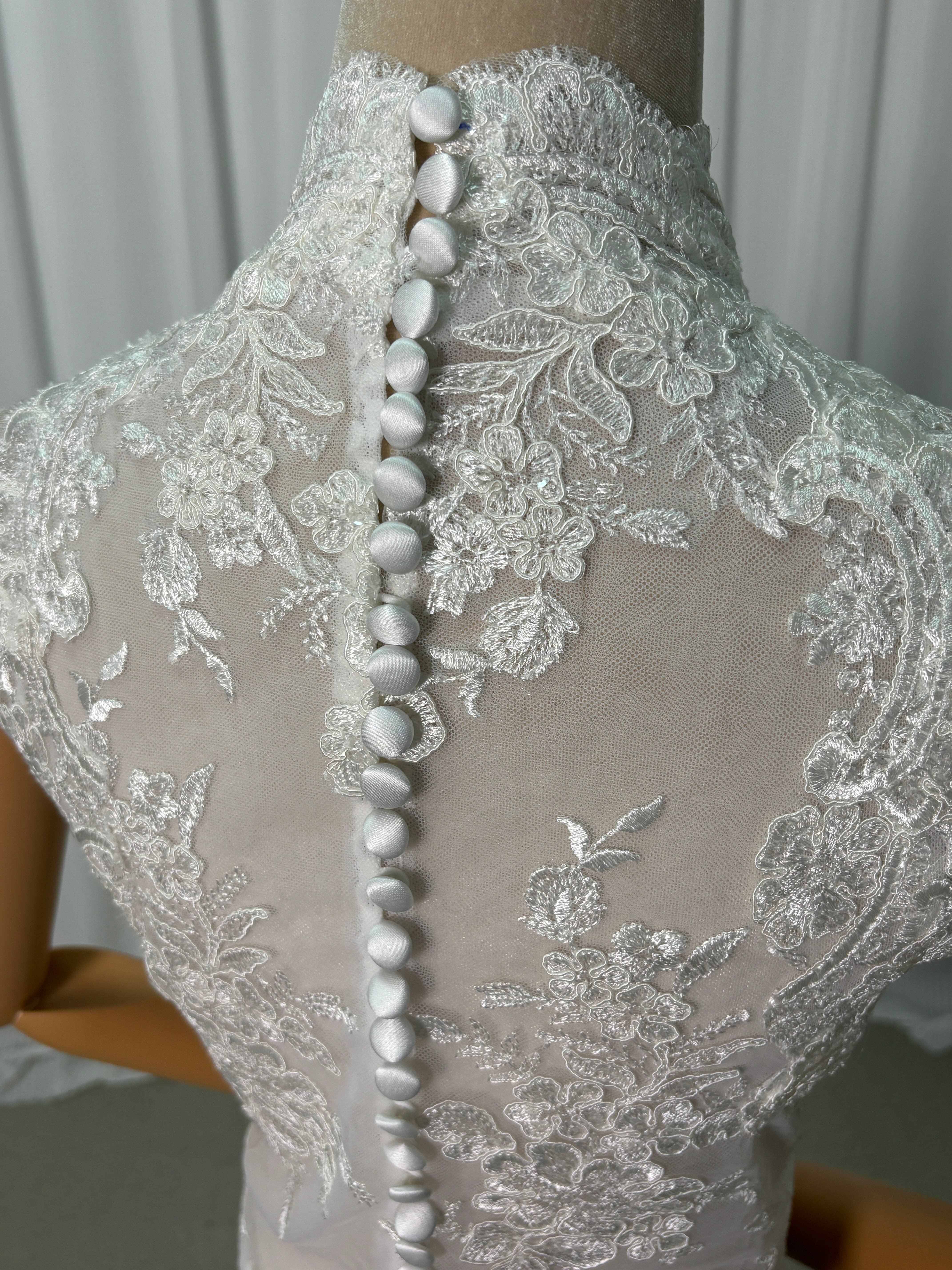 ボレロ オフホワイト ノースリーブ 贅沢な小花総レース ロングスリーブ くるみボタン ウェディング