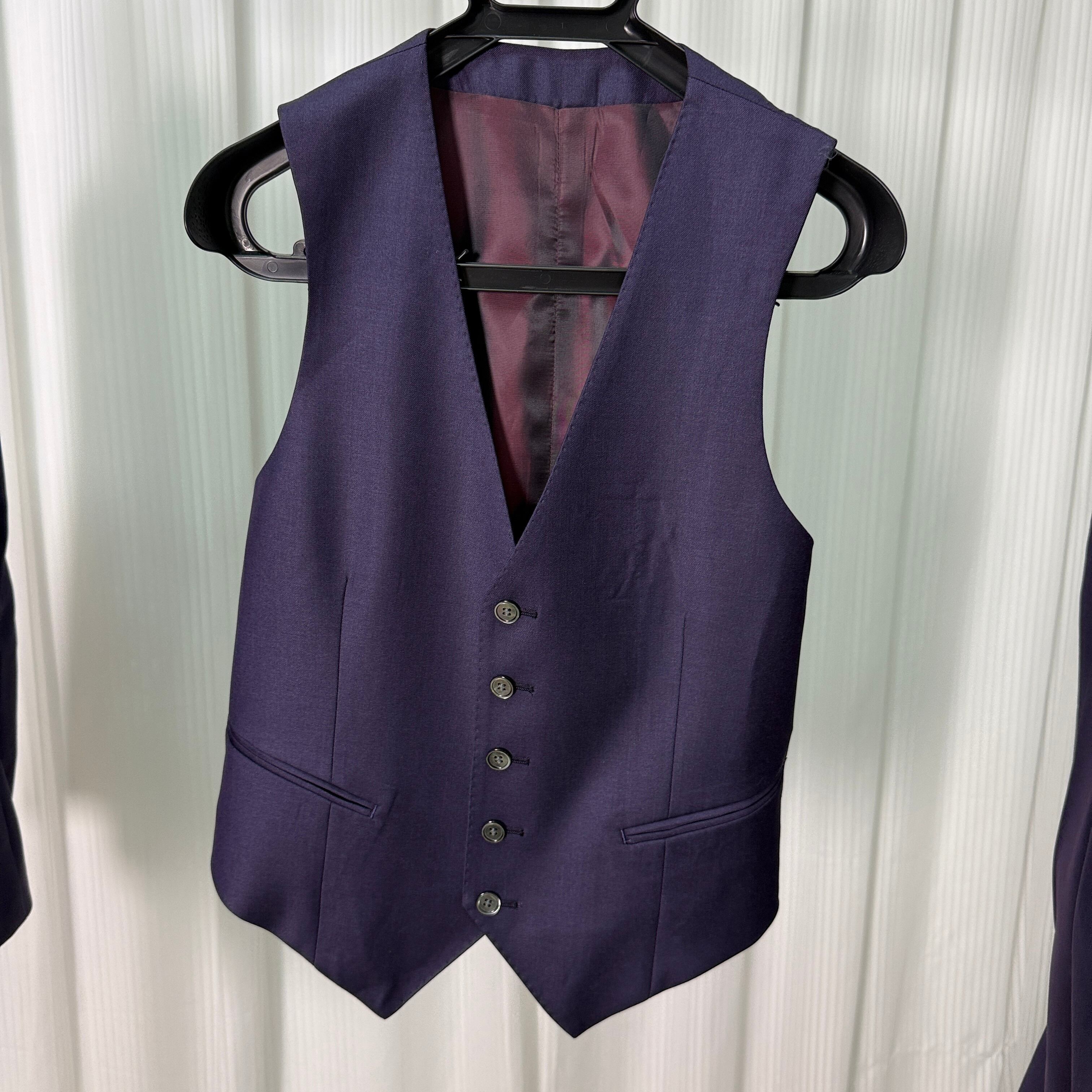 送料無料!紫 タキシード ジャケット、ベスト、パンツの3点セット 花嫁/結婚式/披露宴