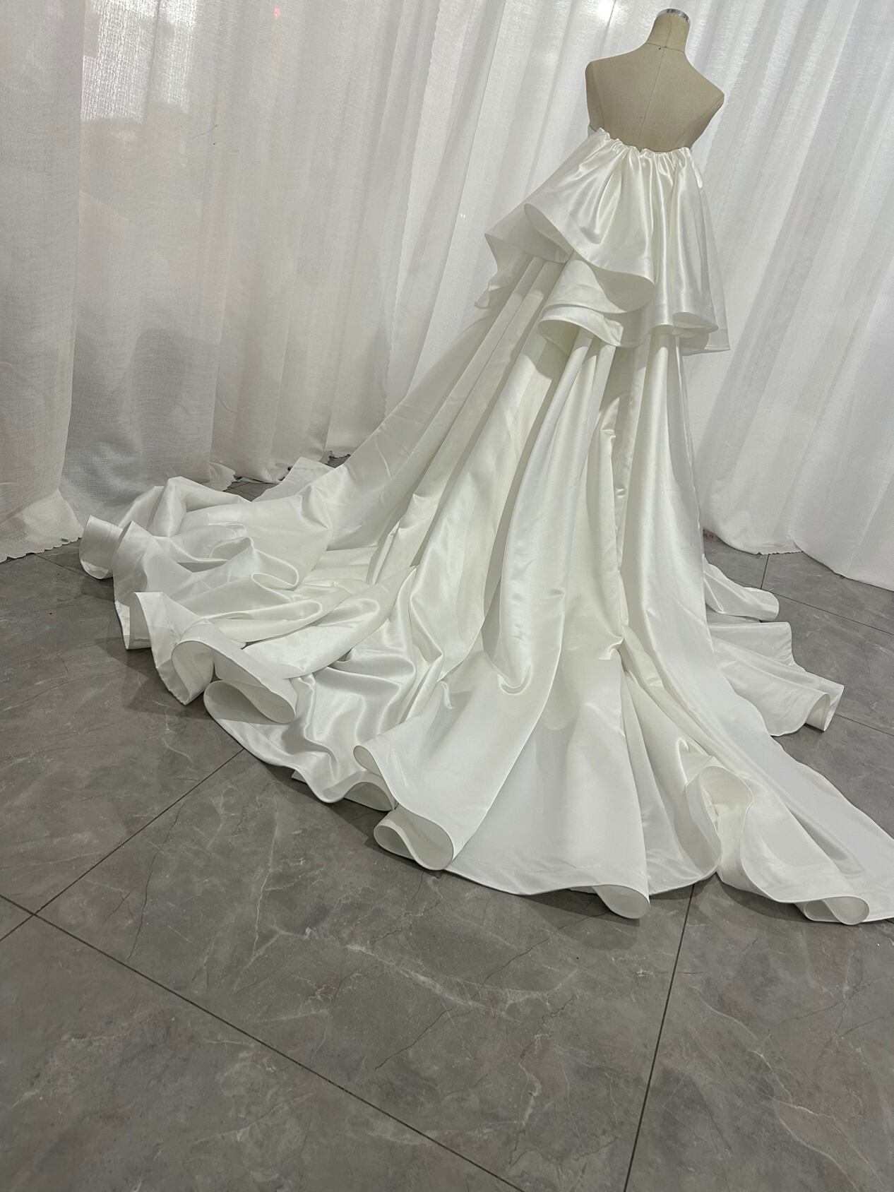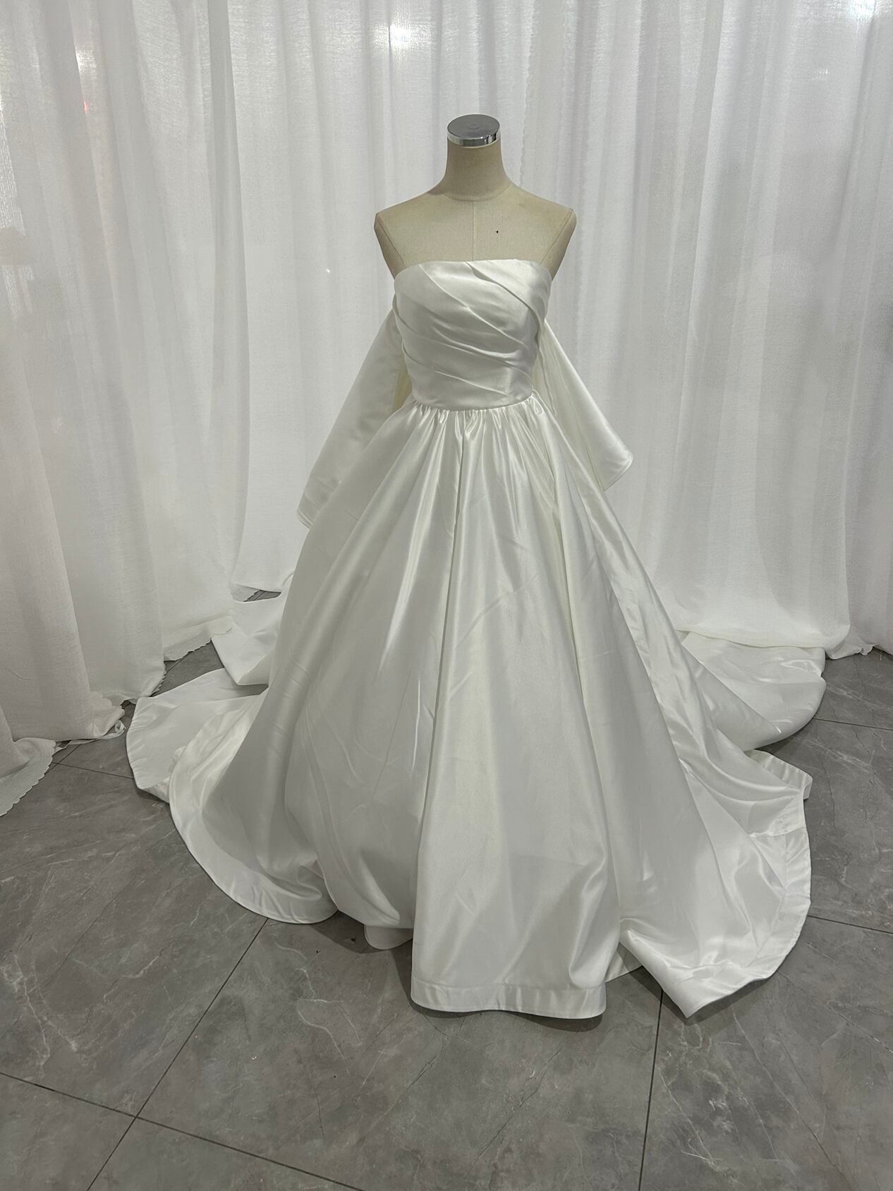 上品 ベアトップ ウエディングドレス 華やかなトレーン2次会 前撮り 花嫁 挙式