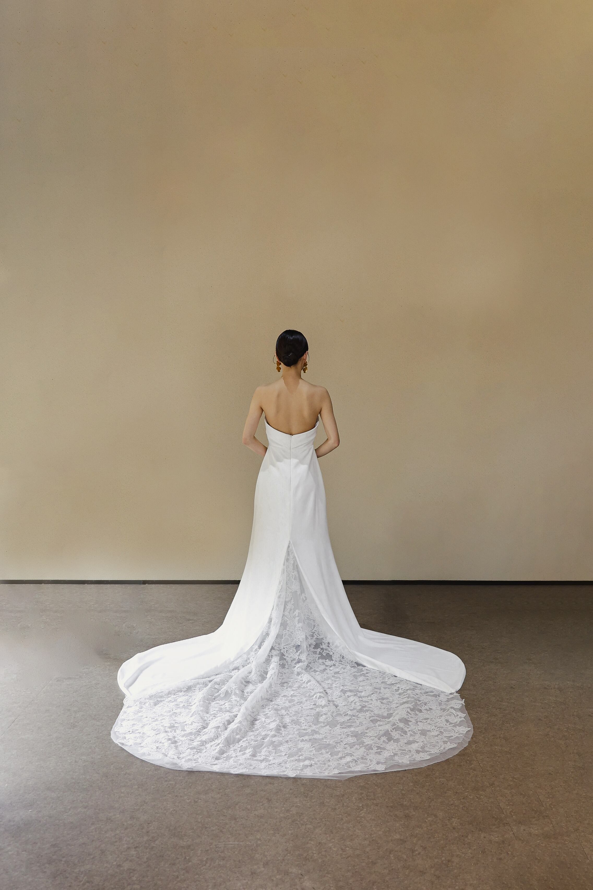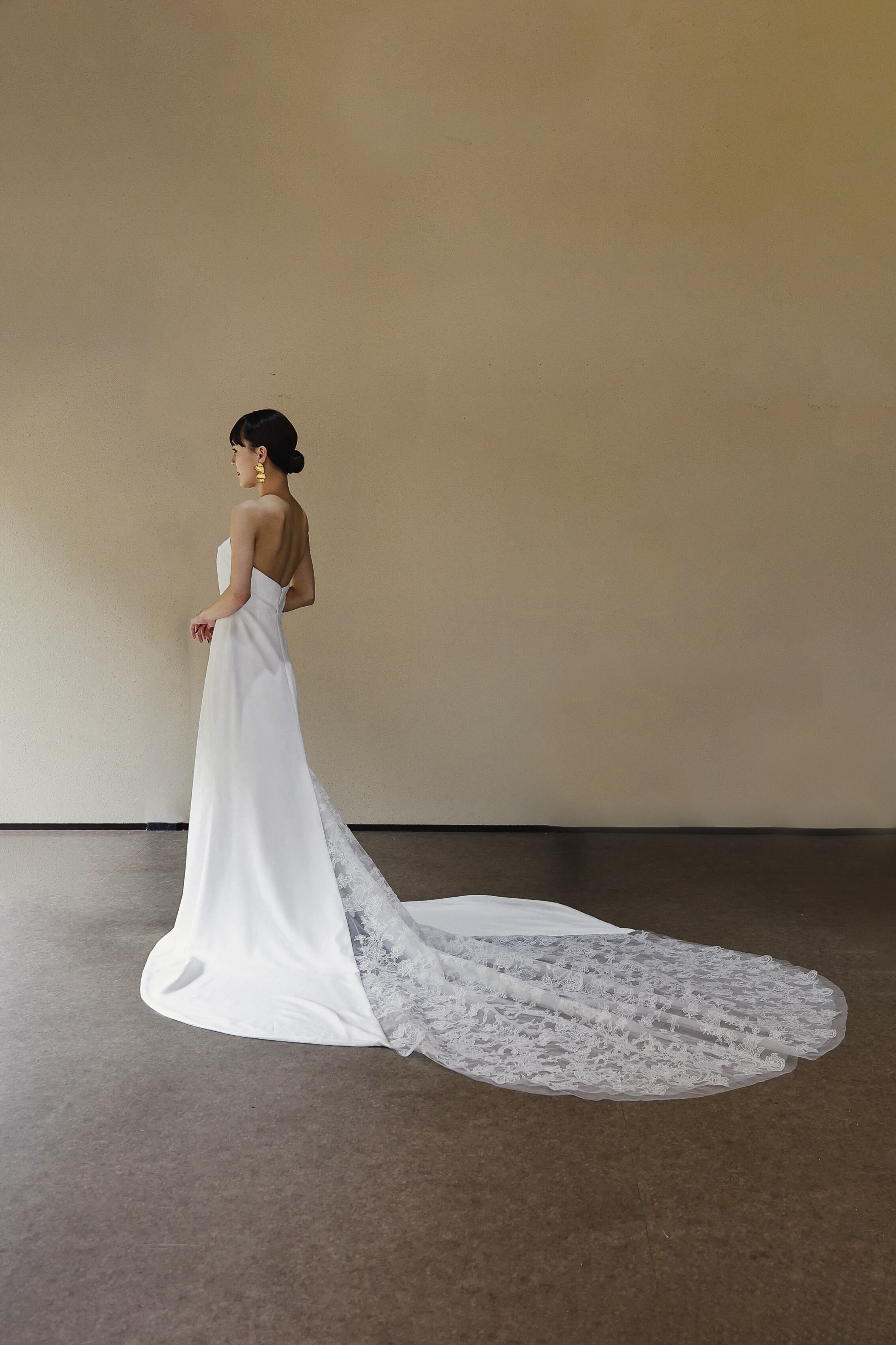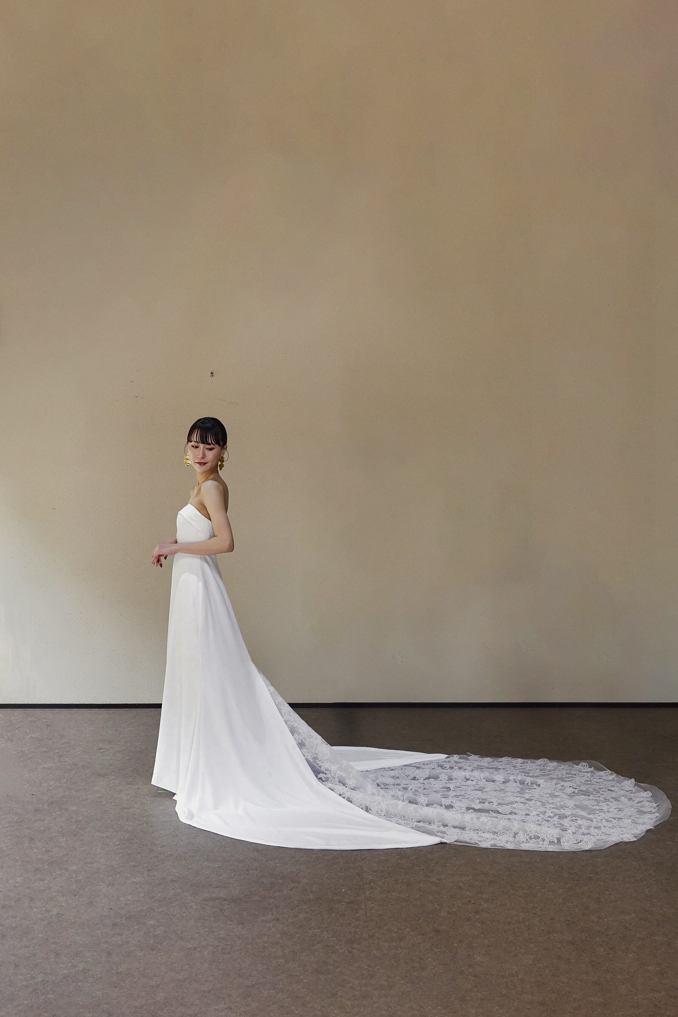 上品 ベアトップ エレガントレース ウエディン グドレス ふっ 華やかなトレーン2次会 前撮り 花嫁 挙式