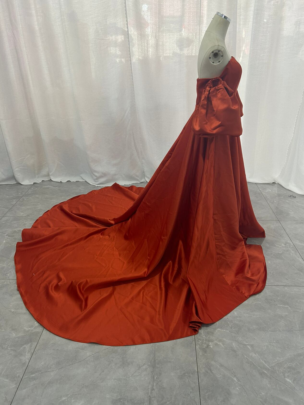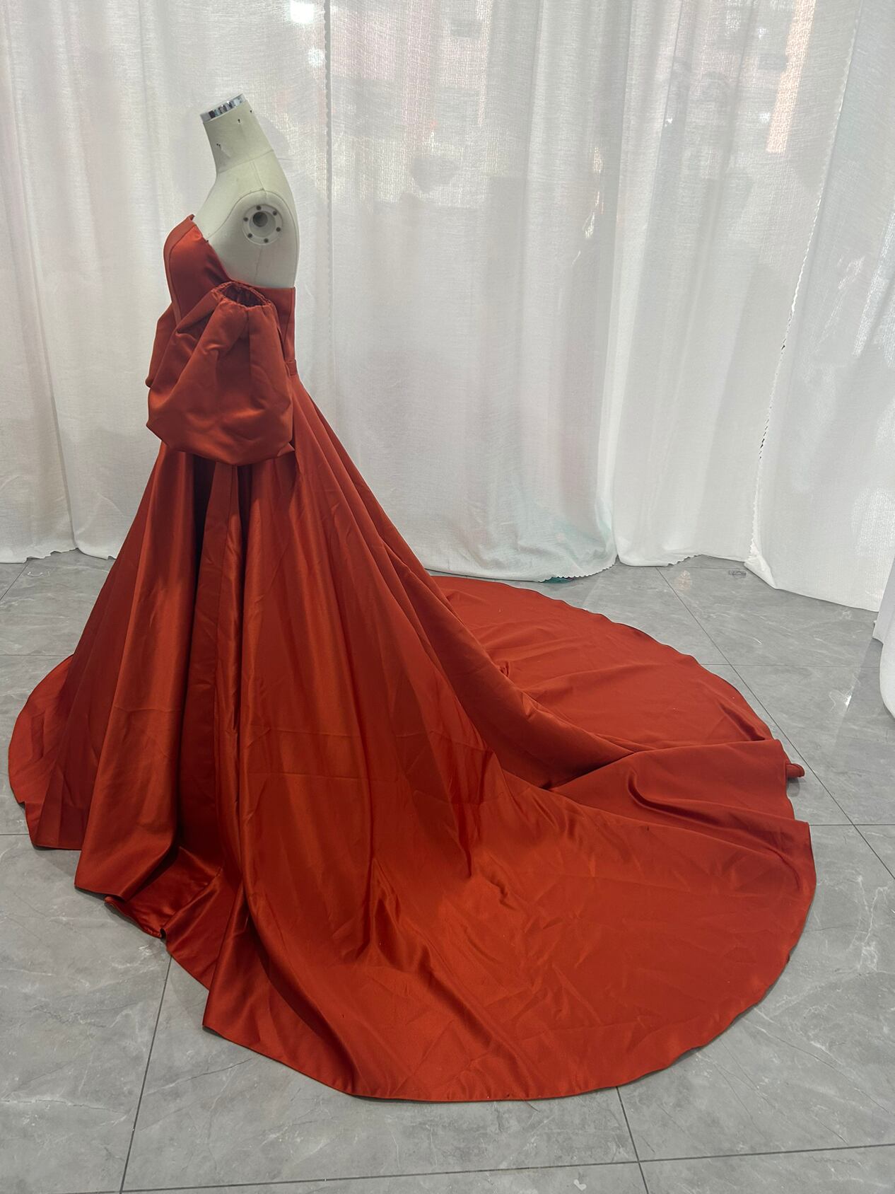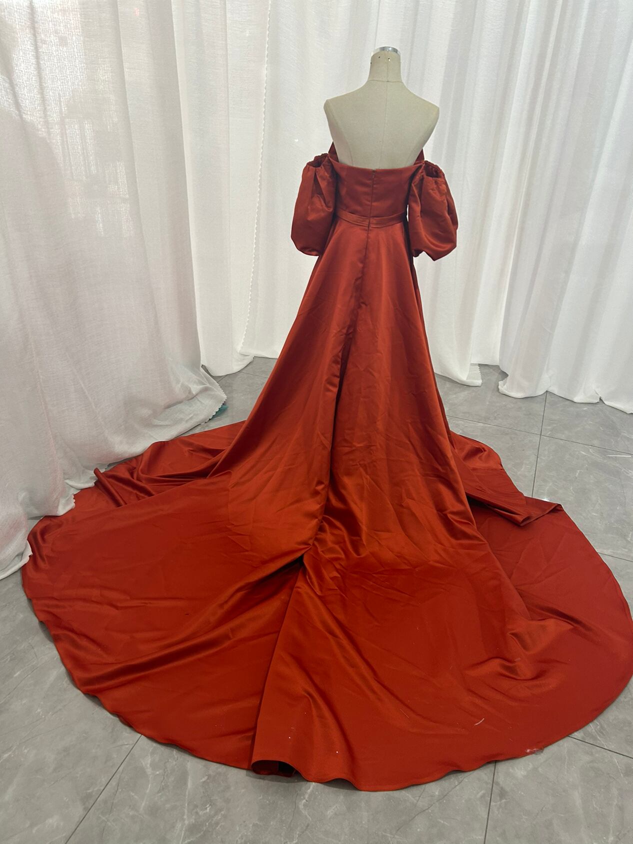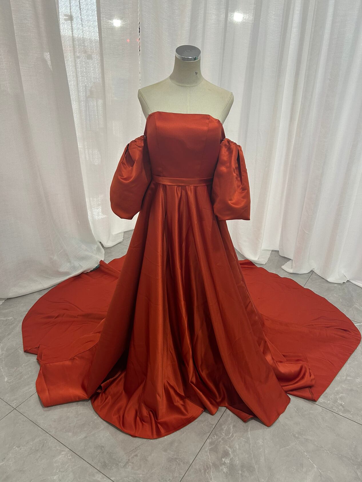 高品質!パーティードレス 前撮り結婚式 2次会 オレンジ ビスチェ オフショルのパフスリー
