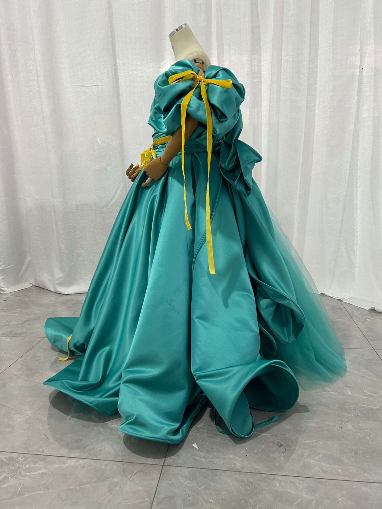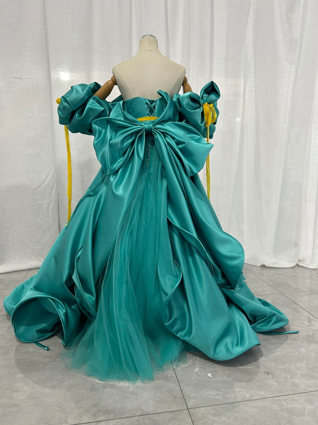 人気上昇! ベアトップ 取り外し袖 カラードレス チュールドレス フリルオフショルダーお色直し結婚式 披露宴