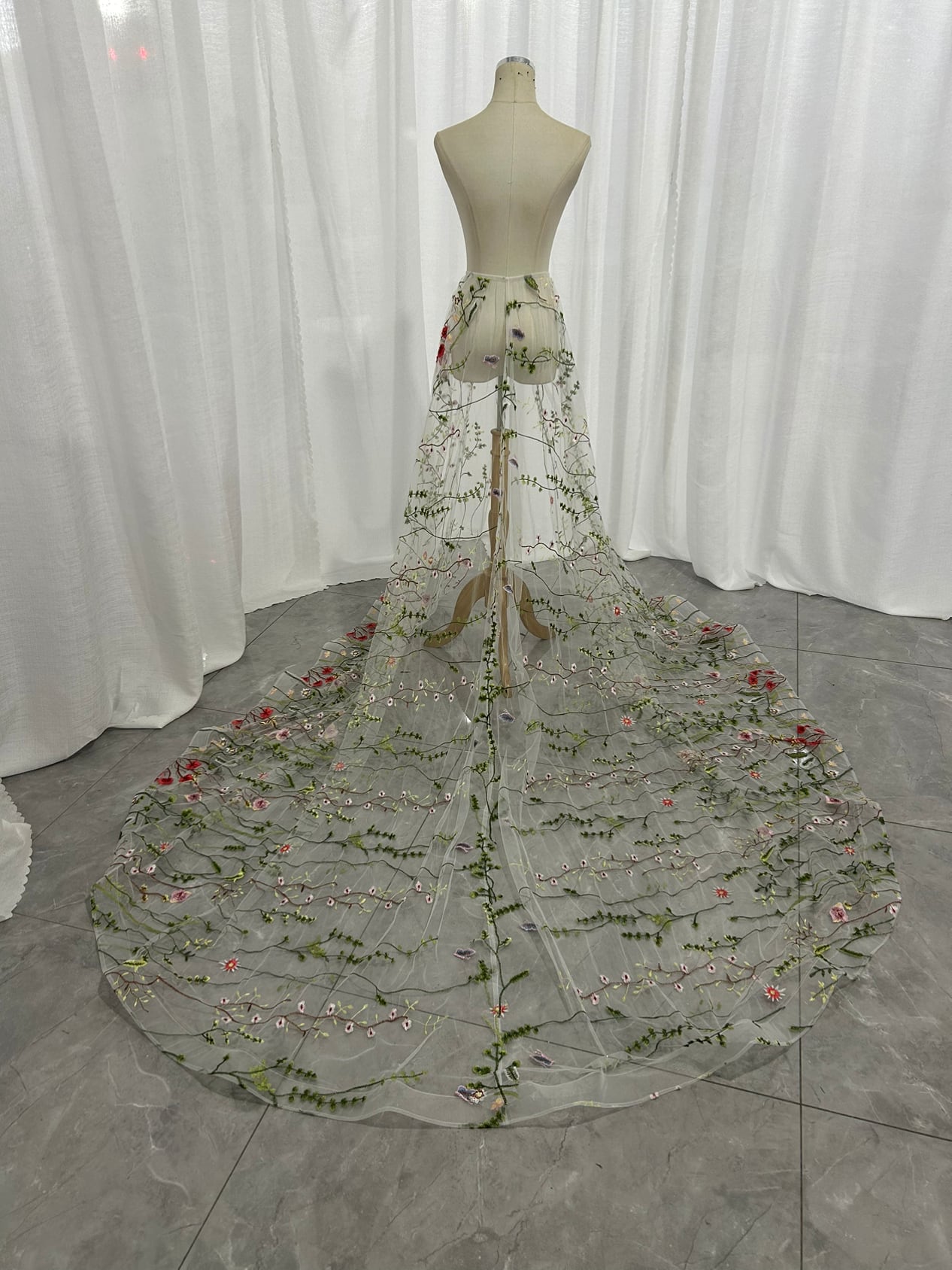 花柄刺繍が美しく チュールスカート オーバードレス トレーンのみ 花嫁/ウェディン
