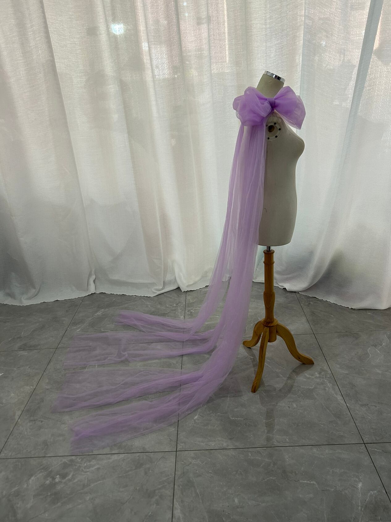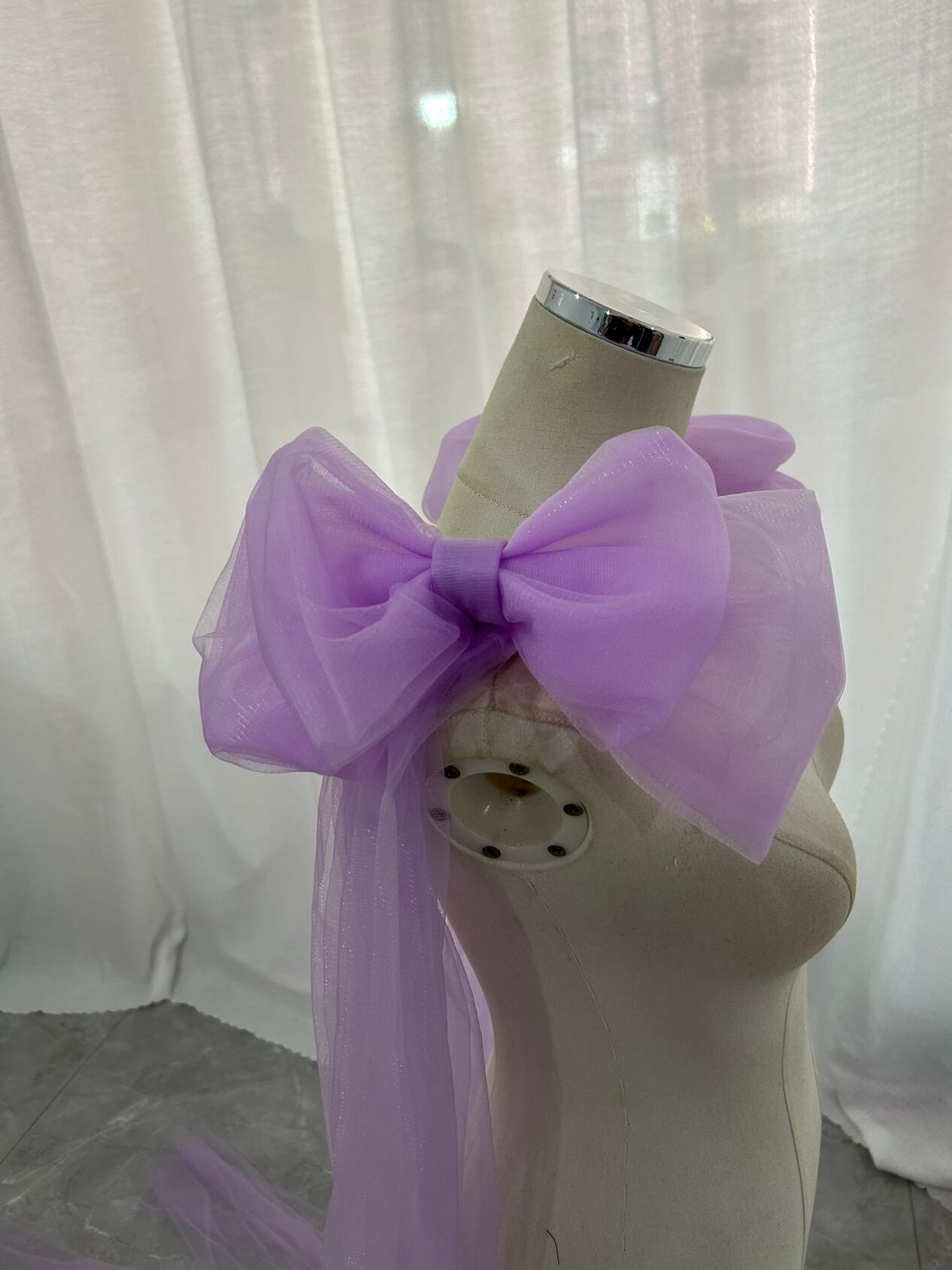 高品質! 紫 肩出しリボン チュールドレス カラードレス花嫁