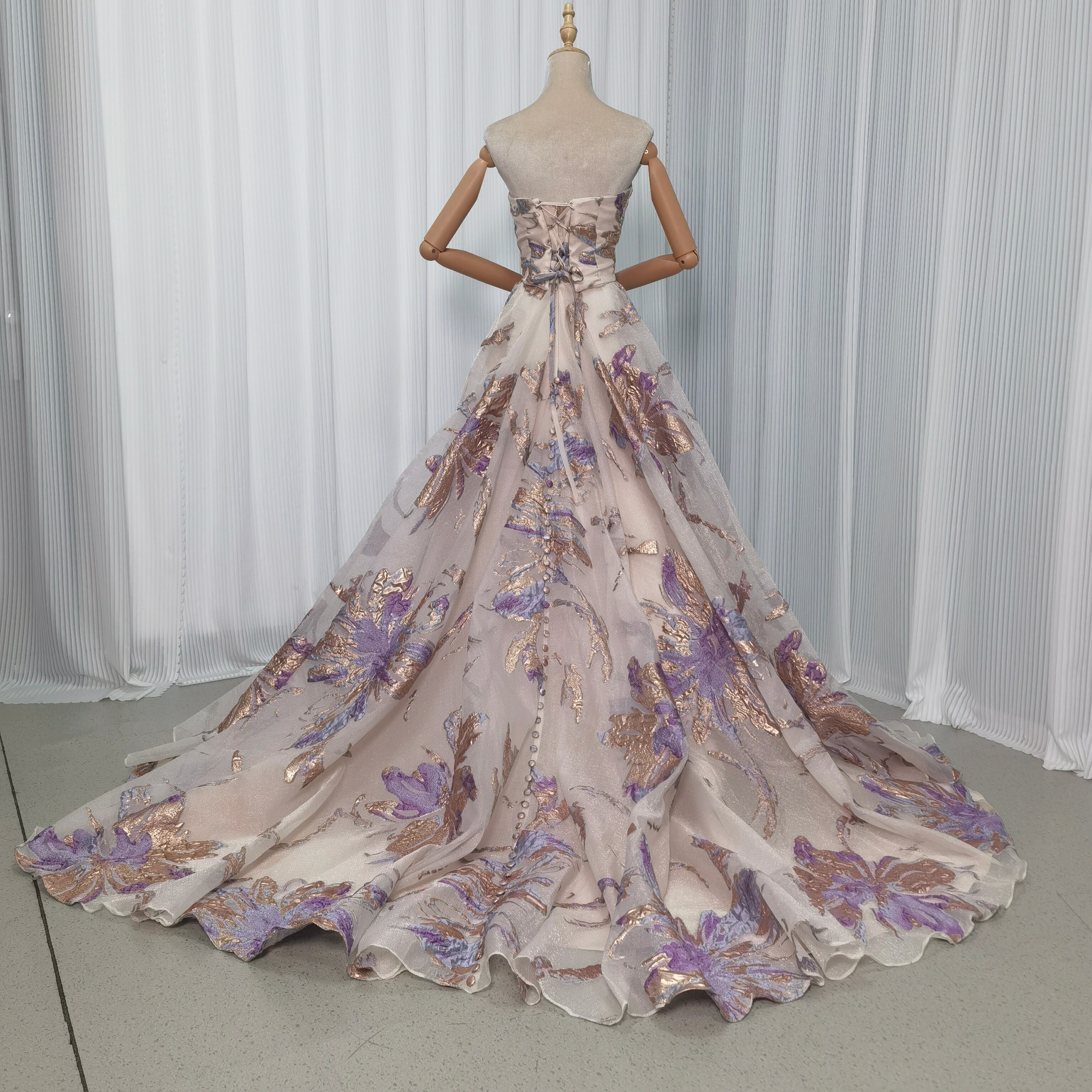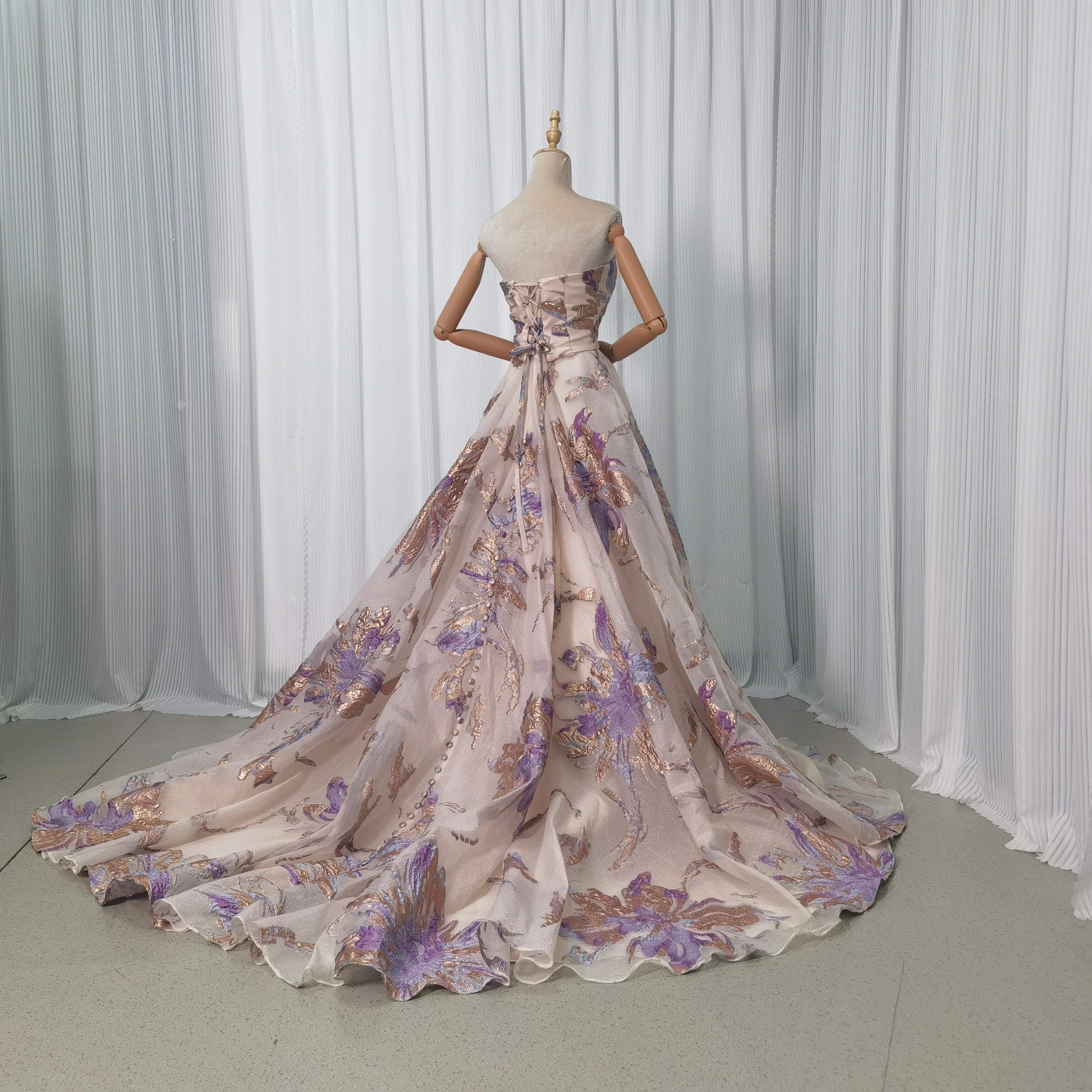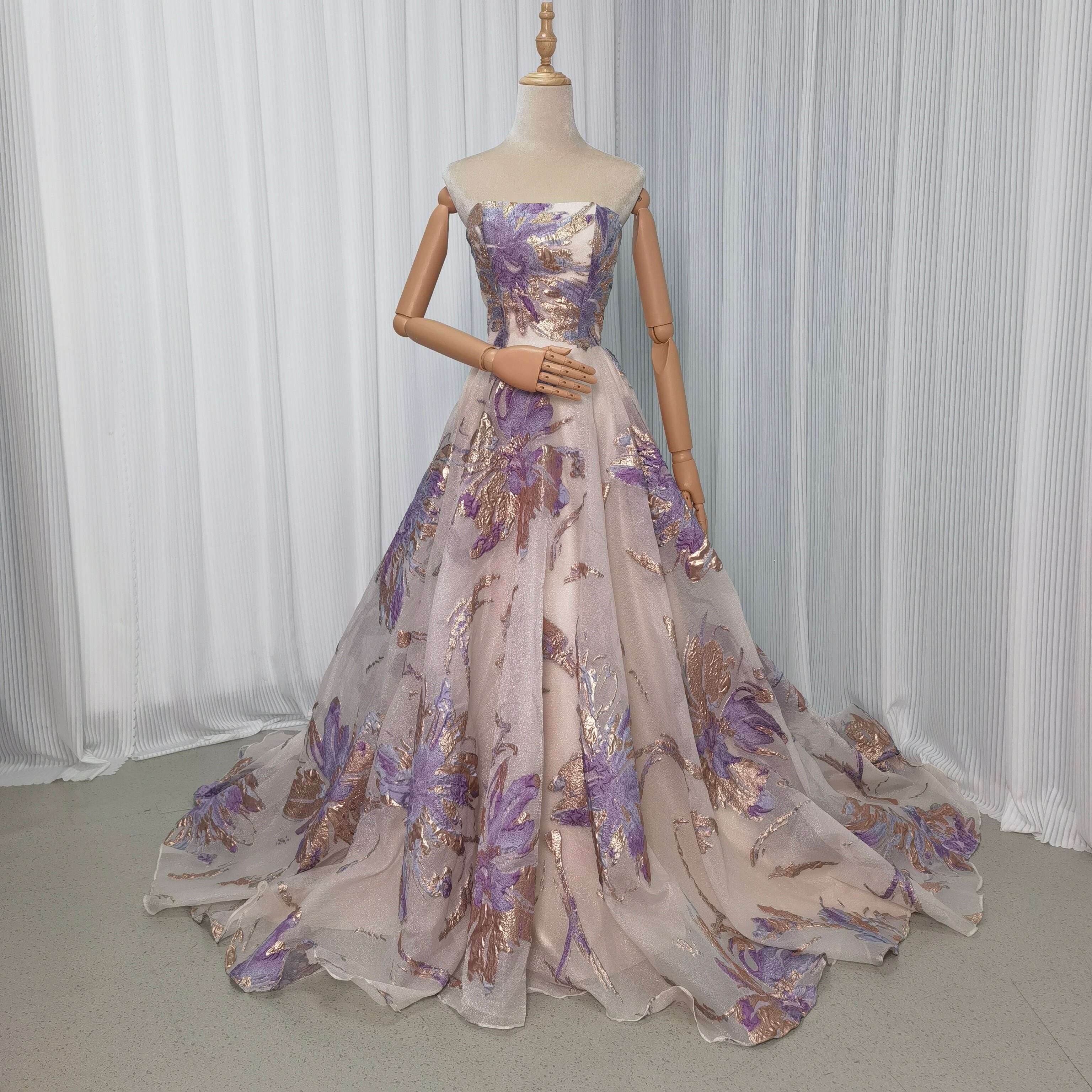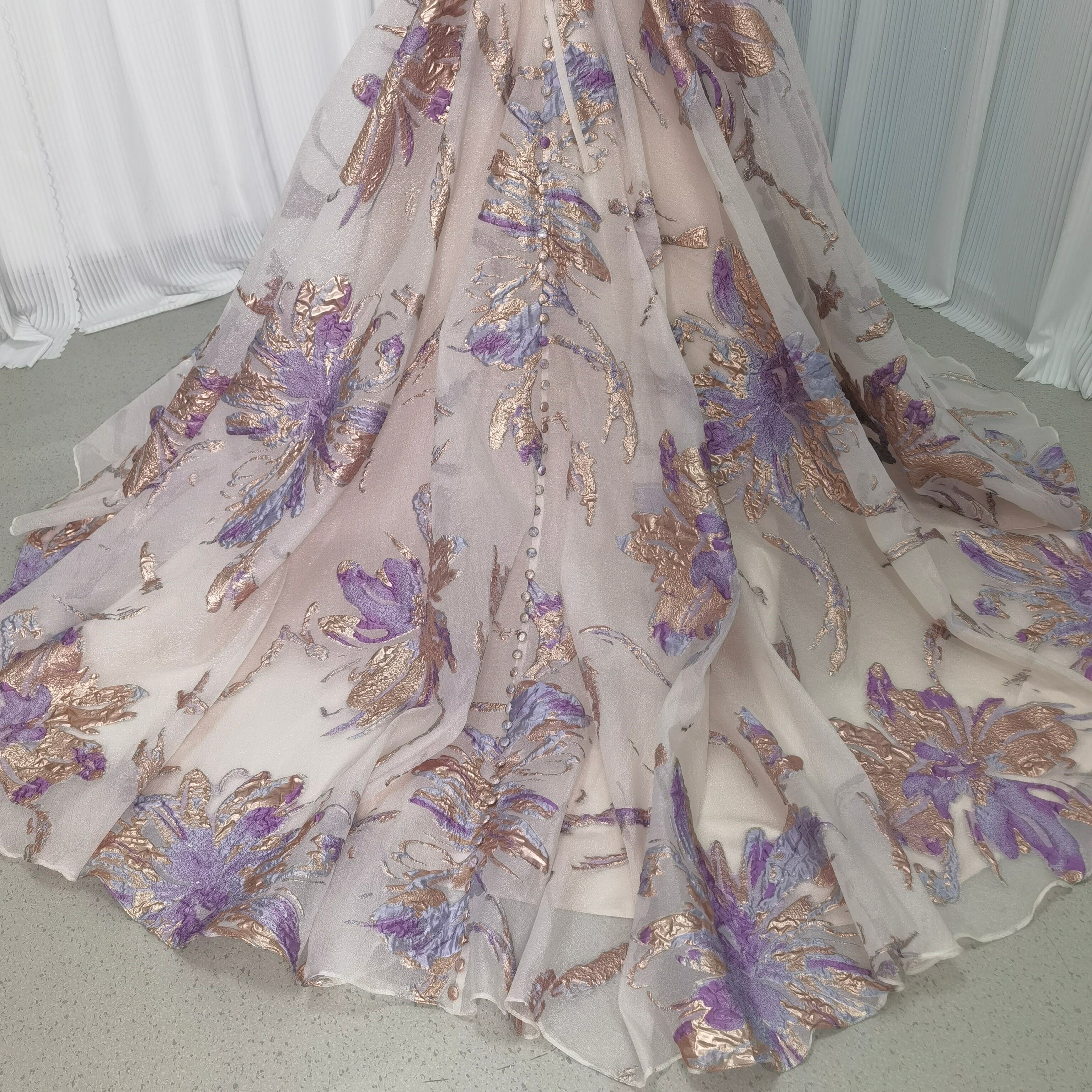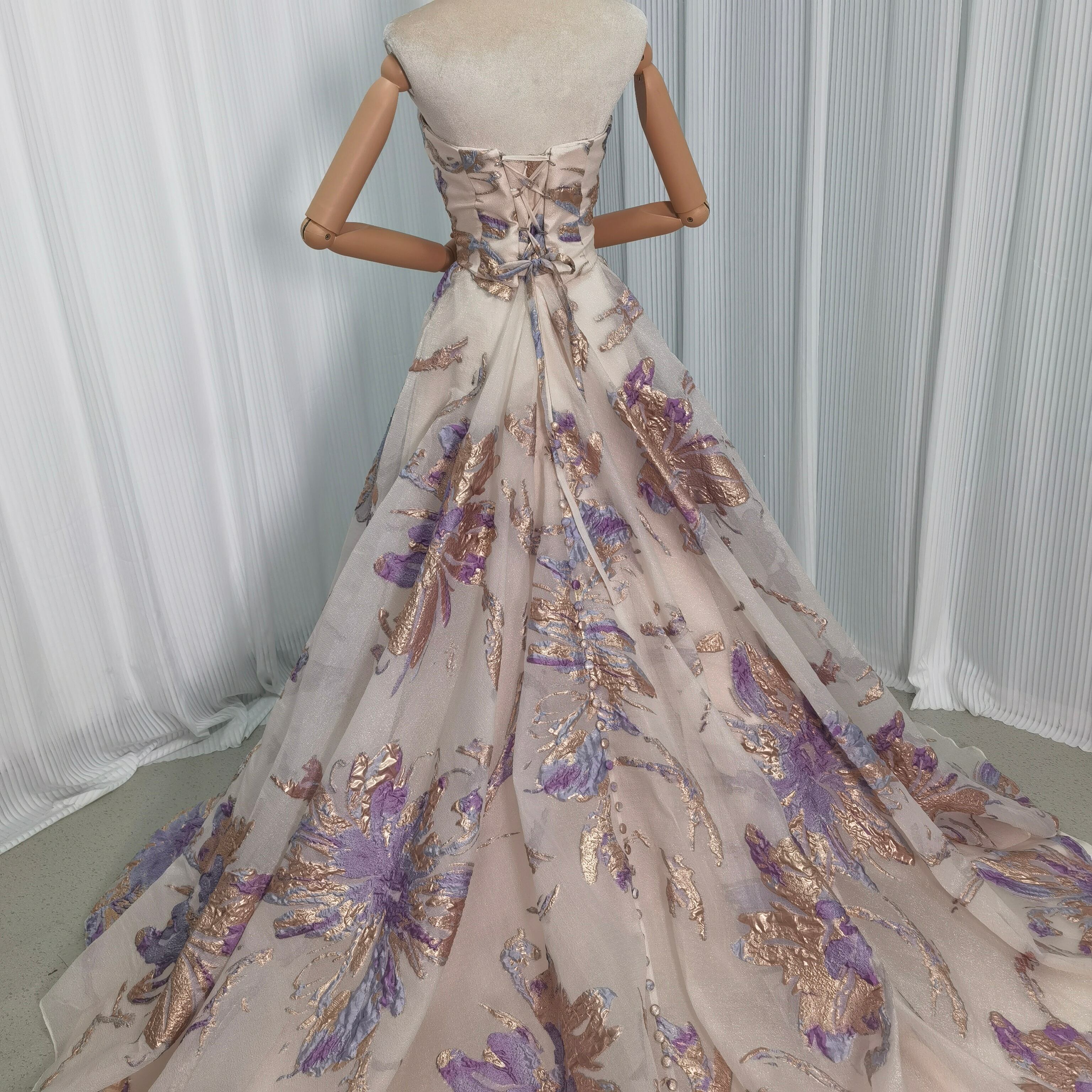 人気上昇!紫 花柄刺繍が美し 上質オーガンジー オーバードレス トレーンのみ ベアトップ カラードレス チュールドレス 花嫁 /結婚式 披露宴