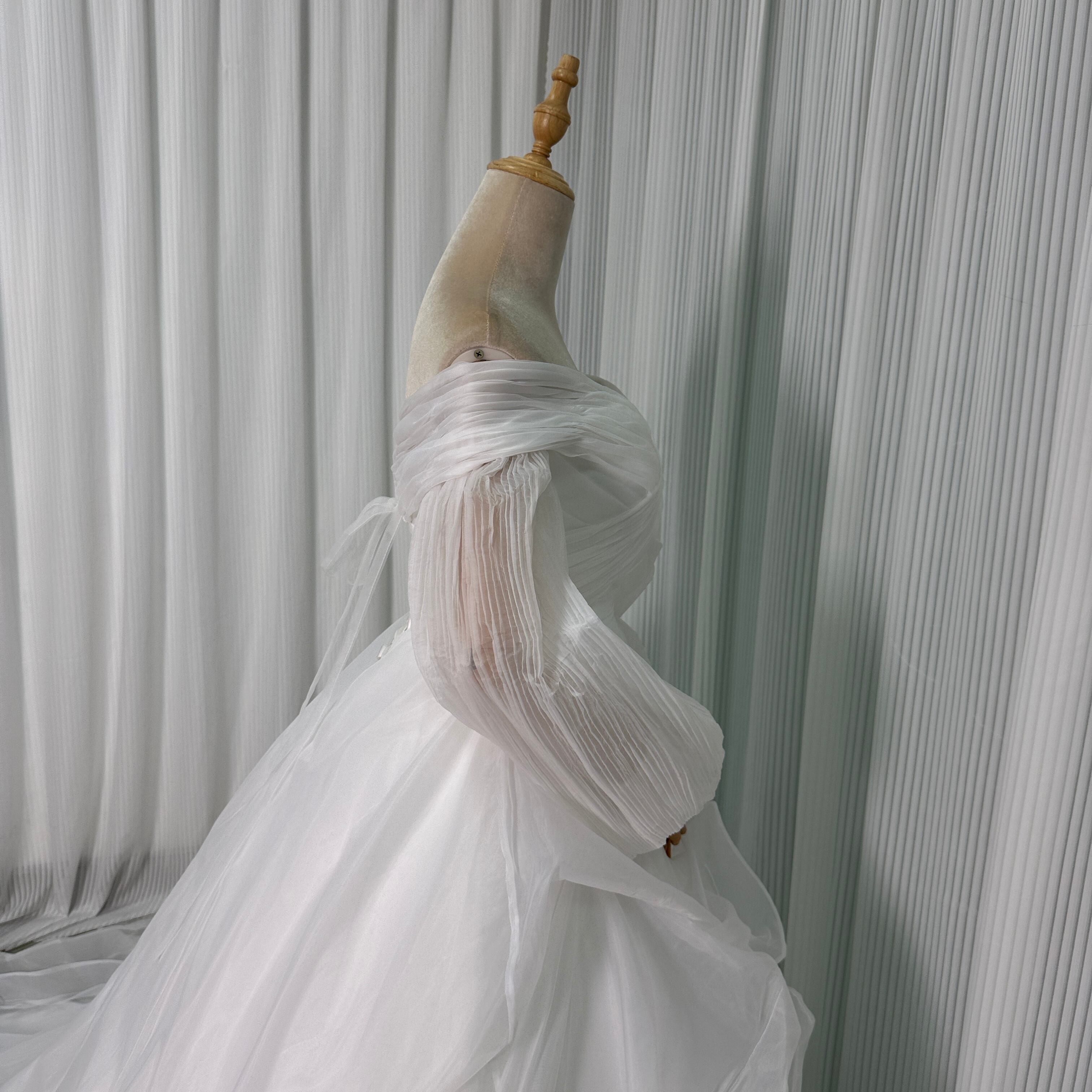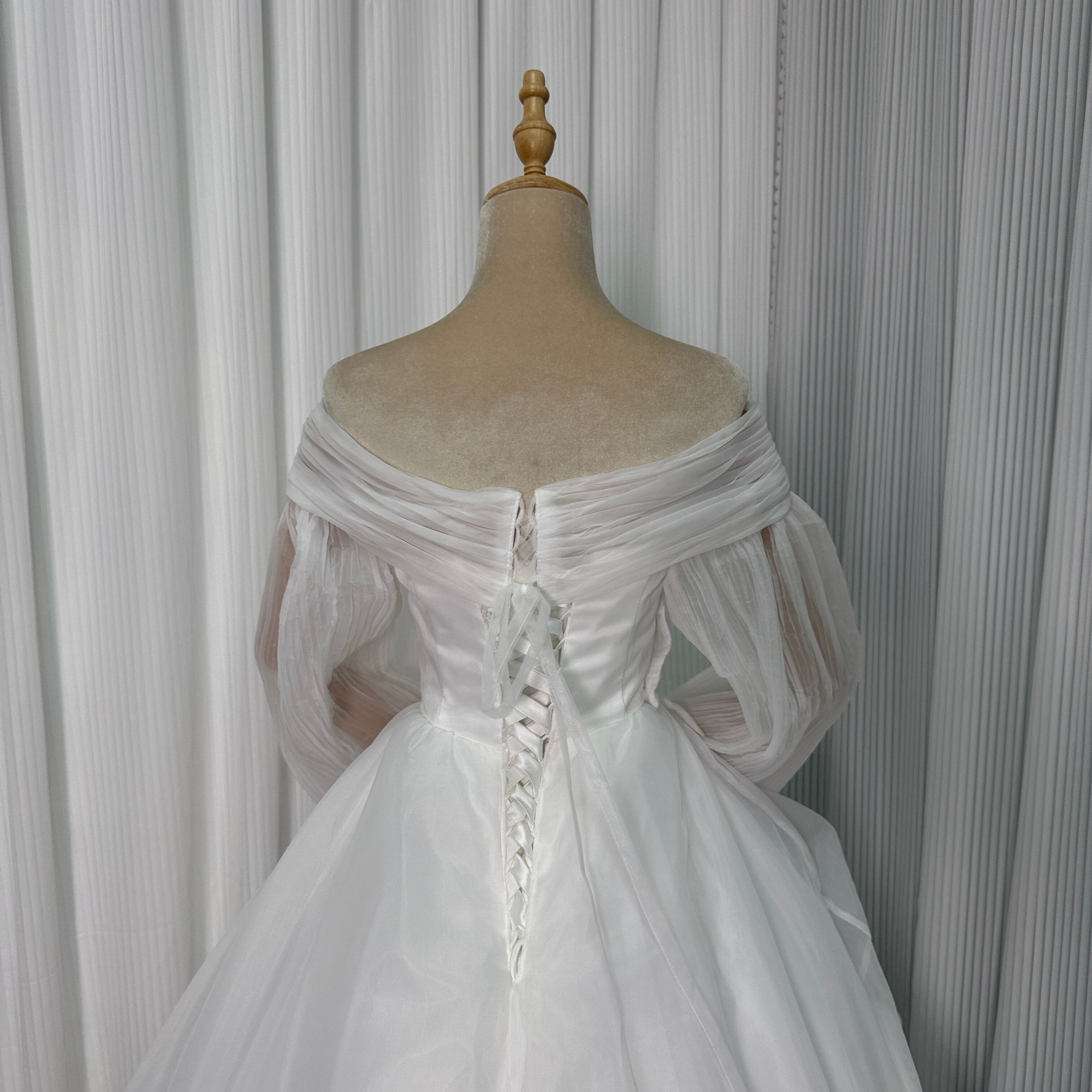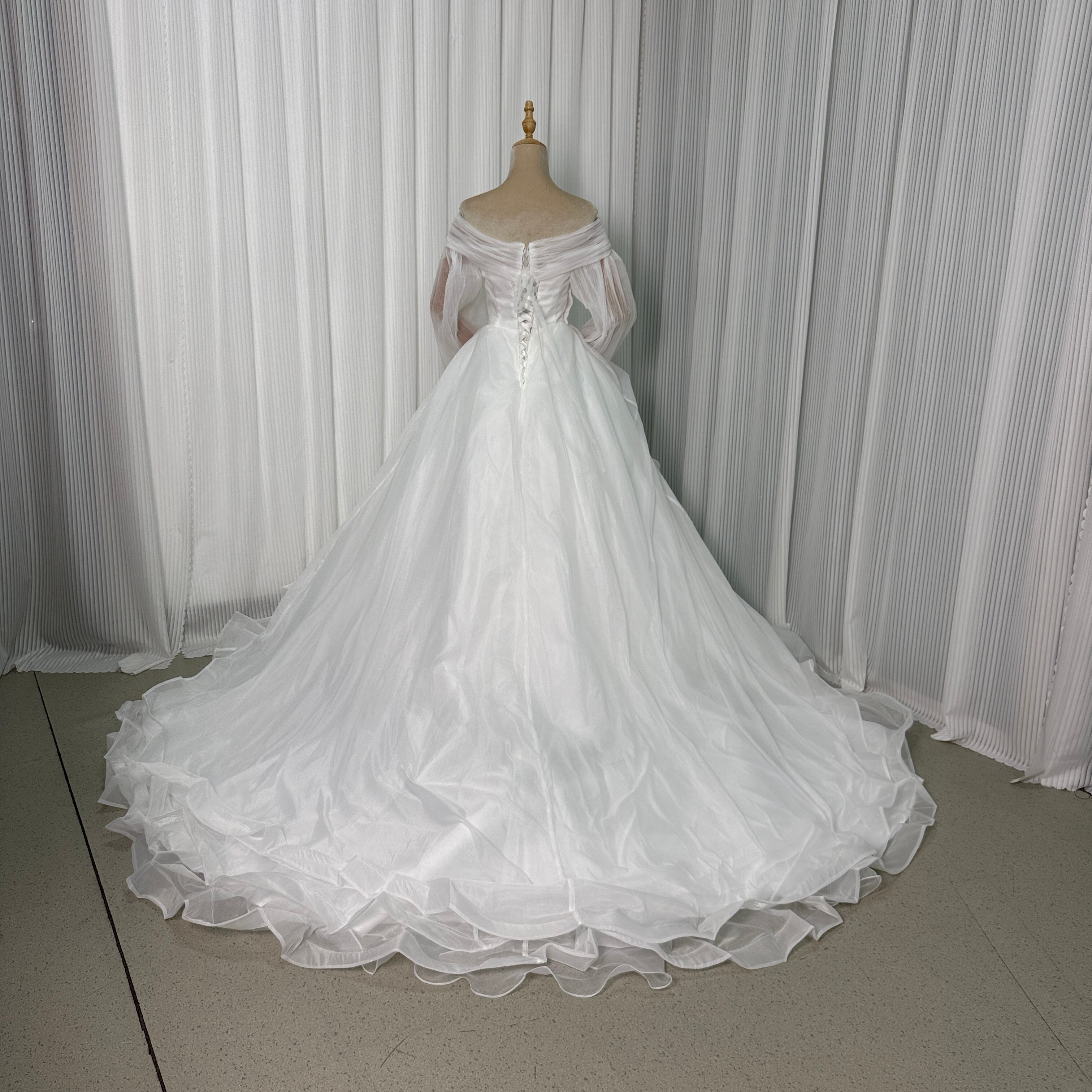 人気上昇!オフホワイトオフショルダー 長袖 カラードレス ソフトチュール 花嫁 /結婚式 披露宴