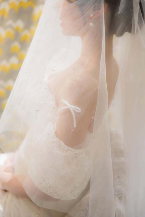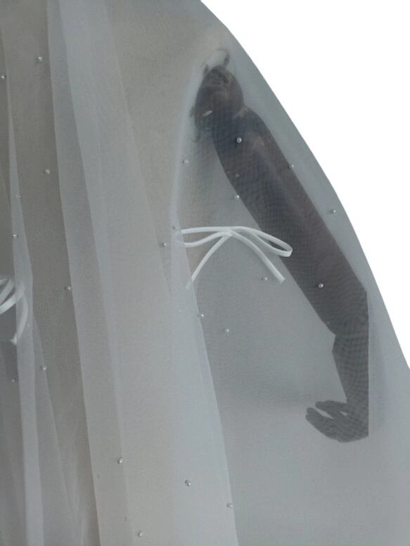 送料無料! レース付きウエディングドレスベール パール リボン  ショートベール 花嫁 結婚式 挙式 ウェディング