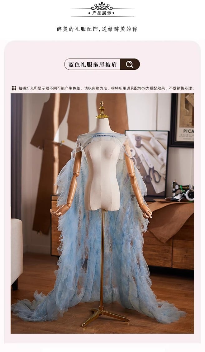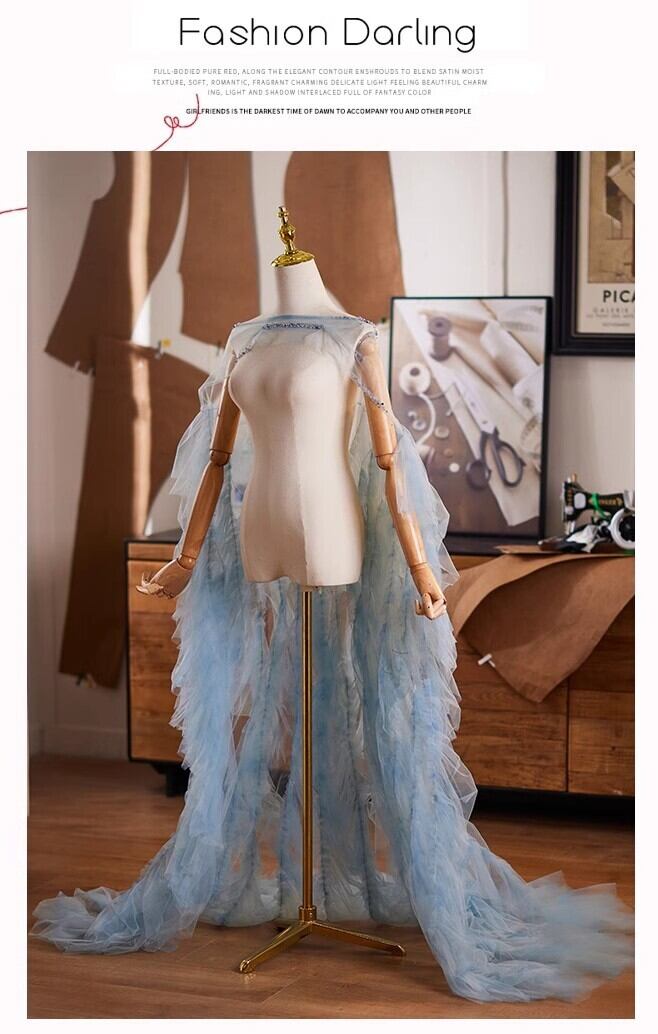 送料無料! ソフトチュール もこもこドレス ロングトレーン オーバースカート/挙式/前撮り/結婚式