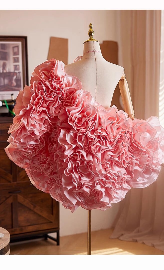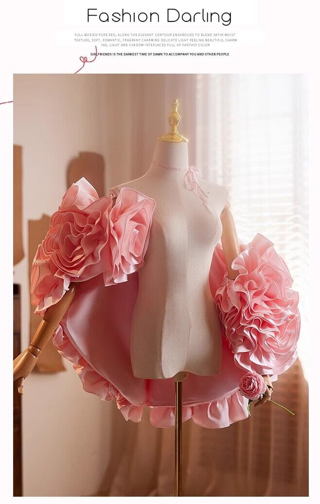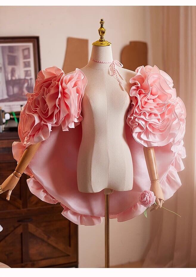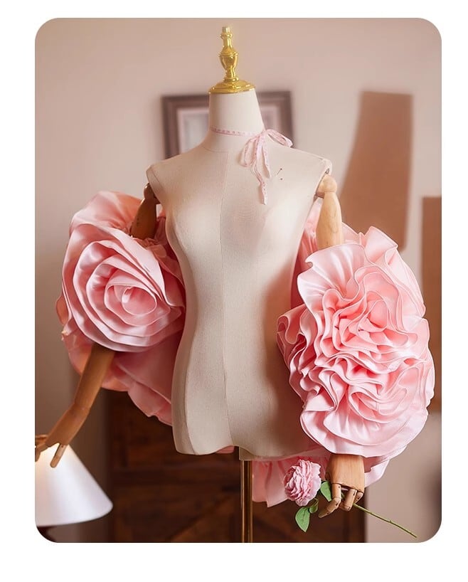 送料無料! ピンク バラ ソフトチュール 3D立体レース刺繍 オーバースカート/挙式/前撮り/結婚式