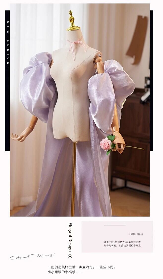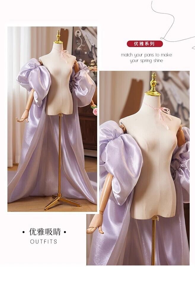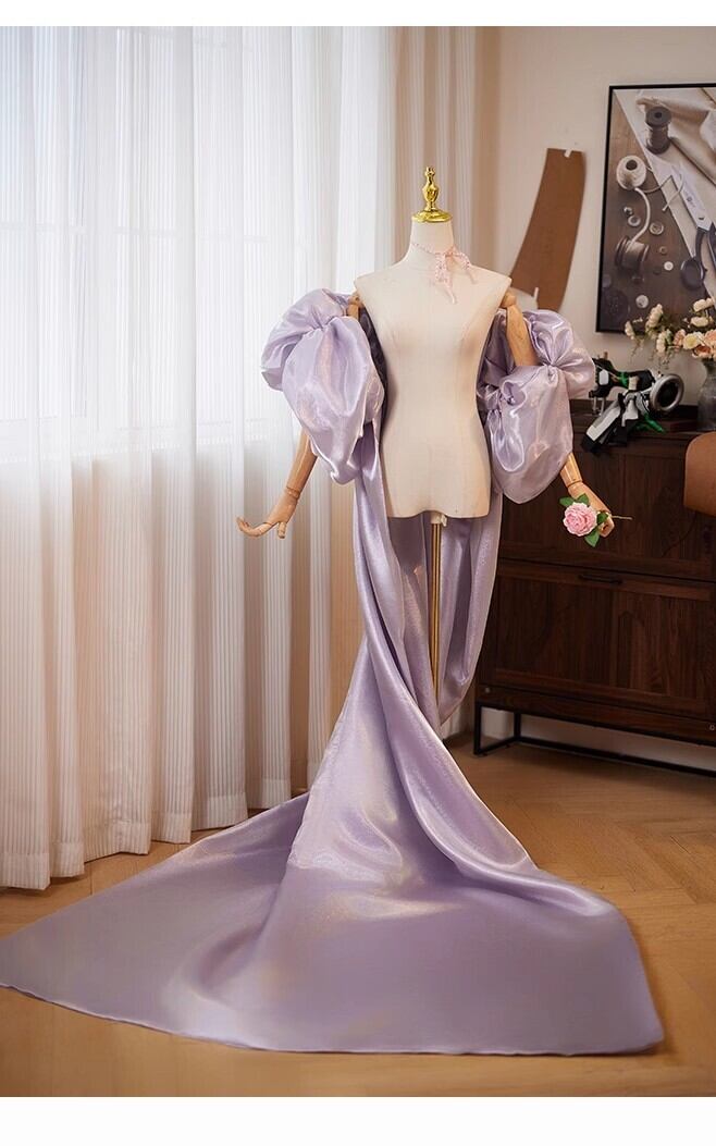 送料無料! 紫 光沢サテン ロングトレーン オーバースカート/挙式/前撮り/結婚式