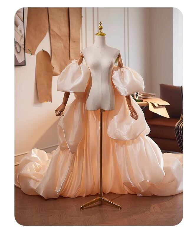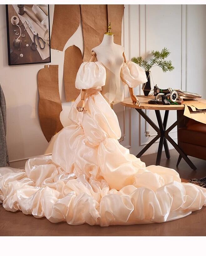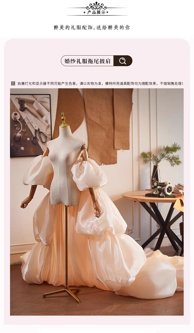 送料無料! シャンパン色 ソフトチュール 柔らかく重ねたチュールス ロングトレーン オーバースカート/挙式/前撮り/結婚式