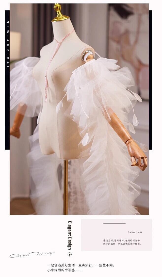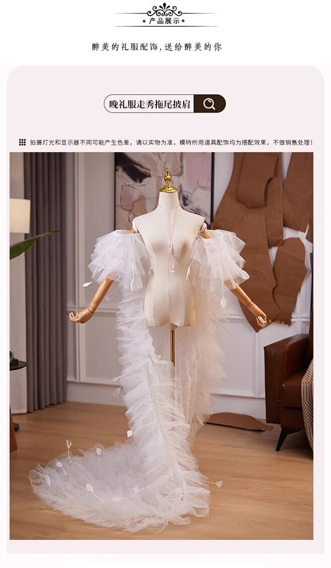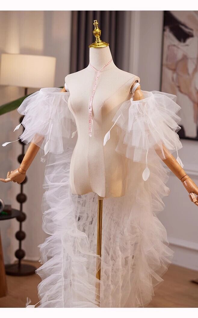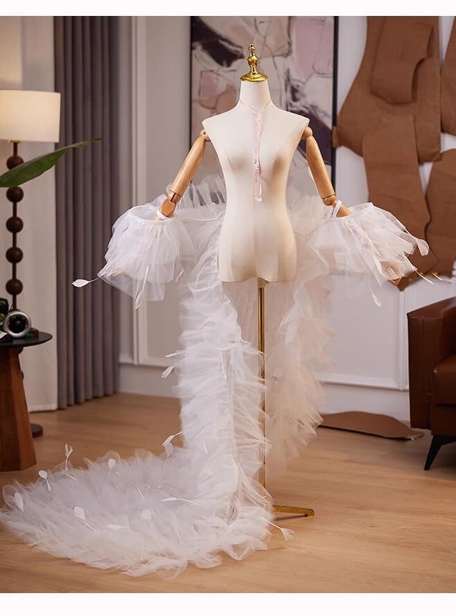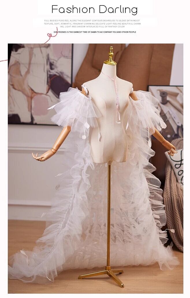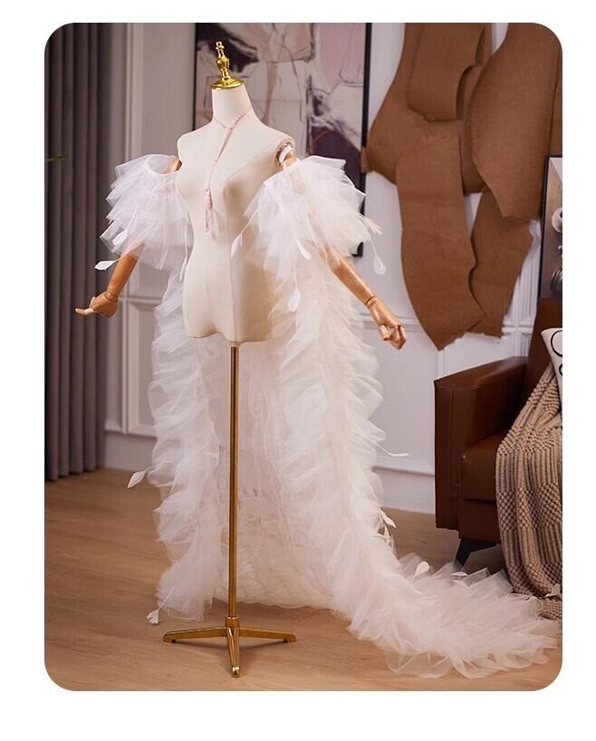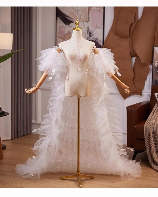 送料無料!オフホワイト ソフトチュール もこもこドレス ロングトレーン オーバースカート/挙式/前撮り/結婚式