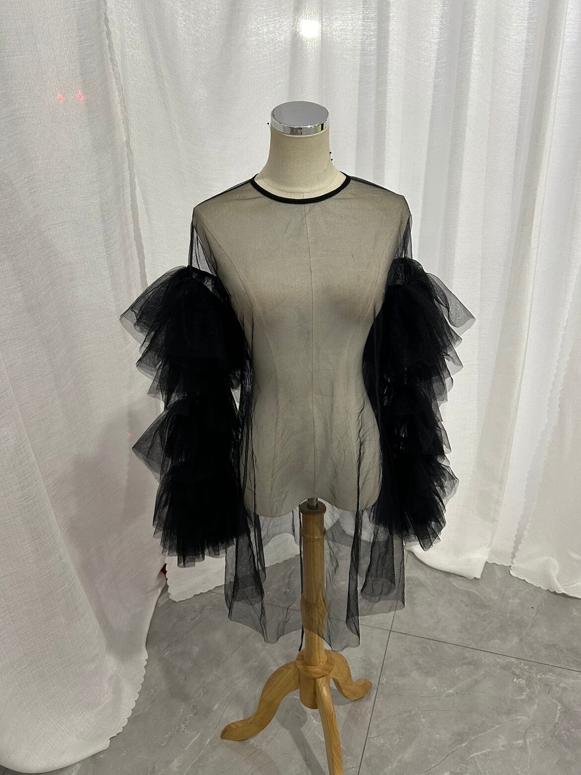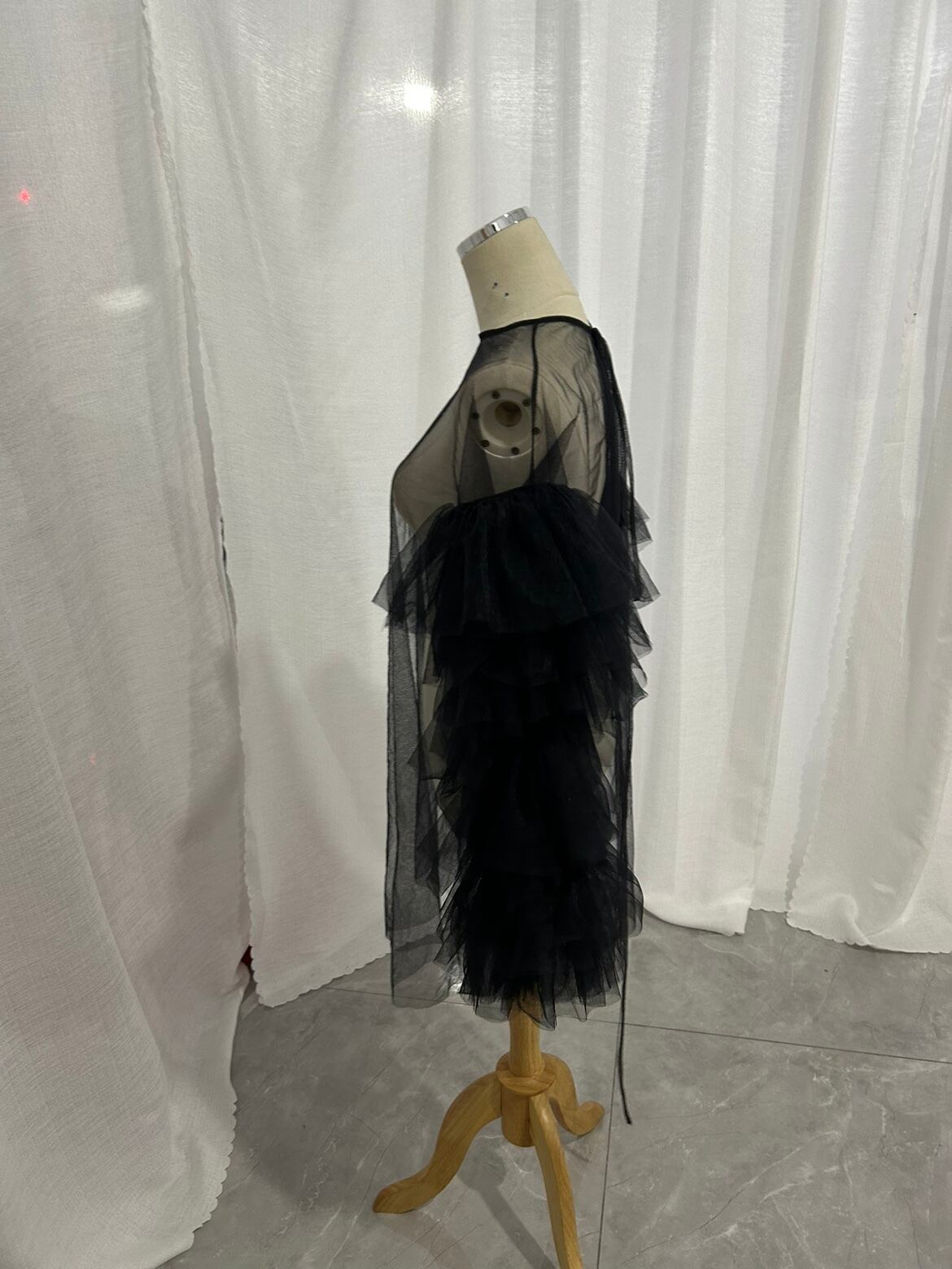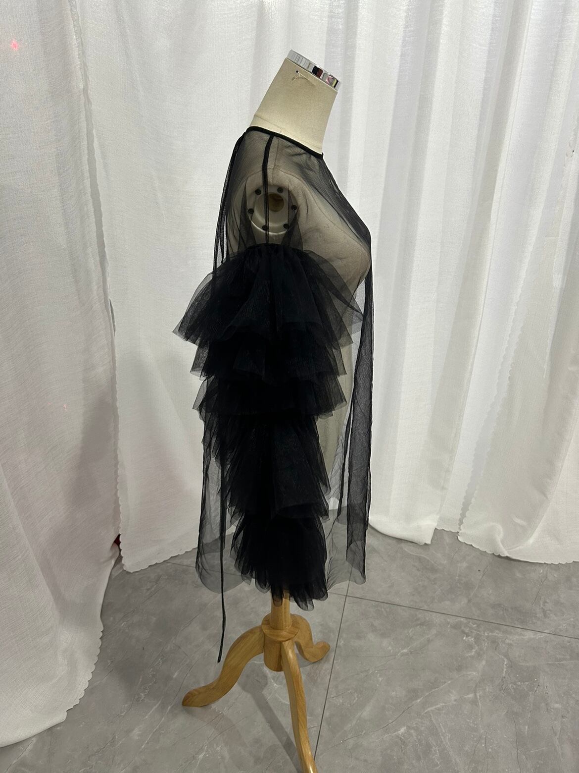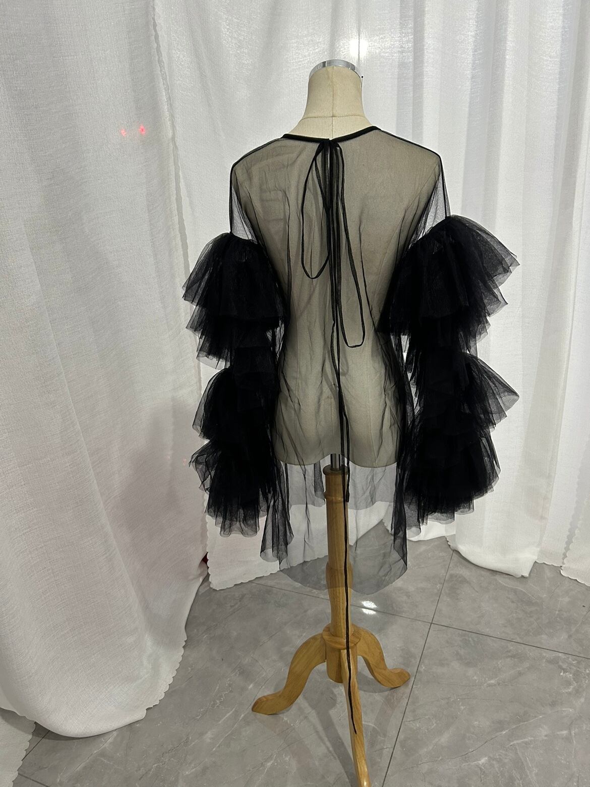送料無料!抜群のおしゃれ見え黒 カーディガン(ボレロ) ソフトチュール ラッフルフリル 長袖 演奏会/音楽会