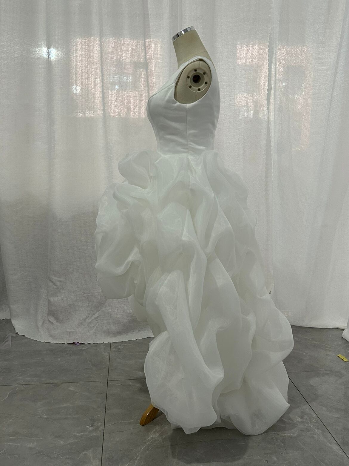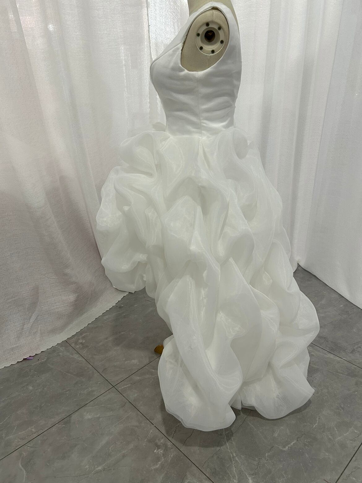 新作!ウエディングドレス フィッシュテール ふわふわバルーンスカート ボリュームドレス ノースリーブ