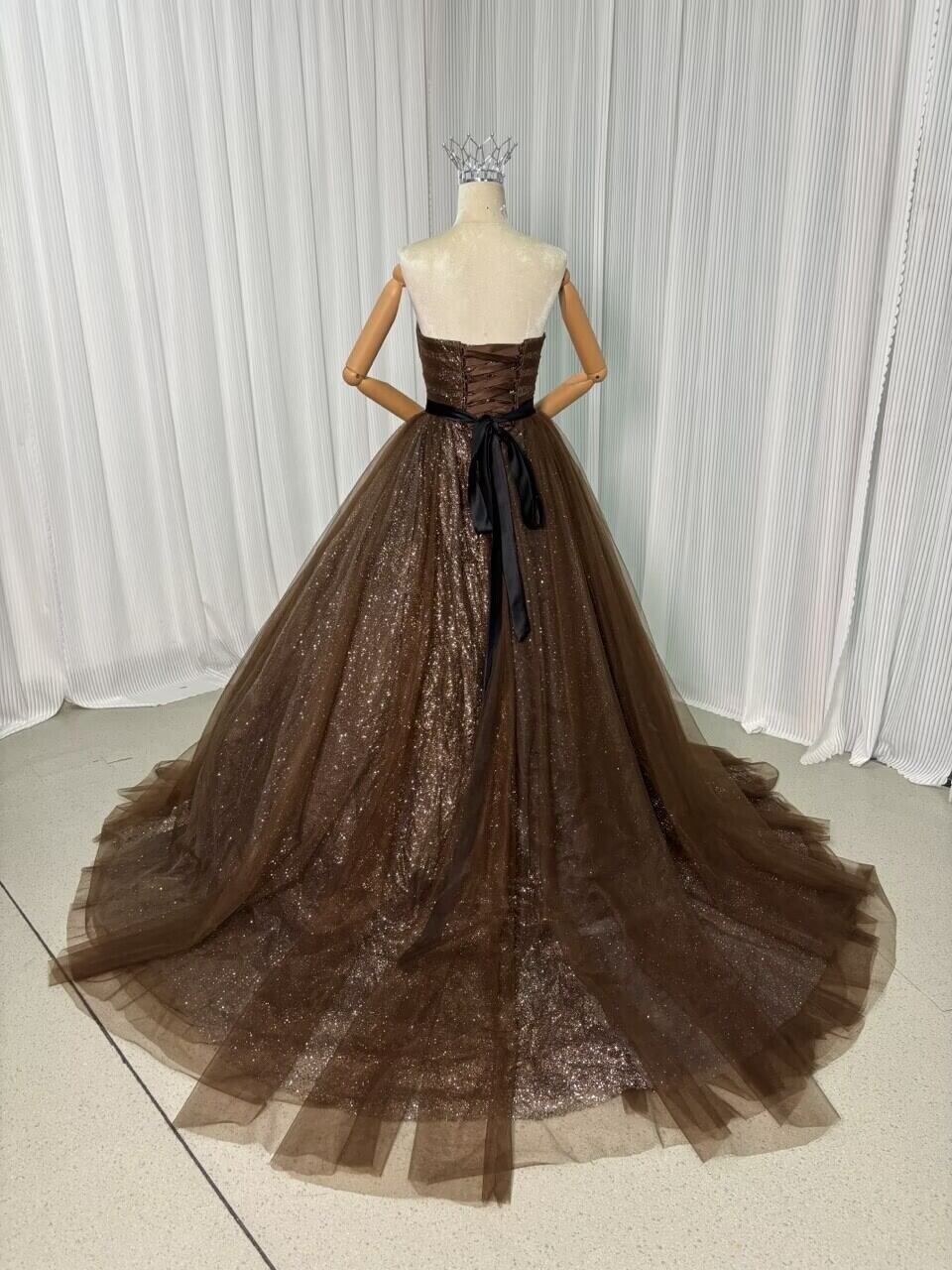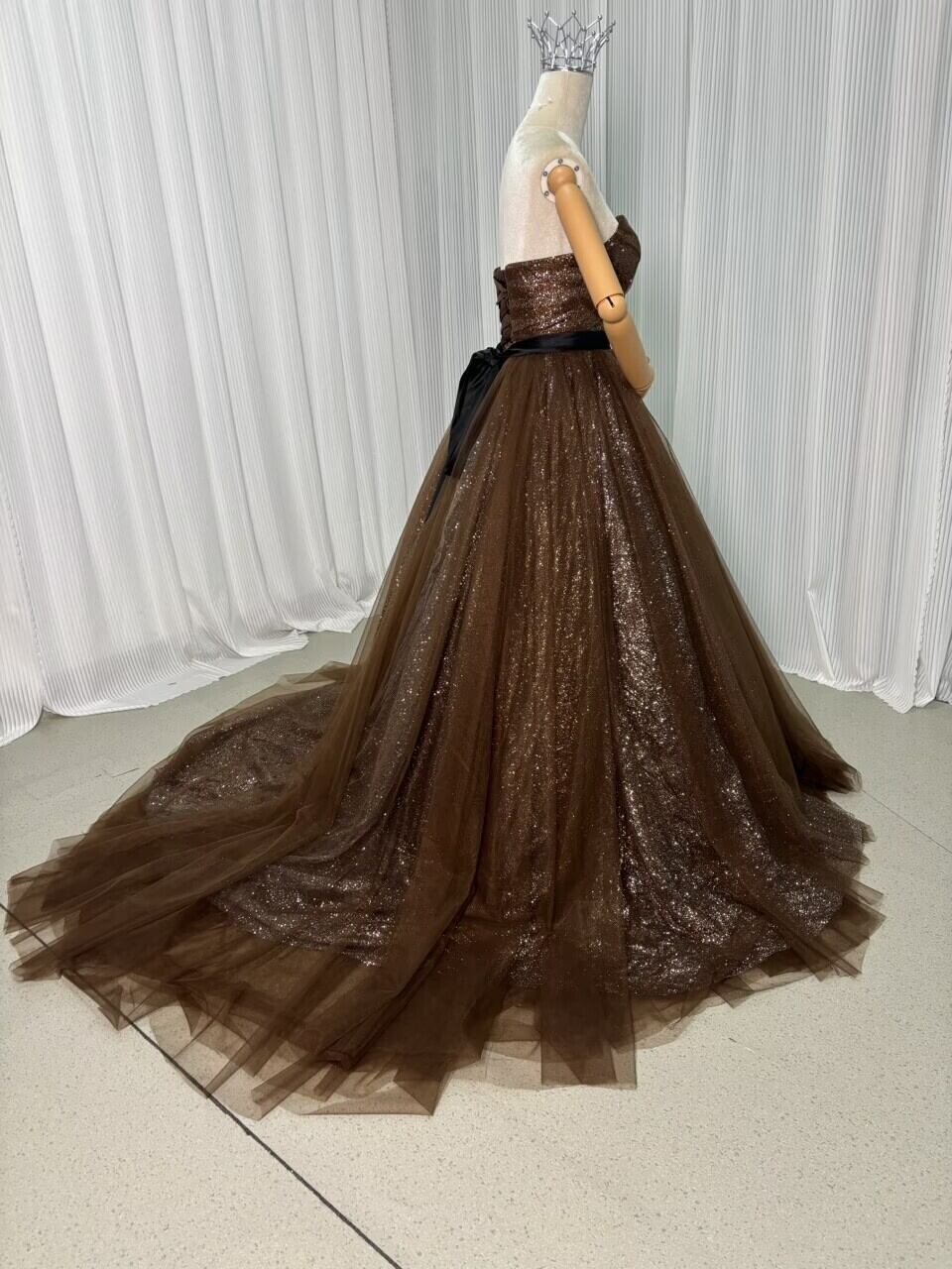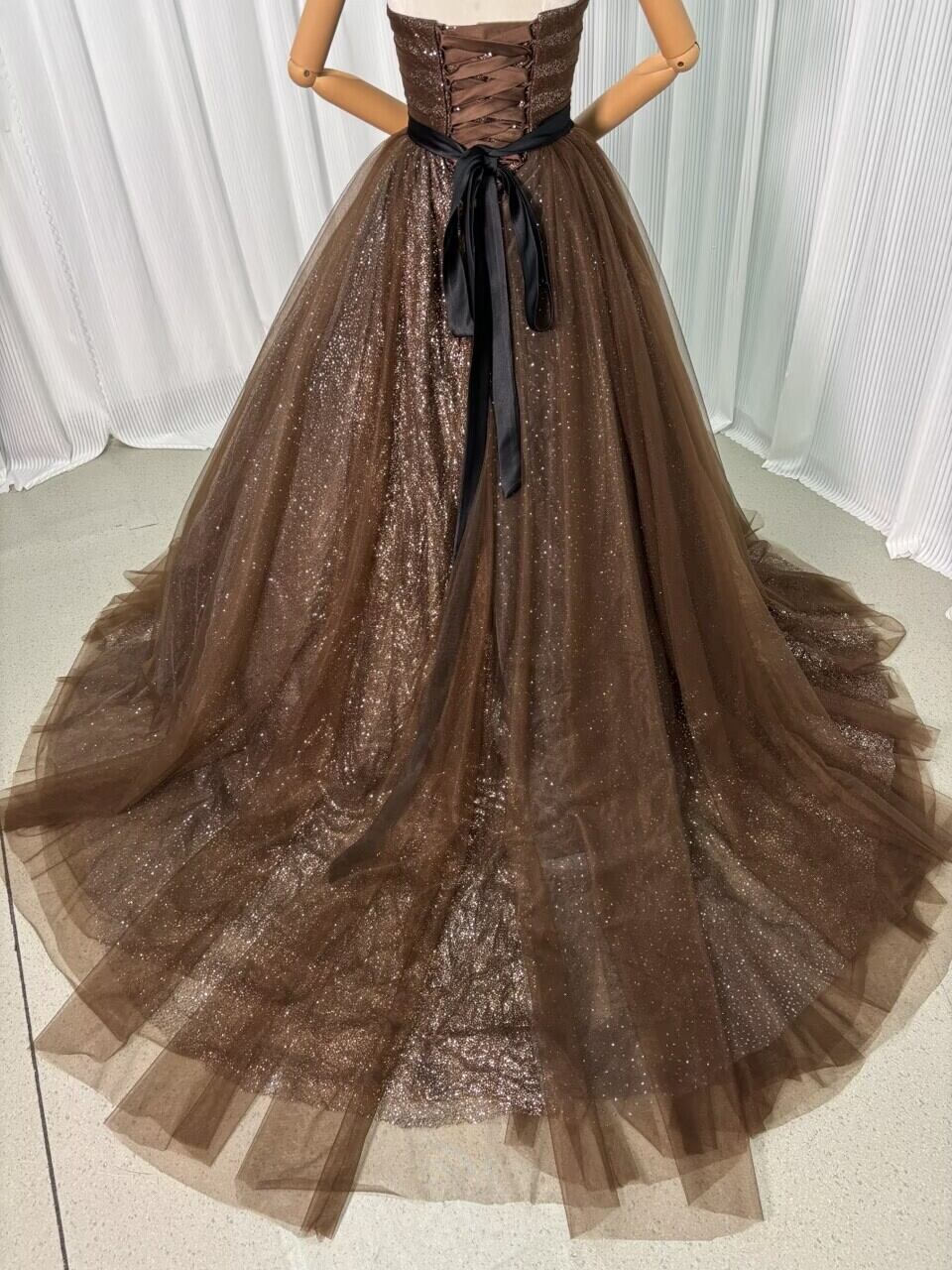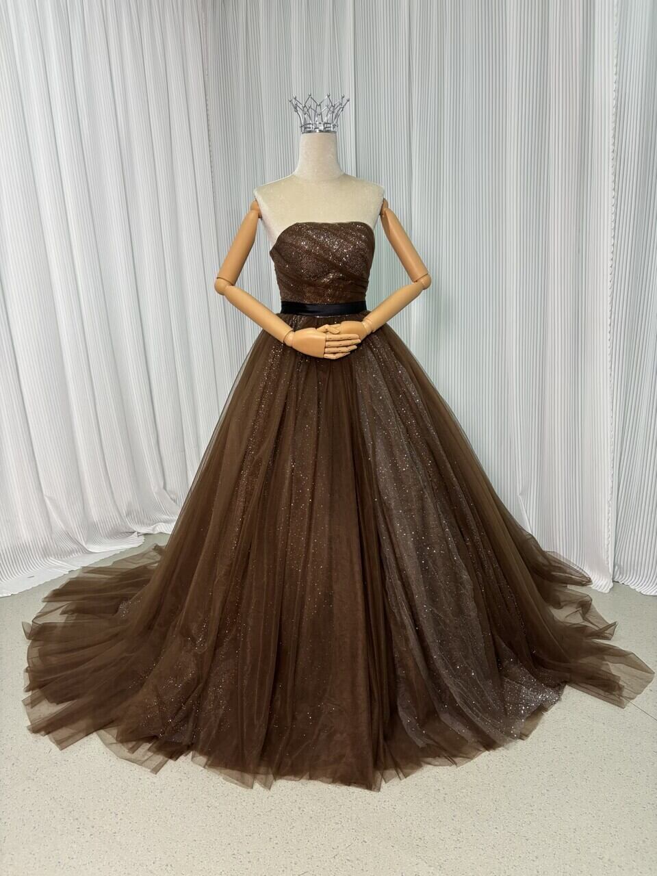 人気上昇! ベアトップ カラードレス チュールドレス キラキラチュール 華やかなトレーン お色直し結婚式 披露宴