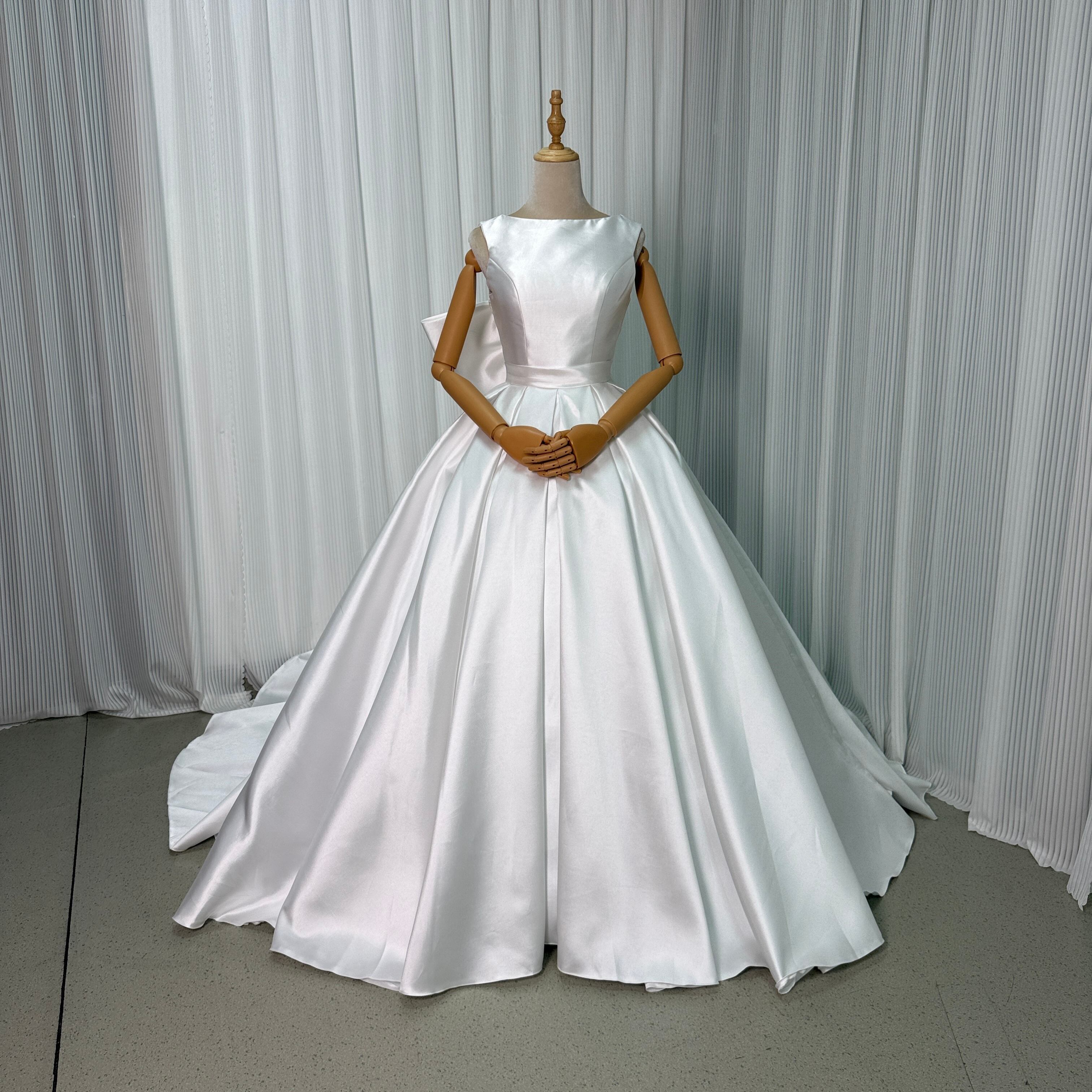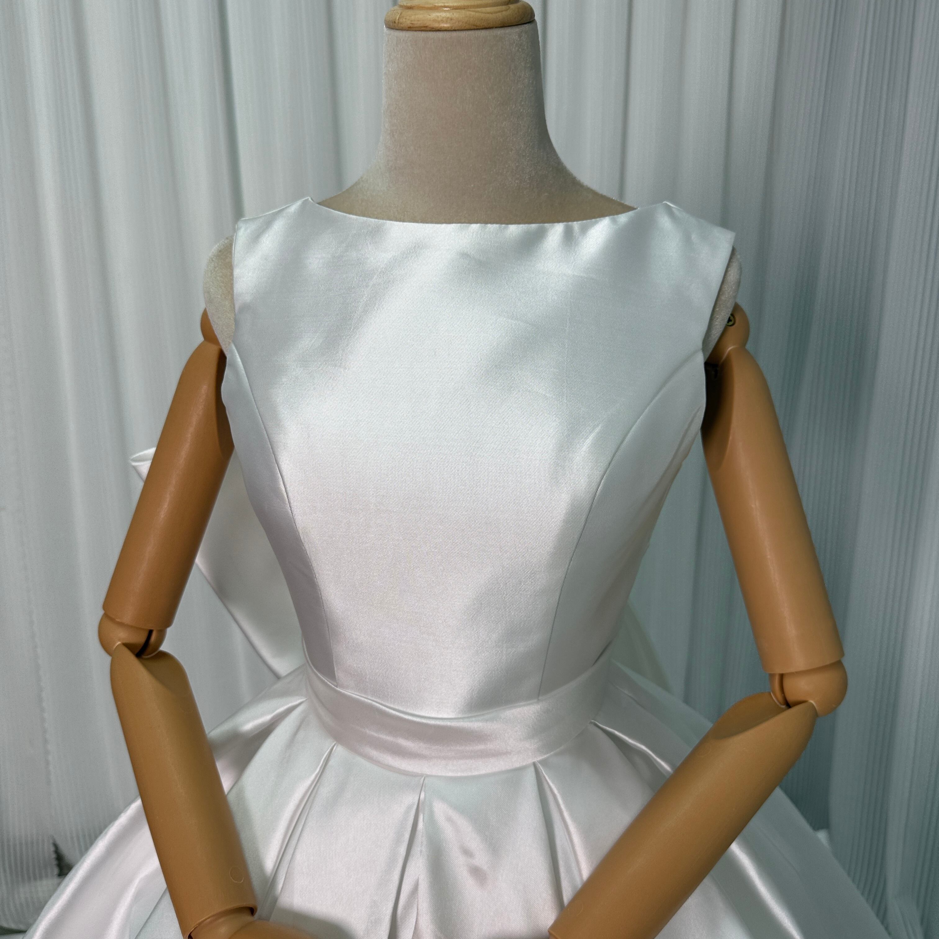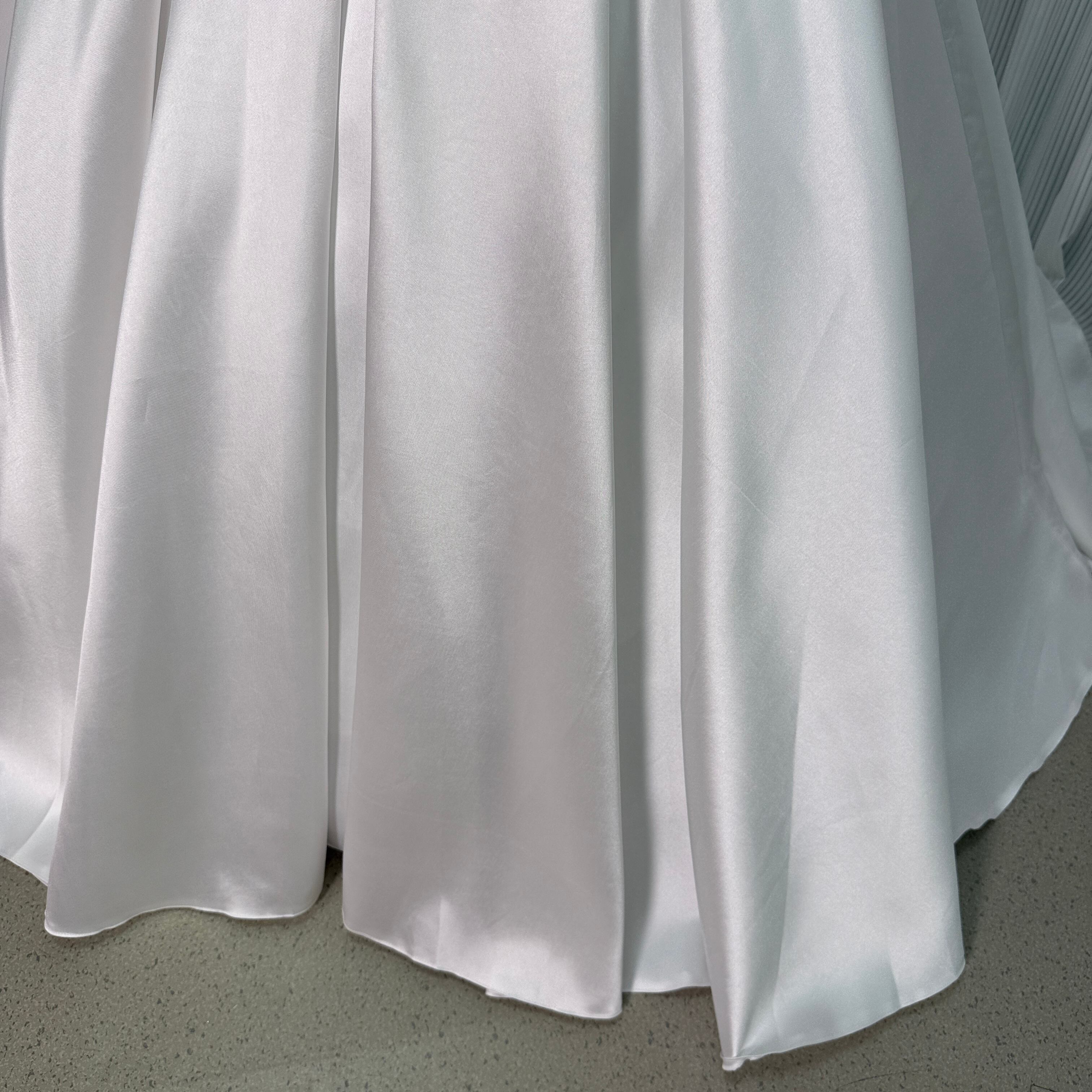 人気上昇!オフホワイト ミカドサテン ウエディングドレス 華やかなトレーン 花嫁 /結婚式 披露宴