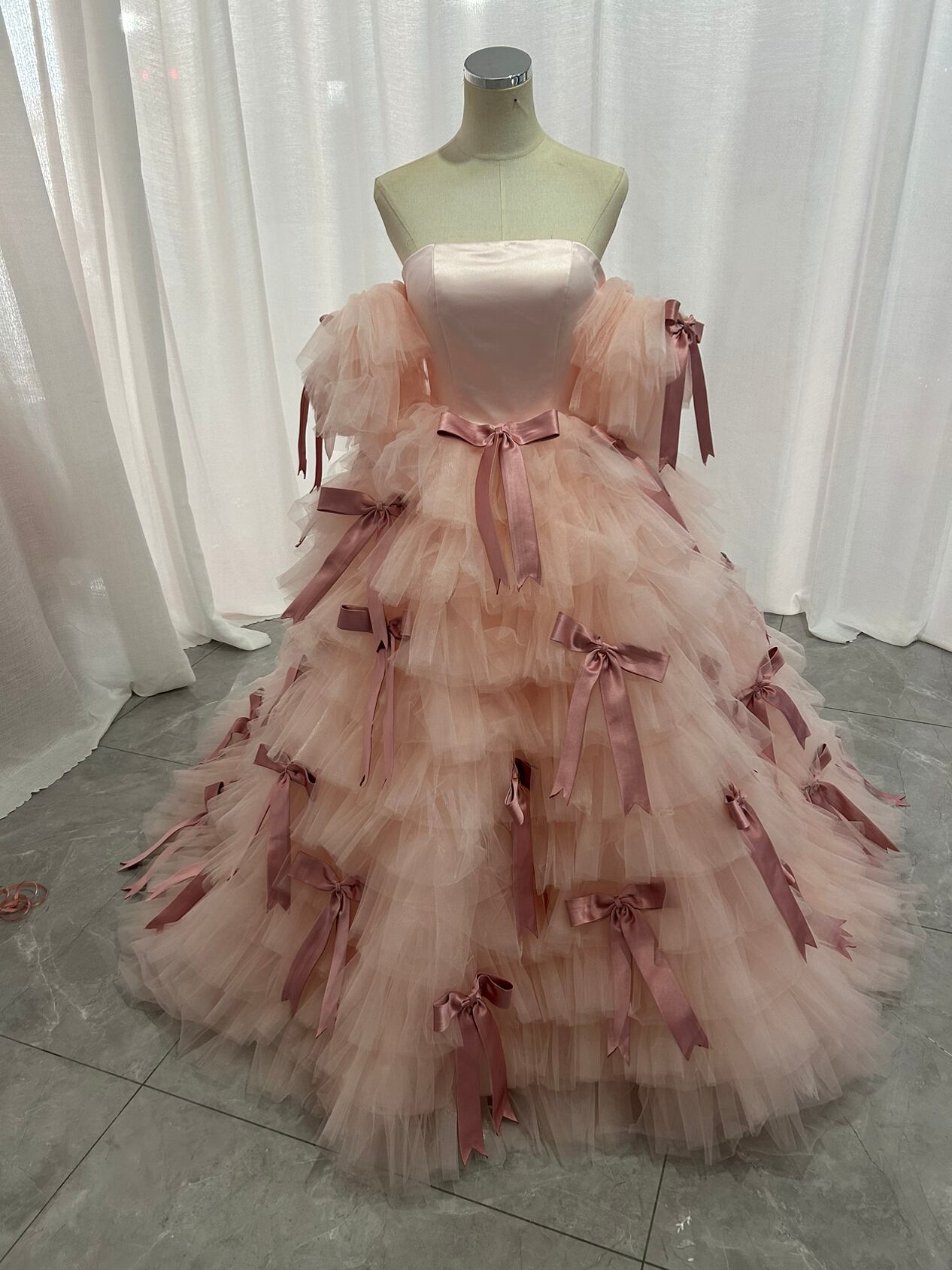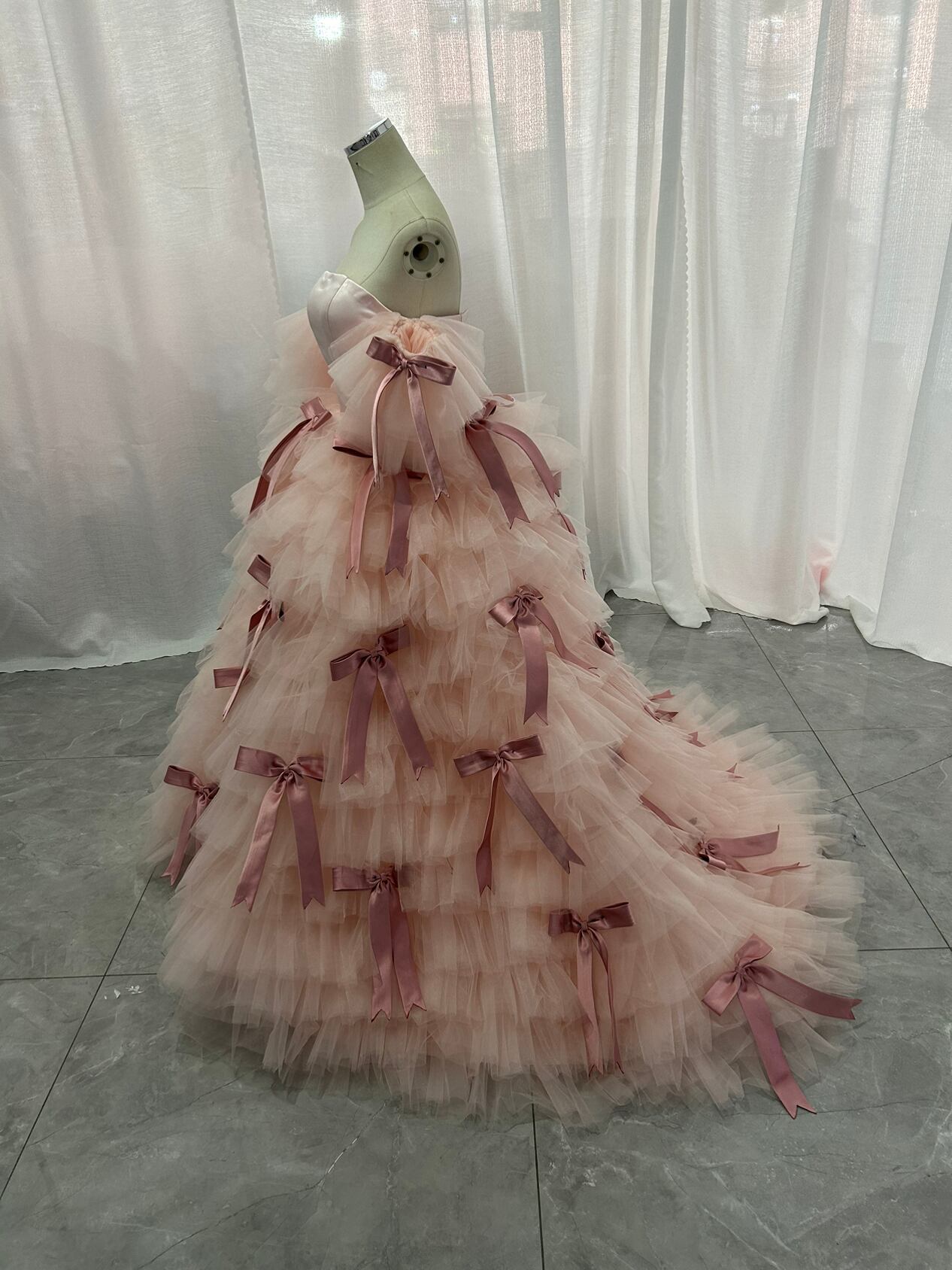輝きな光彩を放つ パステル ボルドー色 カラードレスキラキラチュール裾に繊細レースをあしらった華やかなトレーン
