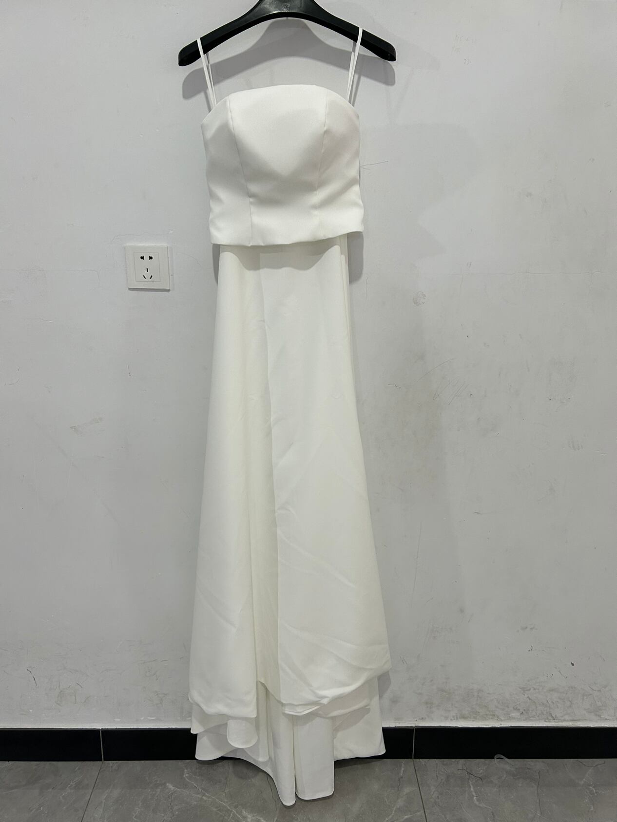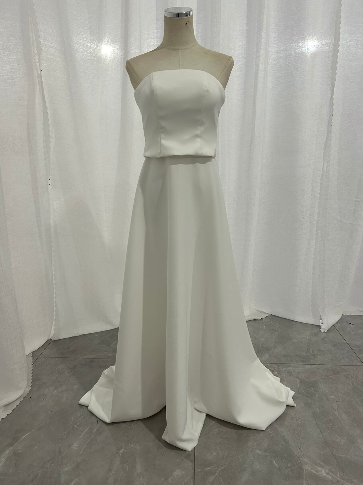 人気上昇! オフホワイト ベアトップ ウエディングドレス クレープ生地 お色直し結婚式 披露宴