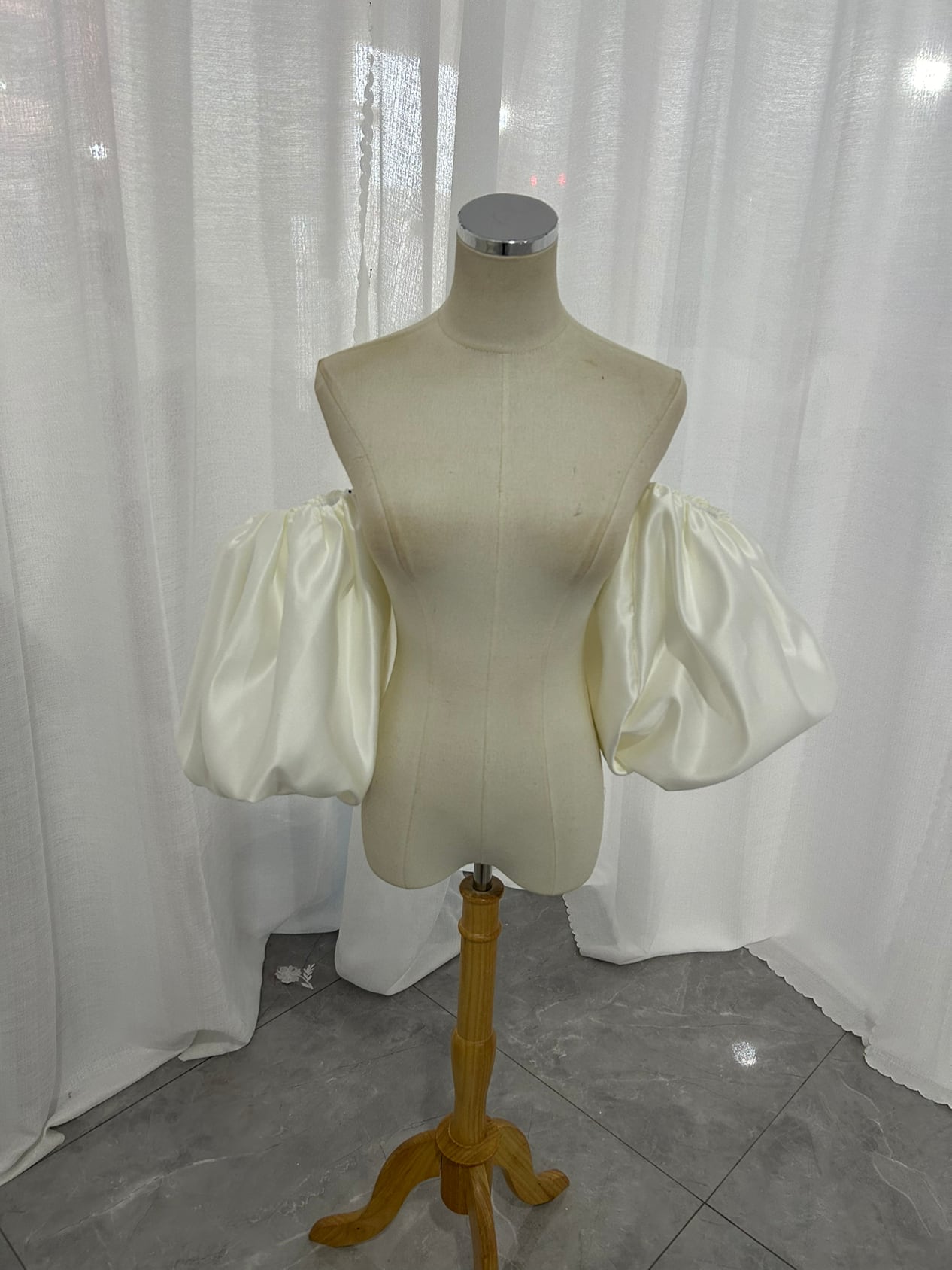 高級サテン ドレスアレンジ用取り外し袖のみ アイボリー ショルダーの付け袖 パフスリーブ 色オーダー可能 二の腕