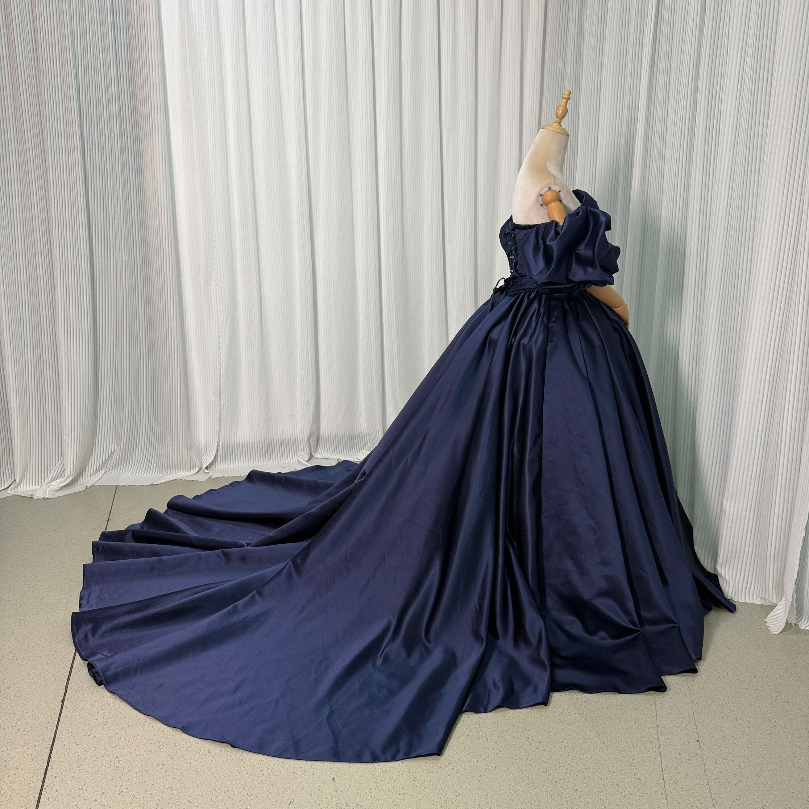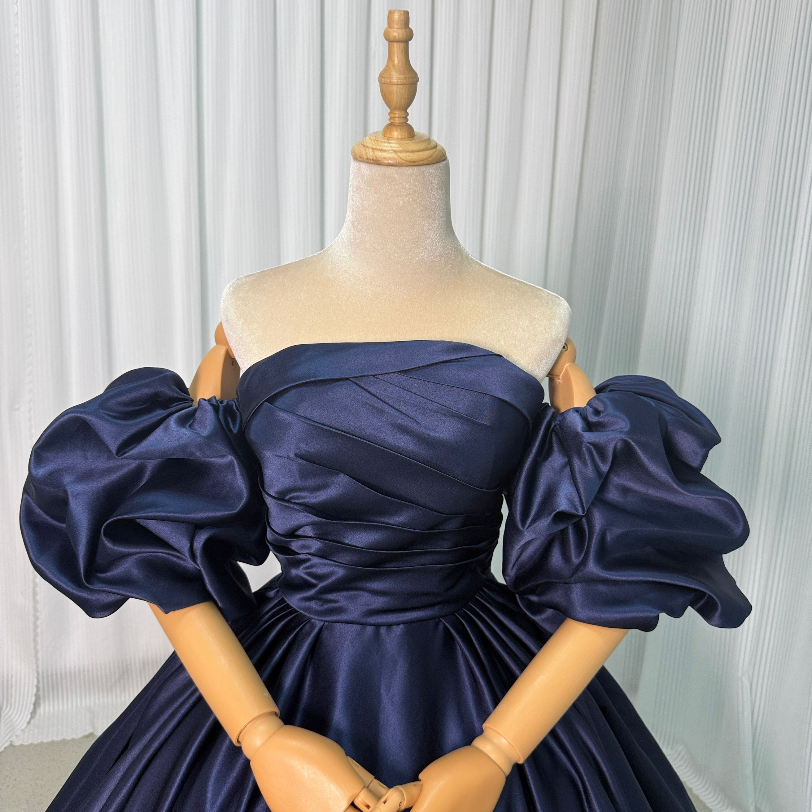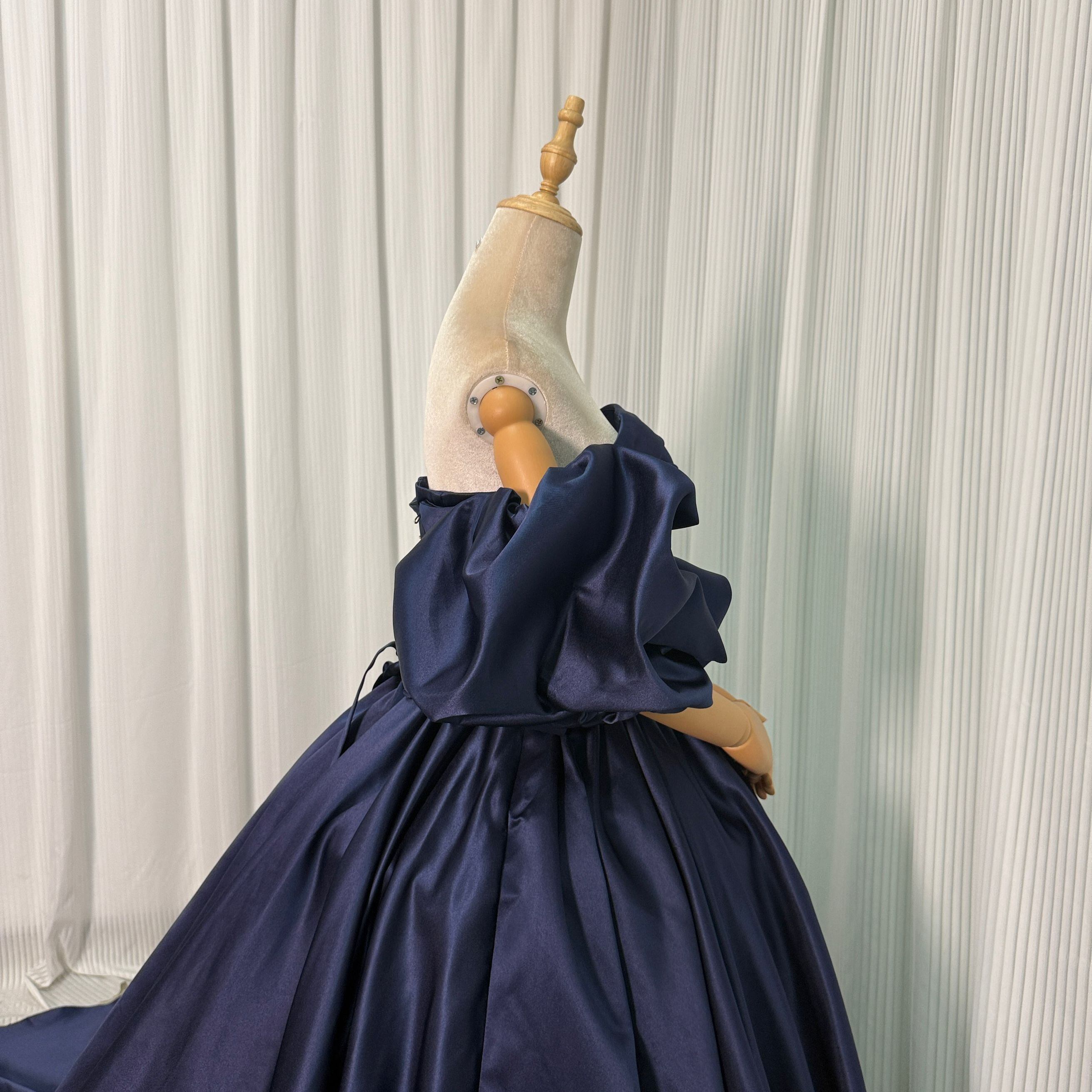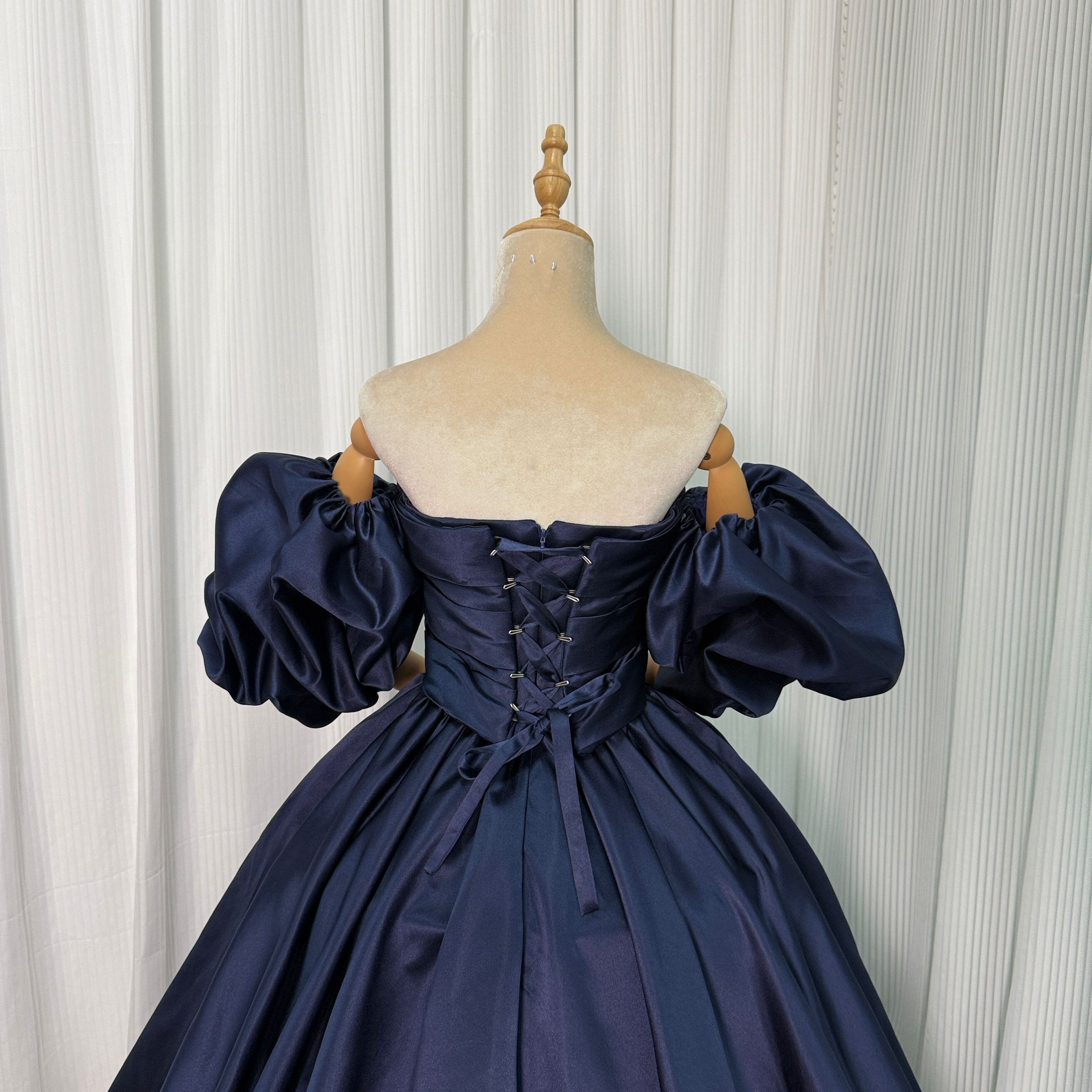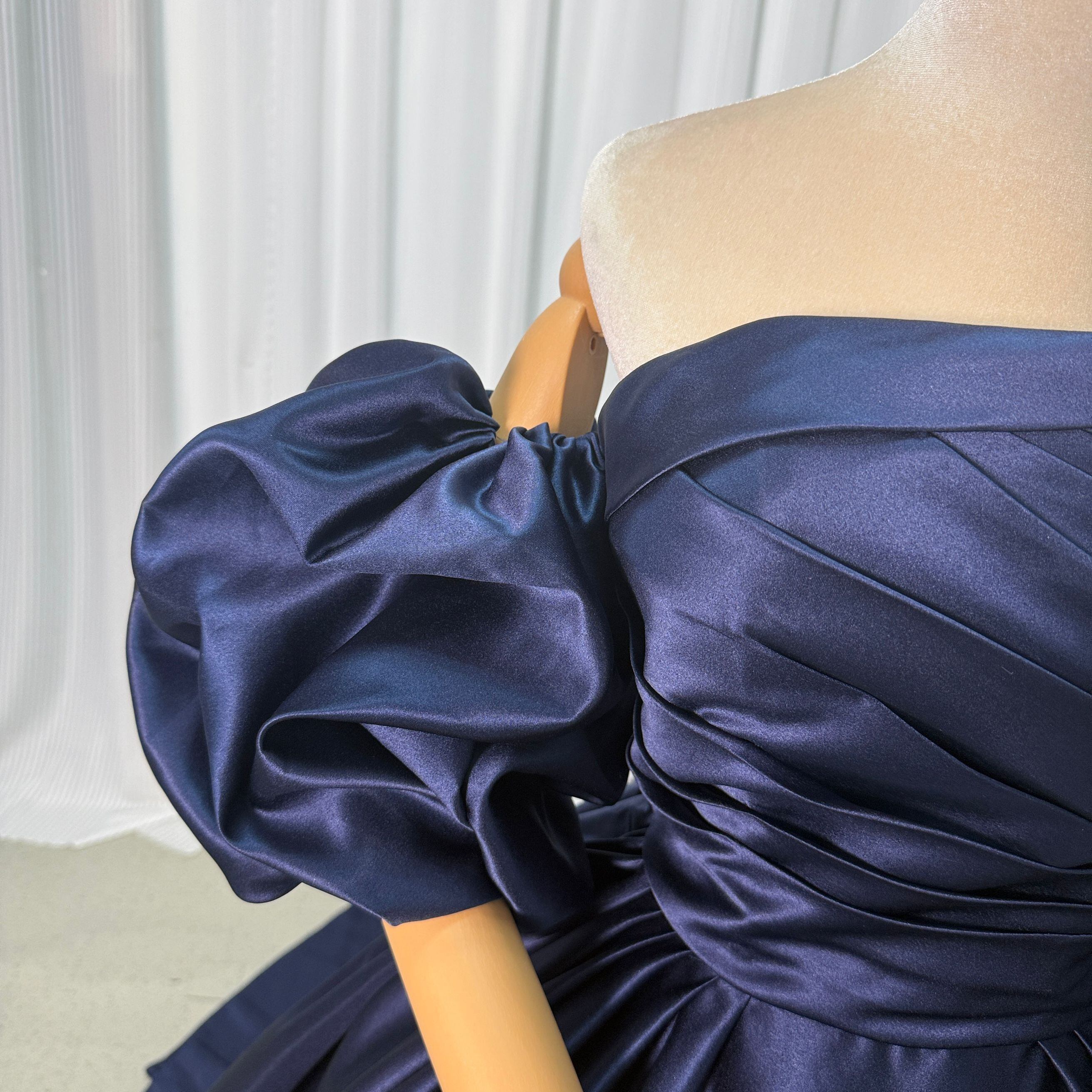 上品! ネイビー カラードレス パフスリーブのオフショルダー プリンセスライン お色直し結婚式 披露宴