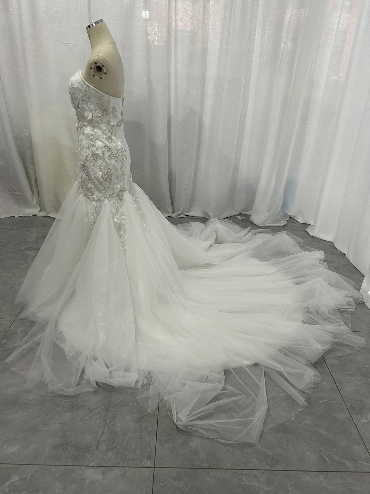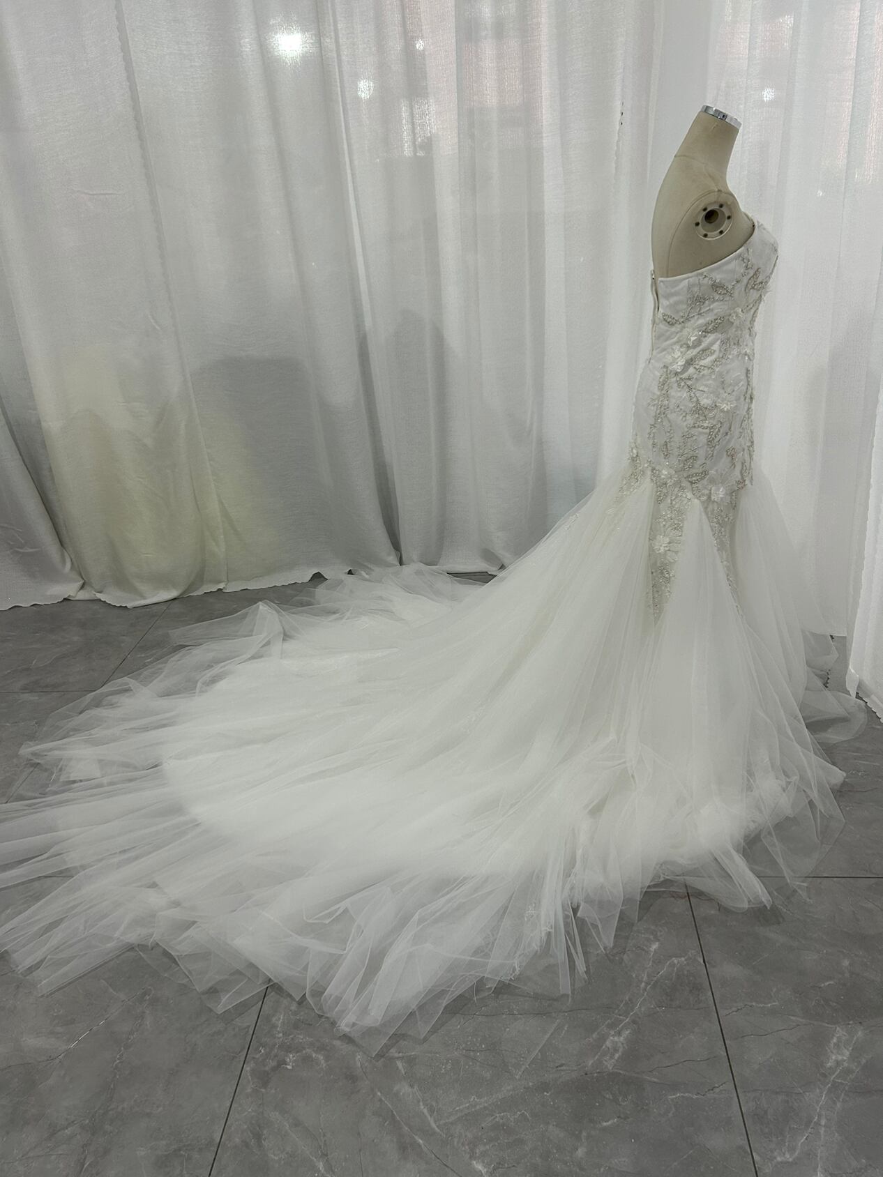輝きな光彩を放つ カラードレスキラキラチュール華やかなトレーン マーメイドライン結婚式/披露宴