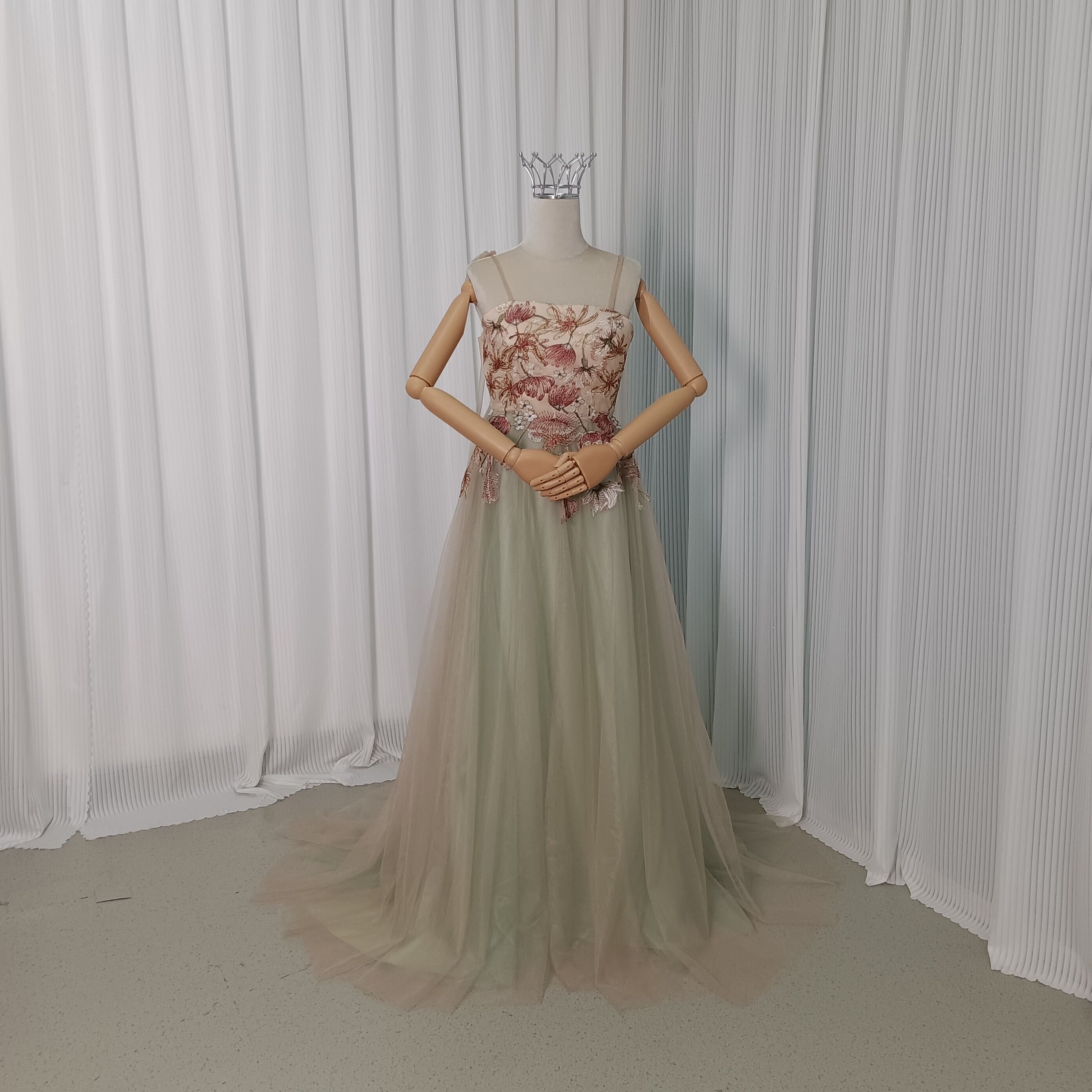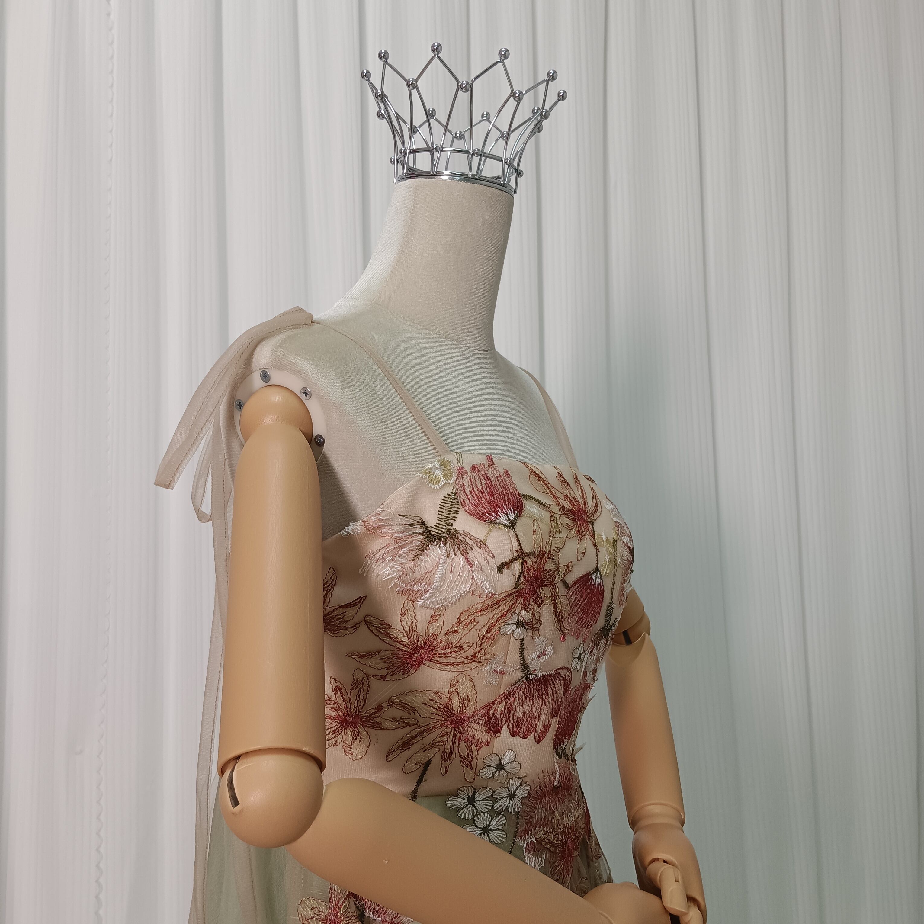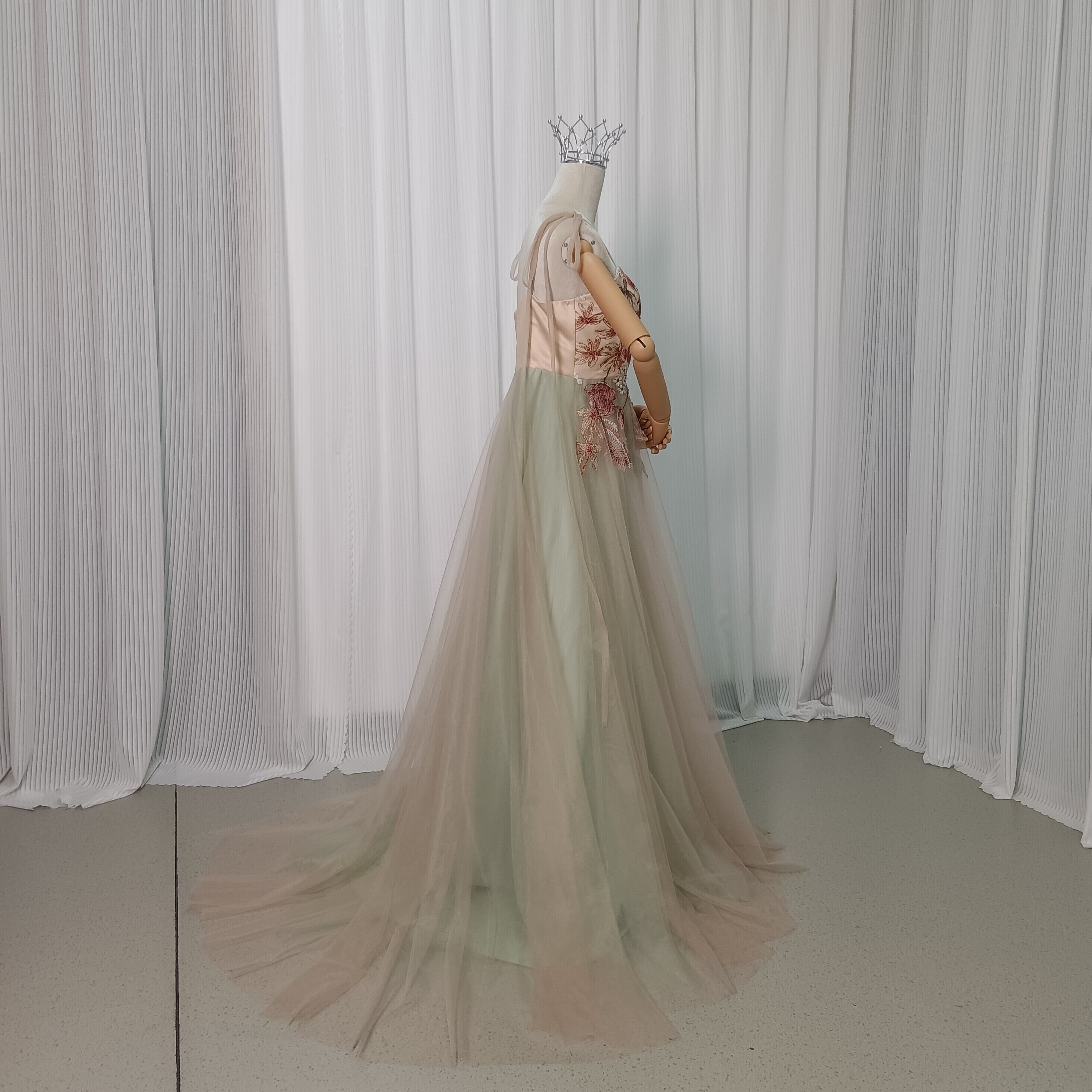 人気上昇! 花柄刺繍が美し オーバードレス トレーンのみ カラードレス チュールドレス 花嫁 /結婚式 披露宴