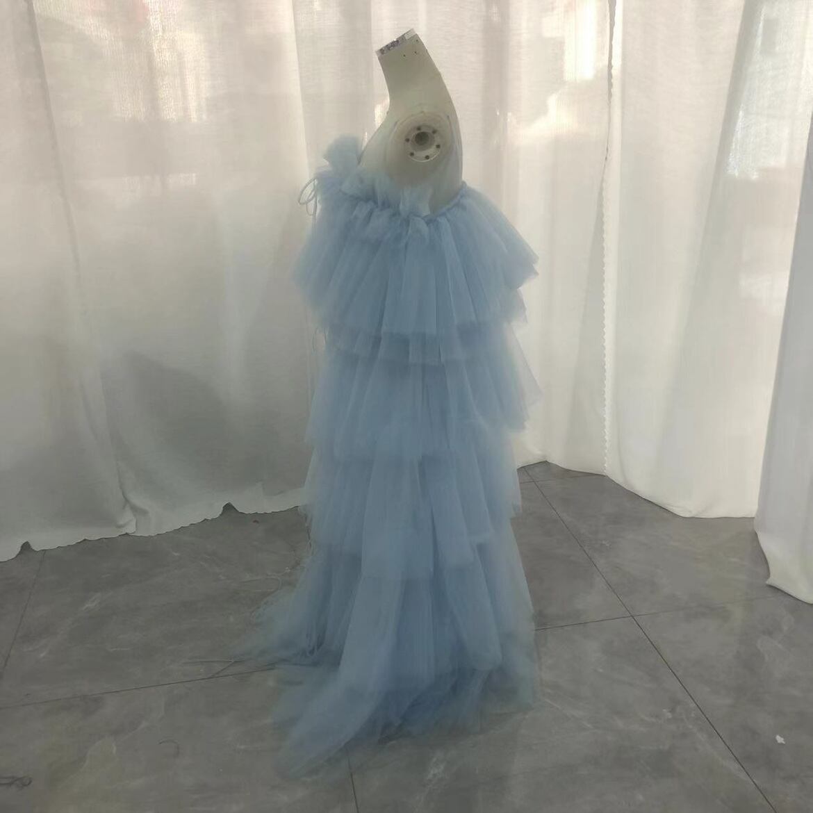 送料無料 !上品!ペールトーンのミント青 色 チュールドレス ソフトチュール カラードレスオーバースカート