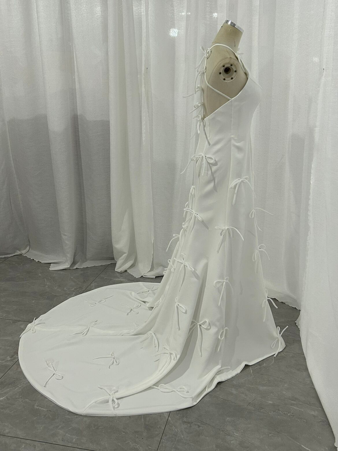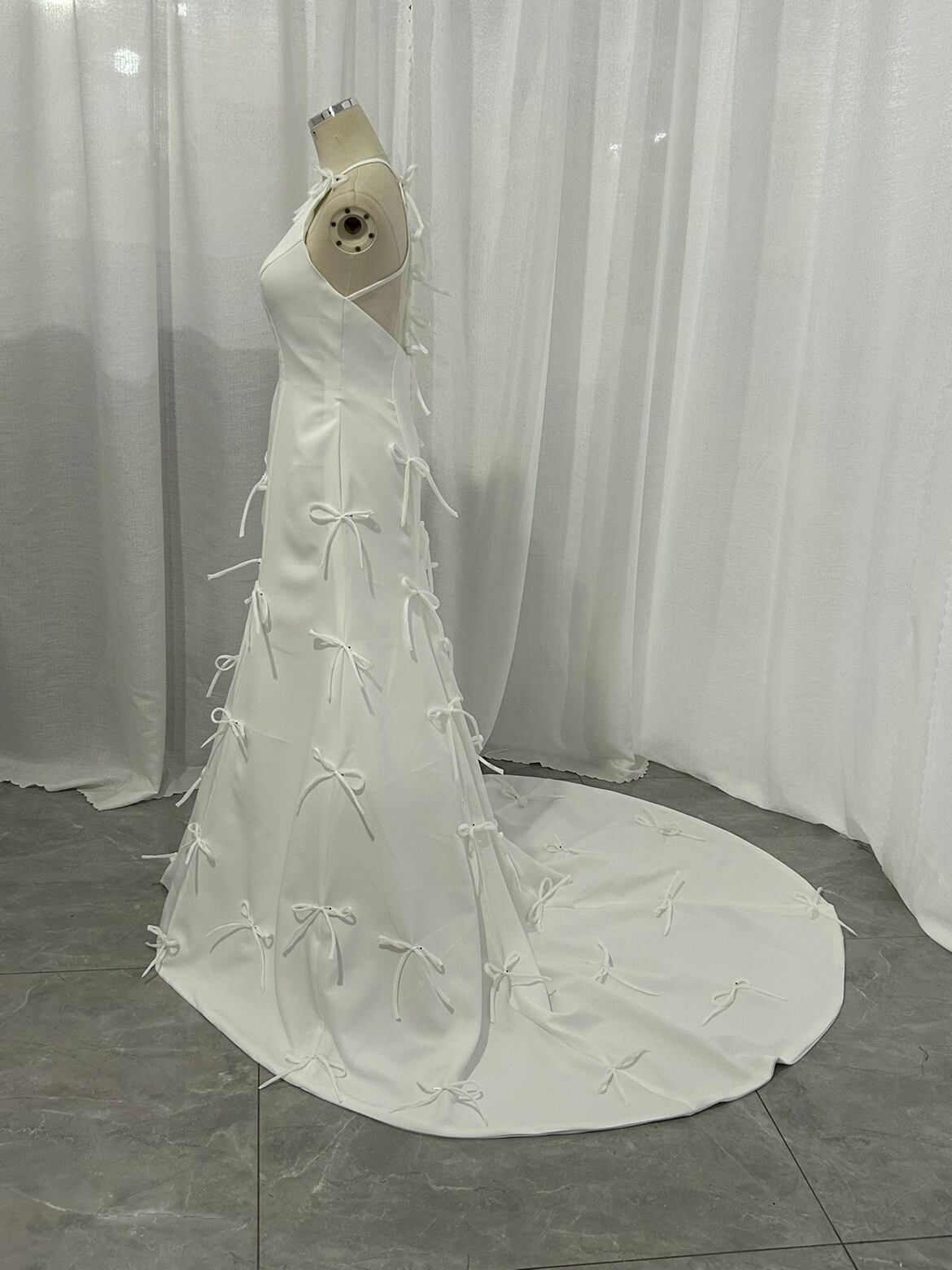 上品 ホルターネック ウエディングドレス 3D立体 リボンロングトレーン 2次会 前撮り 花嫁 挙式