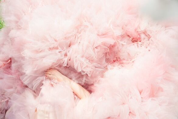 実例写真!人気上昇! ピンク カラードレス 柔らかく重ねたチュールスカートお色直し披露宴