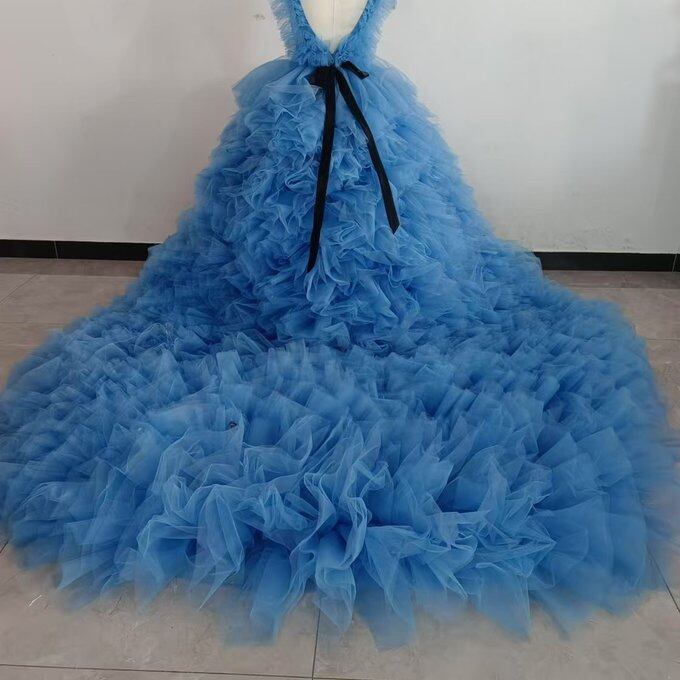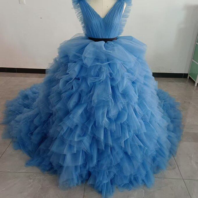 人気上昇!青 カラードレス もこもこ チュールドレス ボリューム 色変更 ノースリーブ フリルドレス