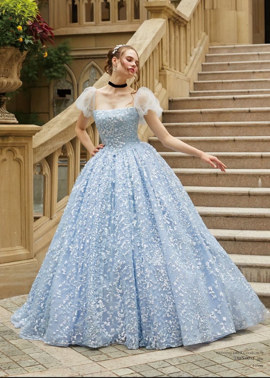 カラードレス ブルー キラキラドレス ファスナー グリーター 色変更 プリンセスライン 床付く