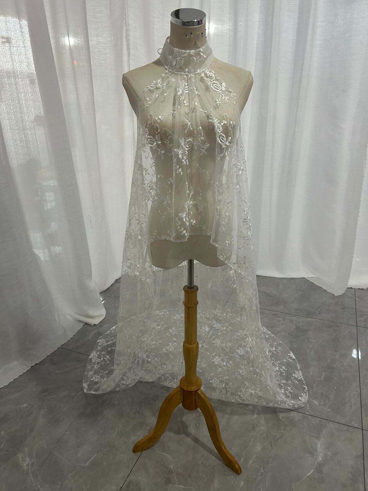 送料無料!華やか 花柄のモチーフ ホルターネック オーバードレス ロングトレーン パーティードレス 結婚式/披露宴