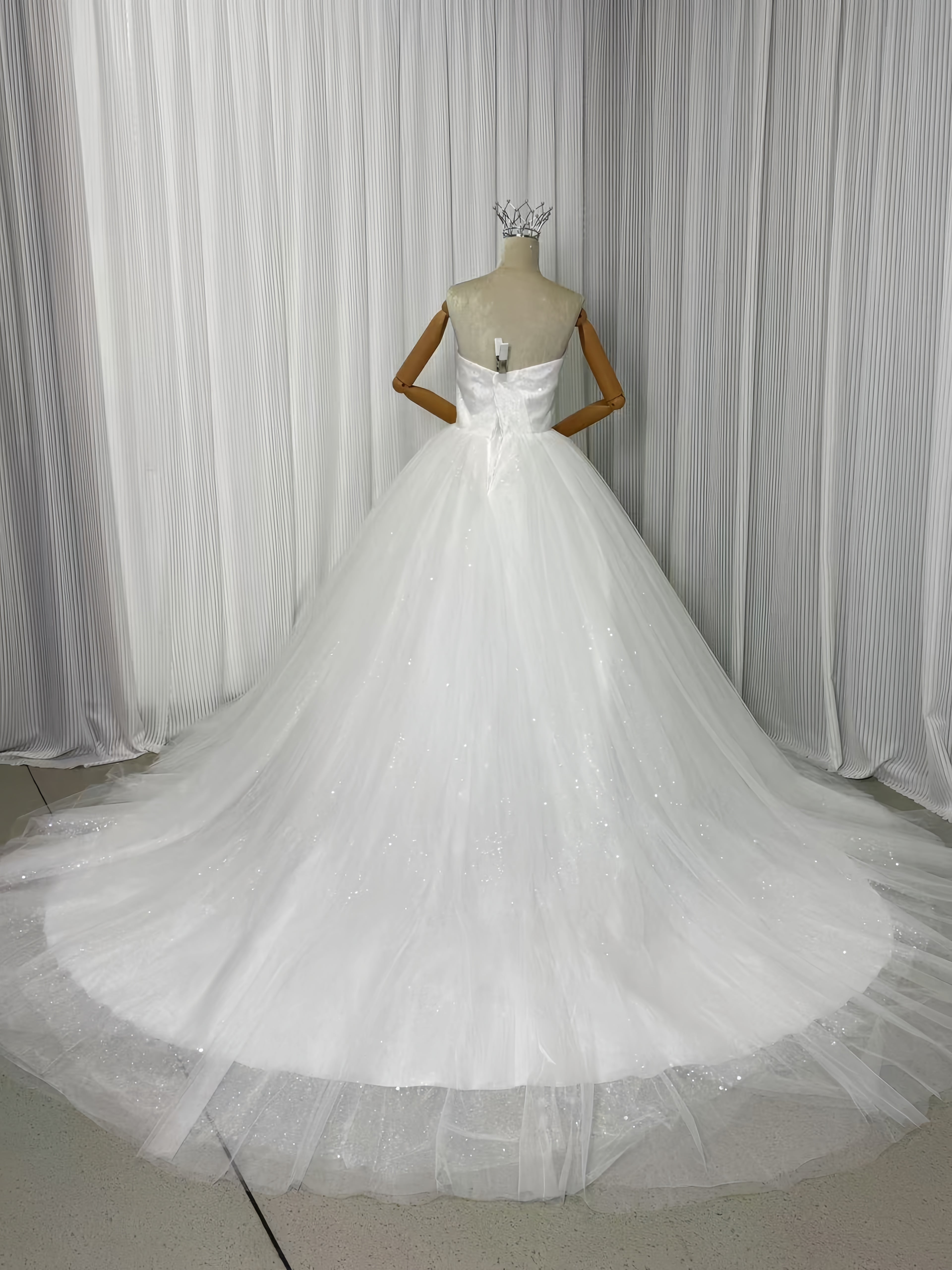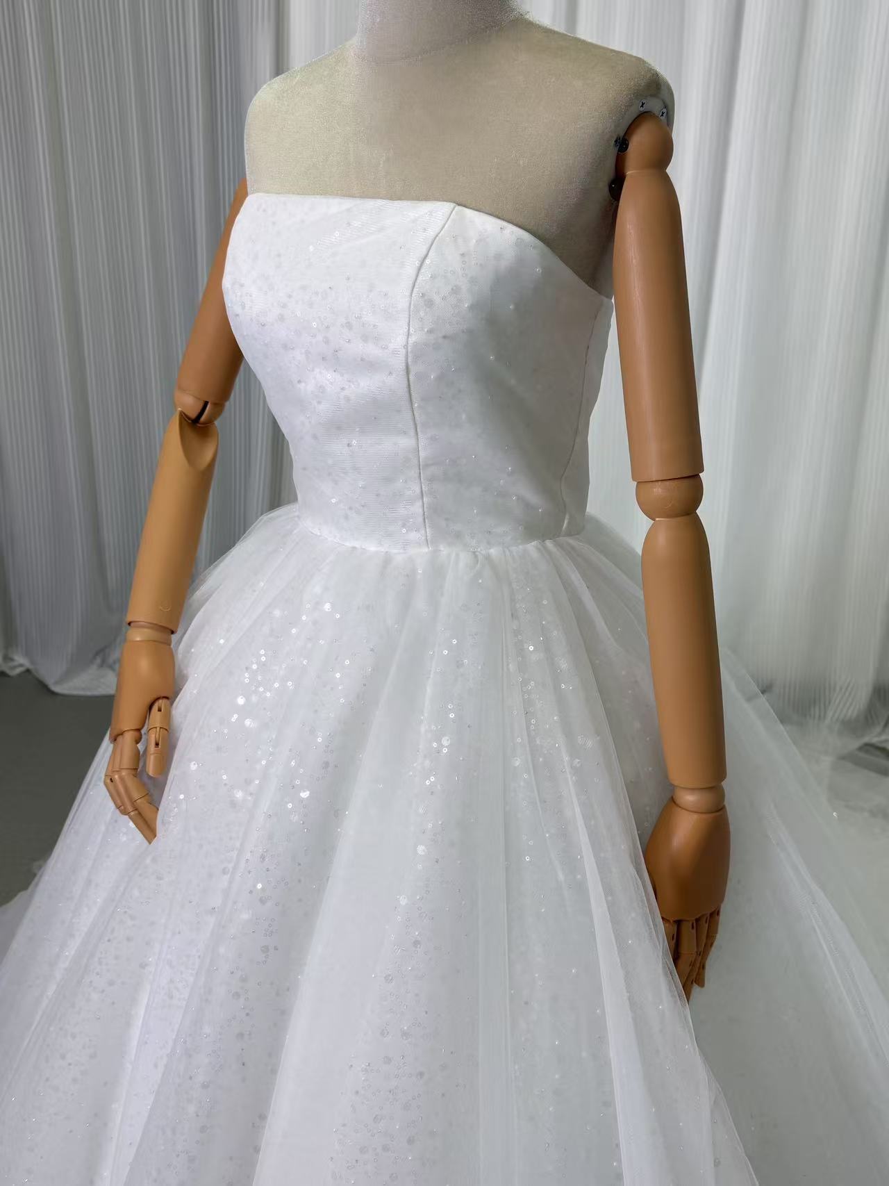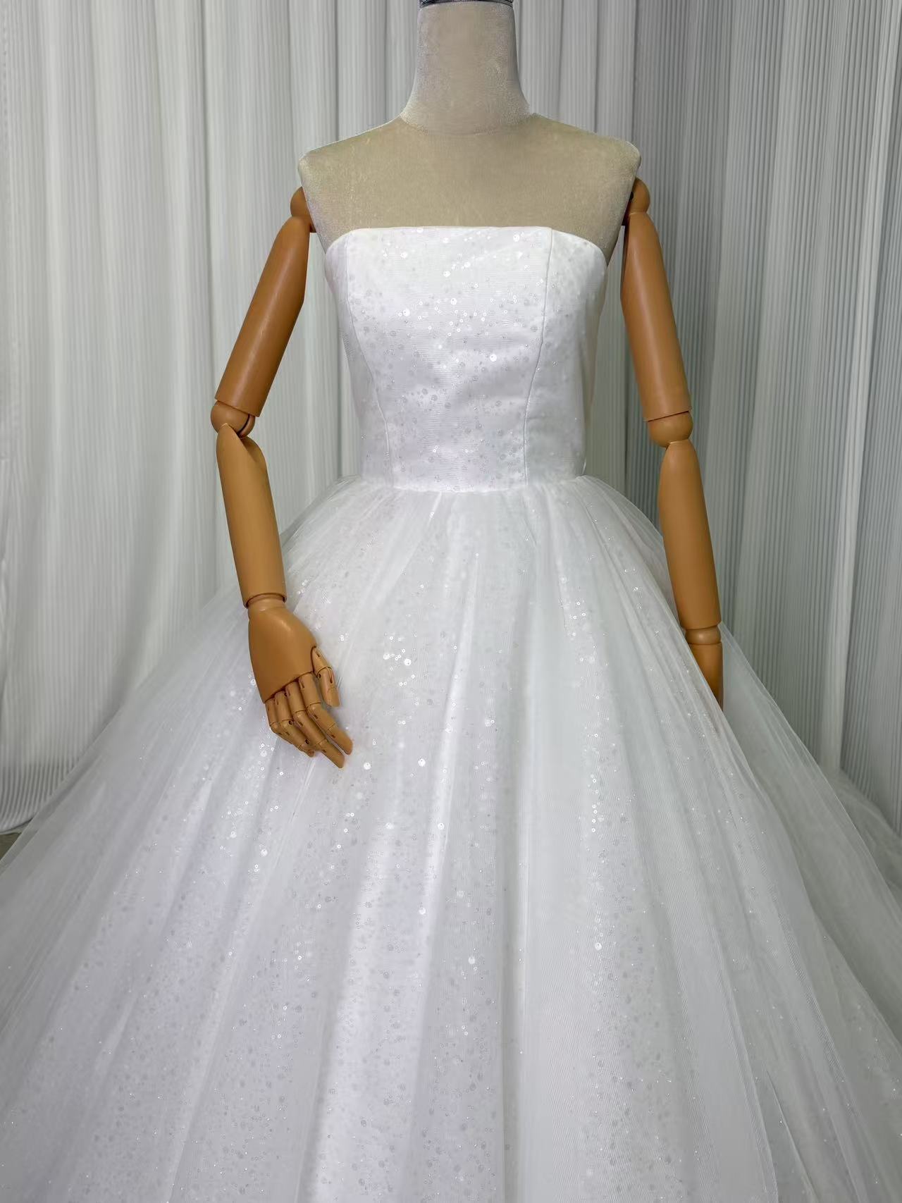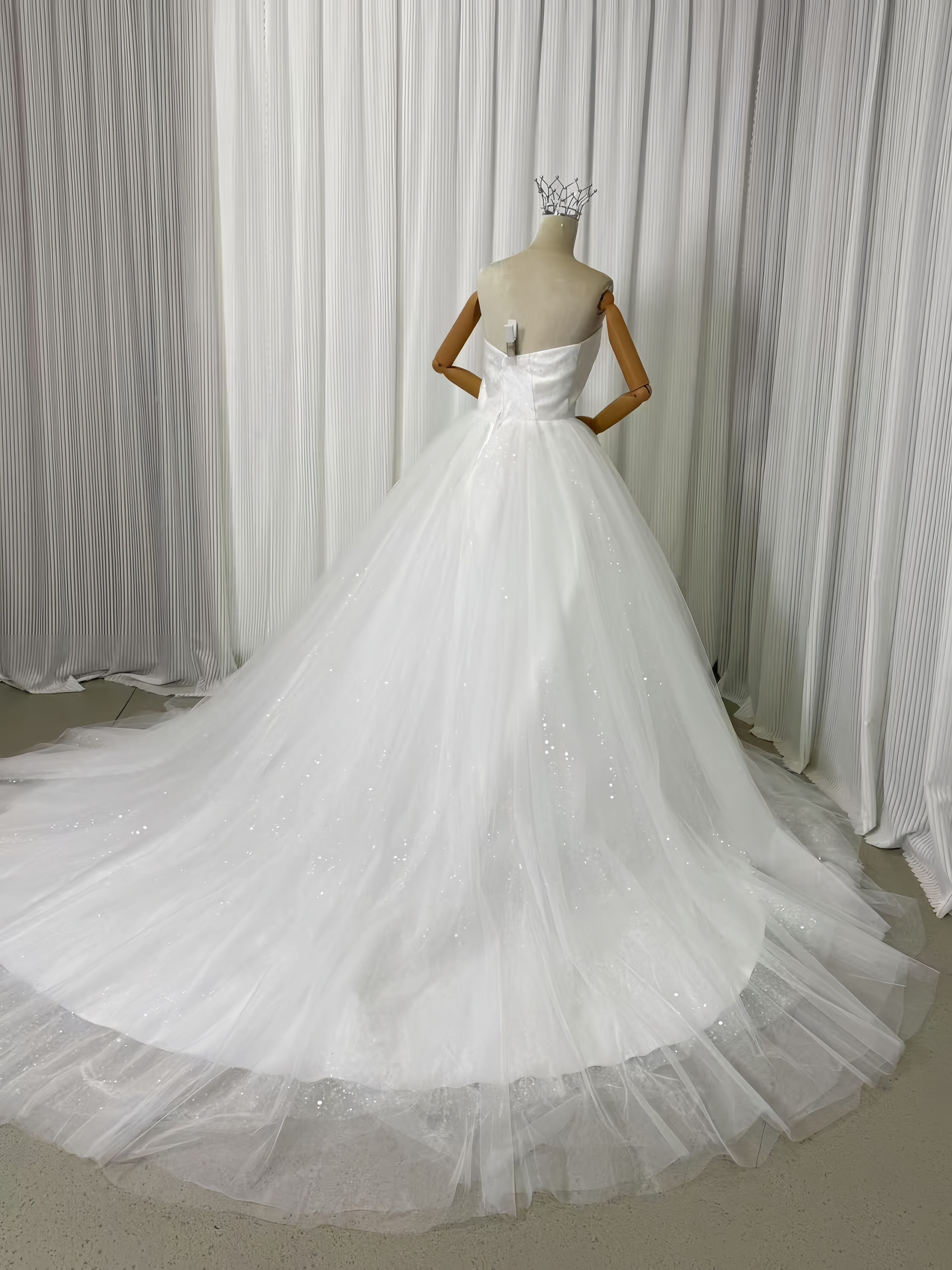 上品 ベアトップ ウエディングドレス ロングトレーン プリンセスライン 2次会 前撮り 花嫁 挙式