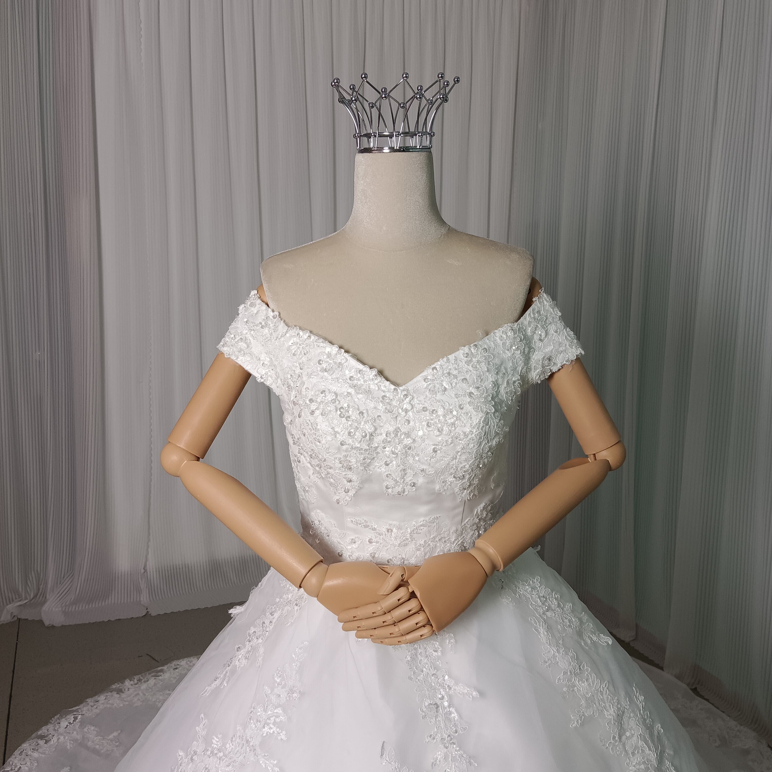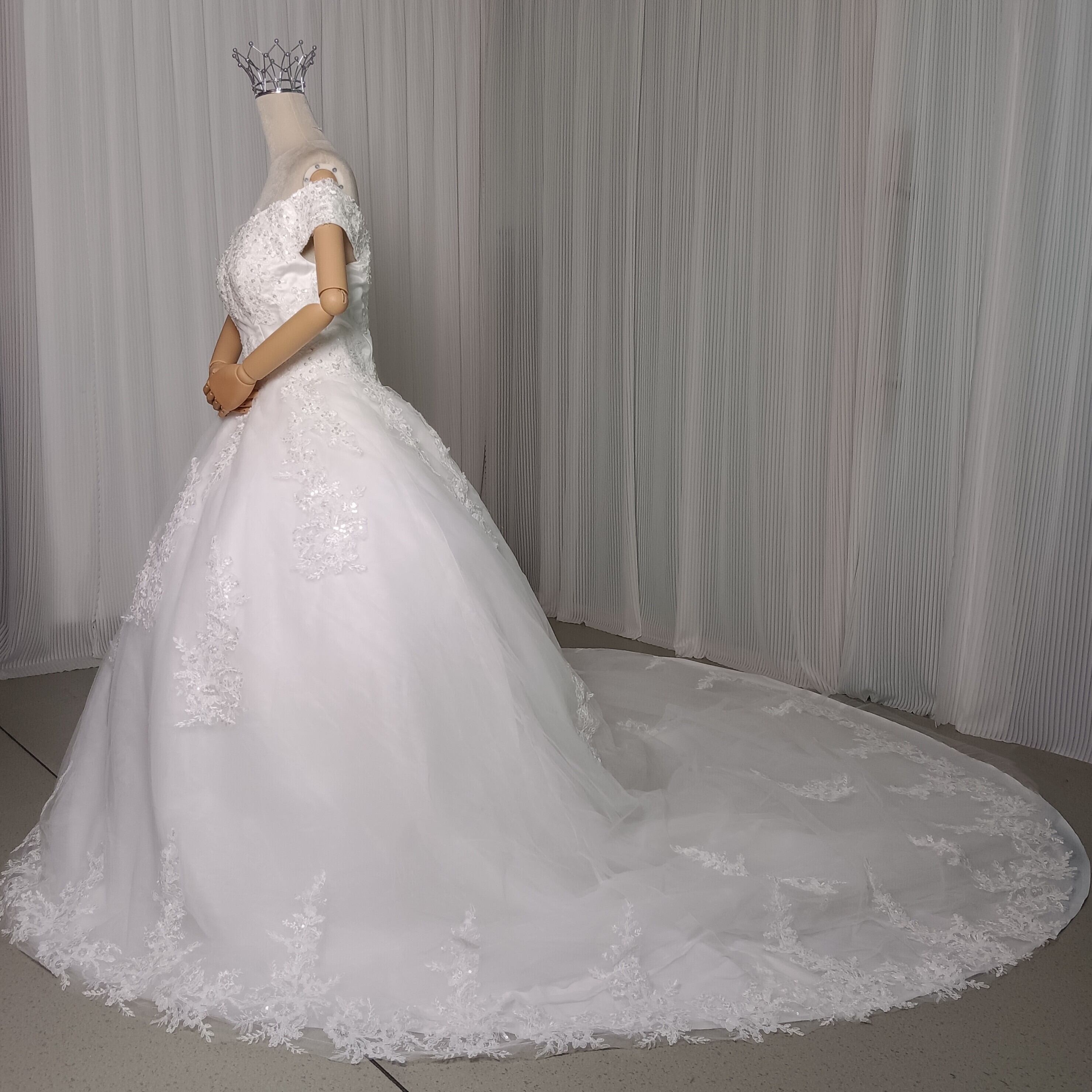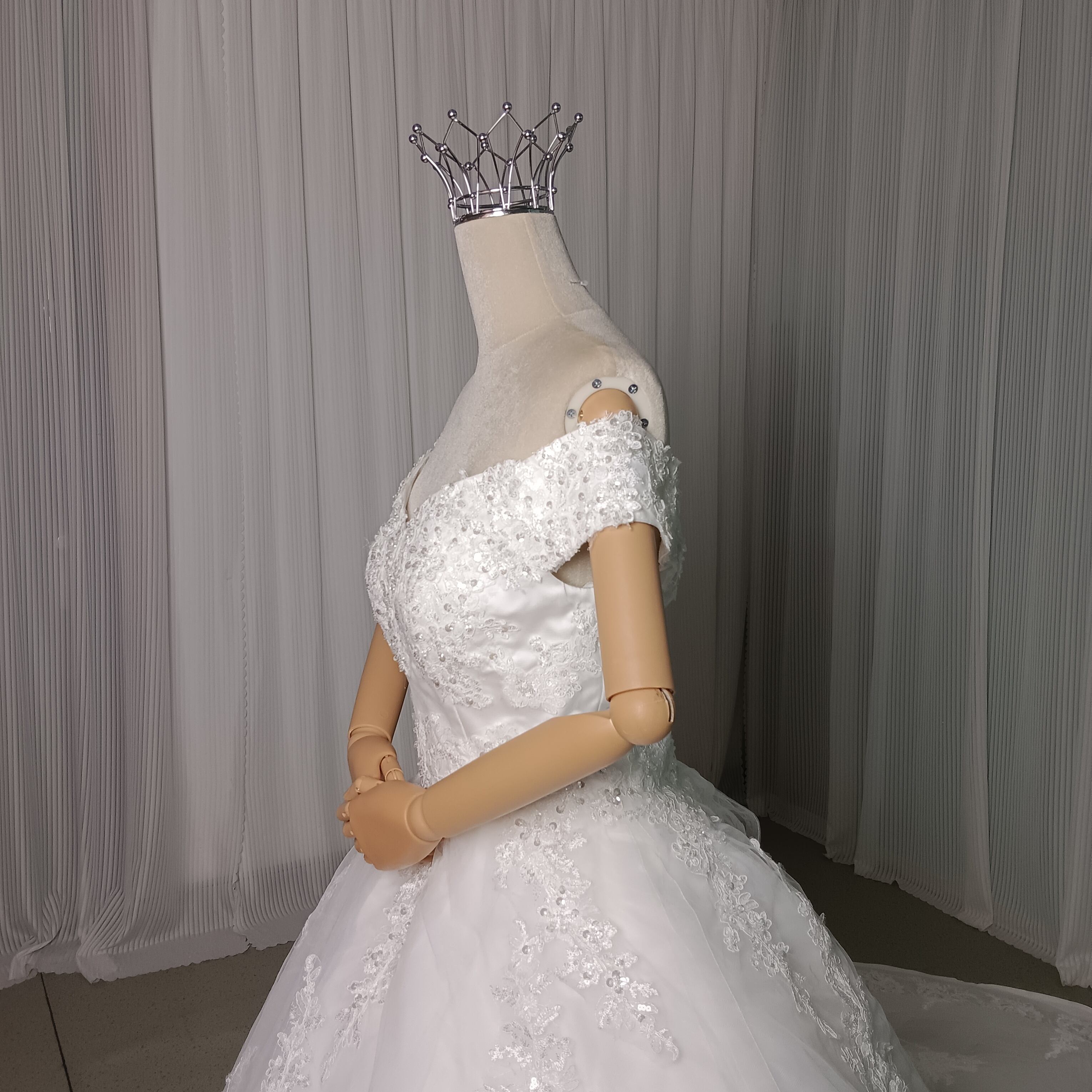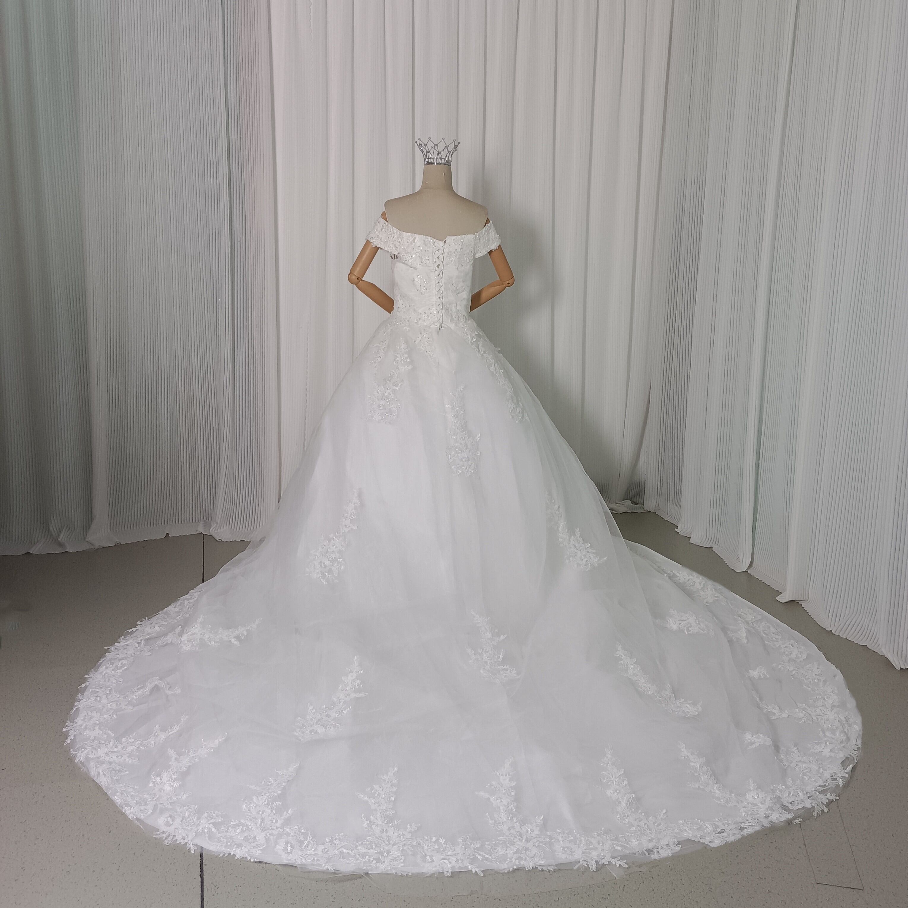 上品 オフショルダー ウエディングドレス ロングトレーン プリンセスライン 2次会 前撮り 花嫁 挙式