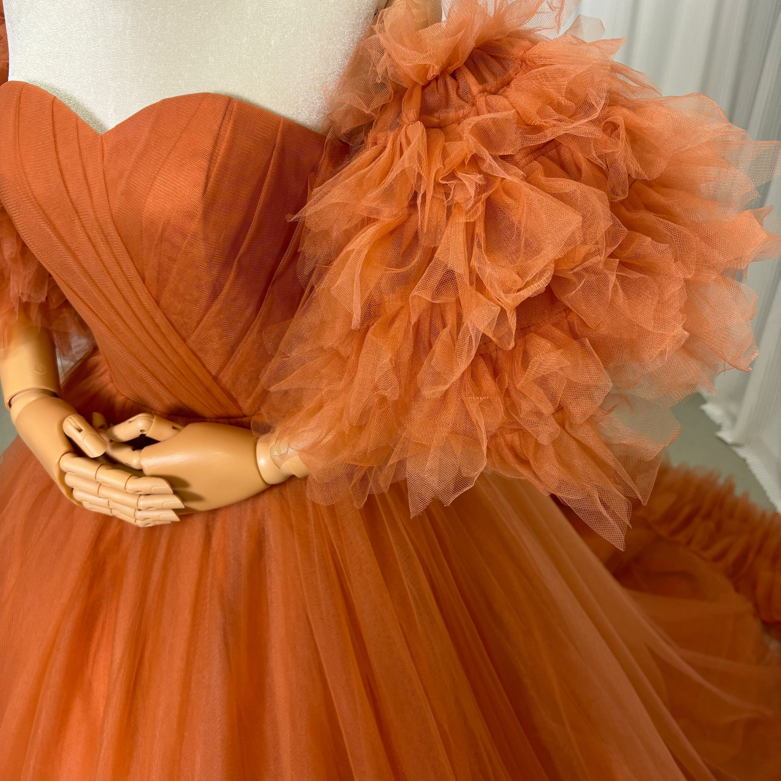 テラコッタ色 取り外し袖 カラードレス パーティードレス華やかなトレーン 前撮り/花嫁/結婚式/披露宴/ 二次会/2次会
