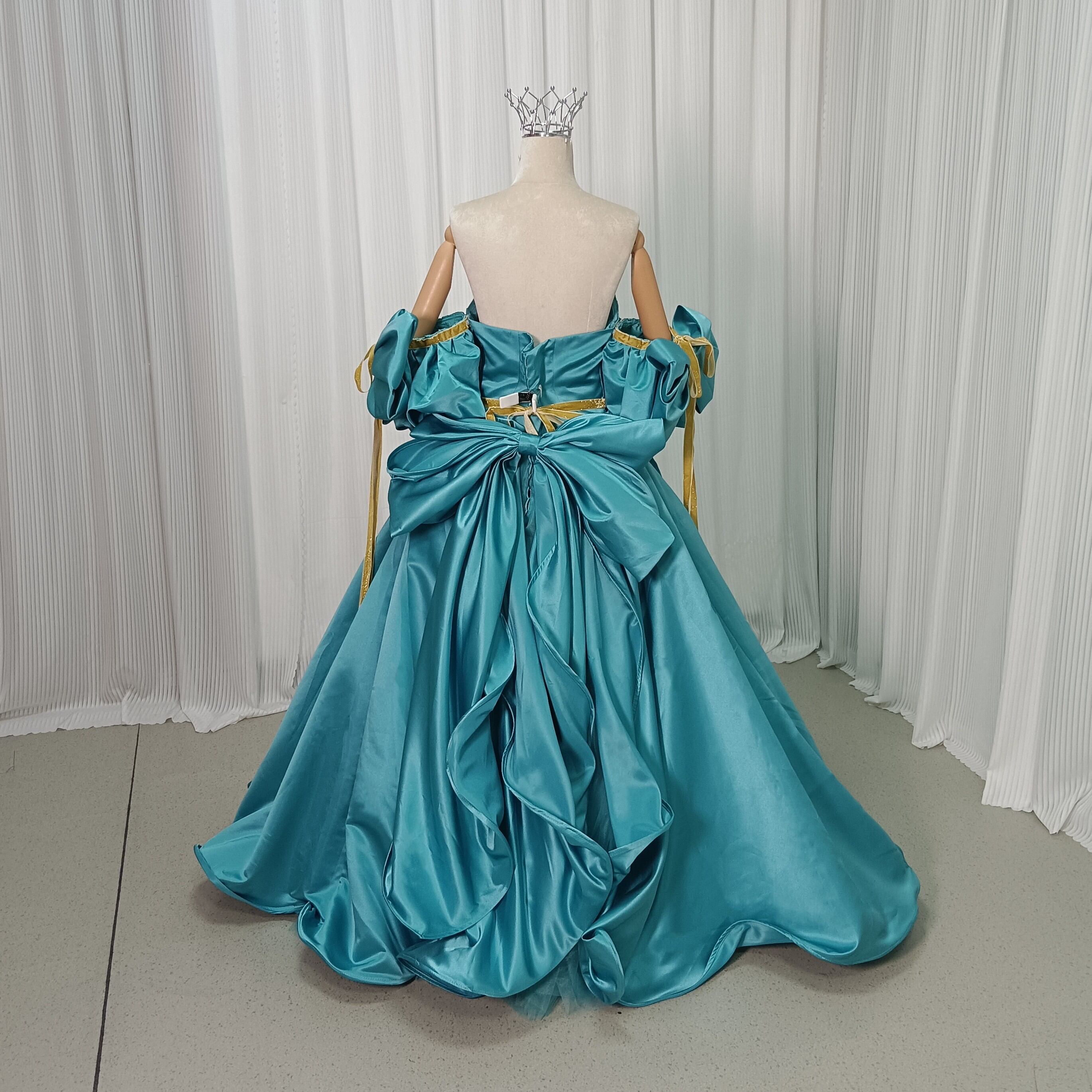 人気上昇! 青 カラードレス ふっくら柔らかなバックリボン  お色直し結婚式 披露宴