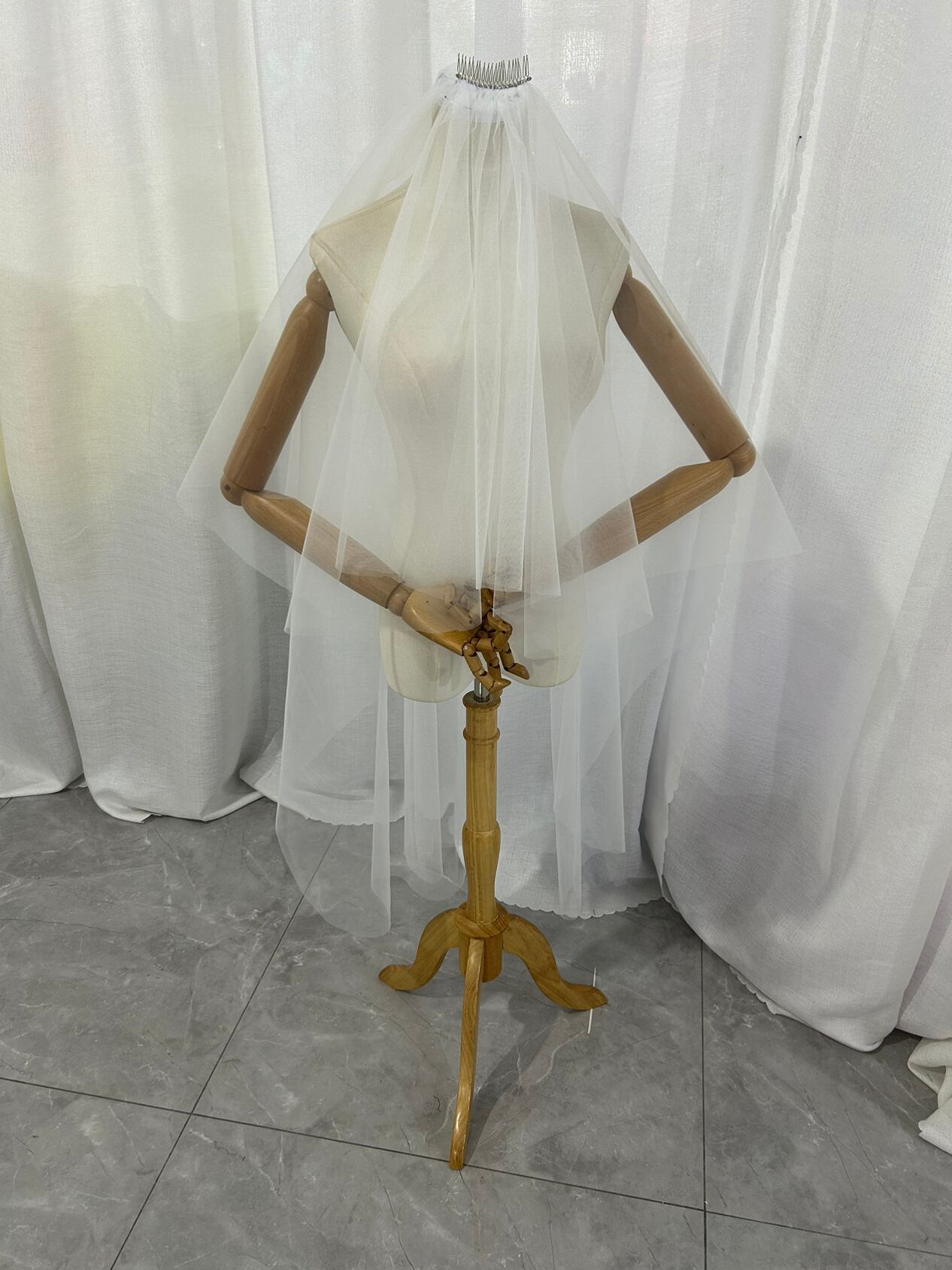 送料無料!送料無料!ウエディングドレス ミドルベール コーム付き  オフホワイト ソフトチュール 結婚式/披露宴
