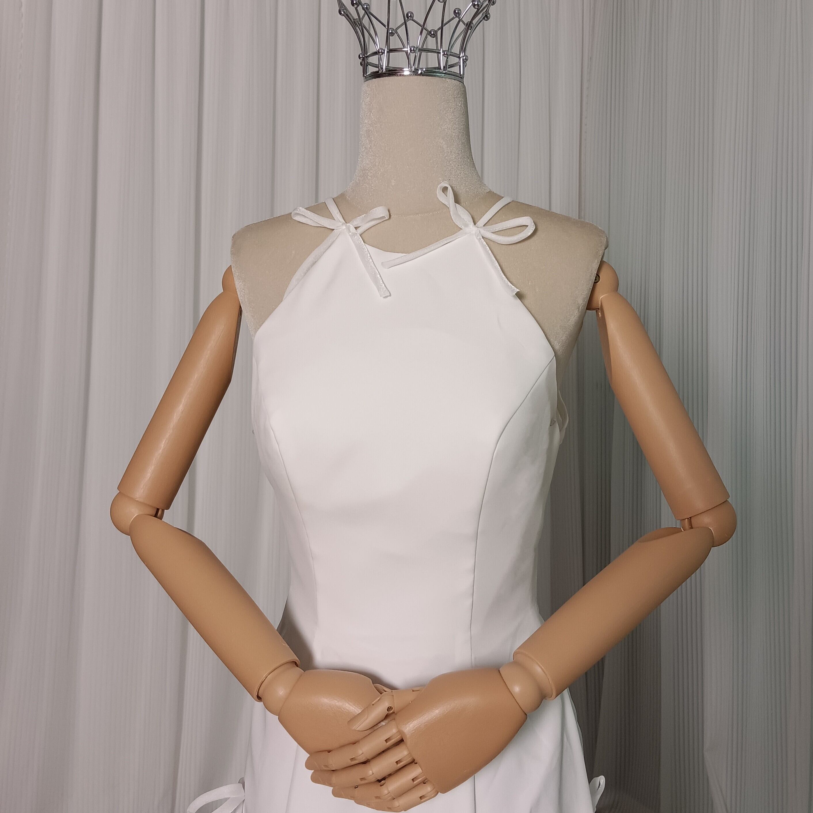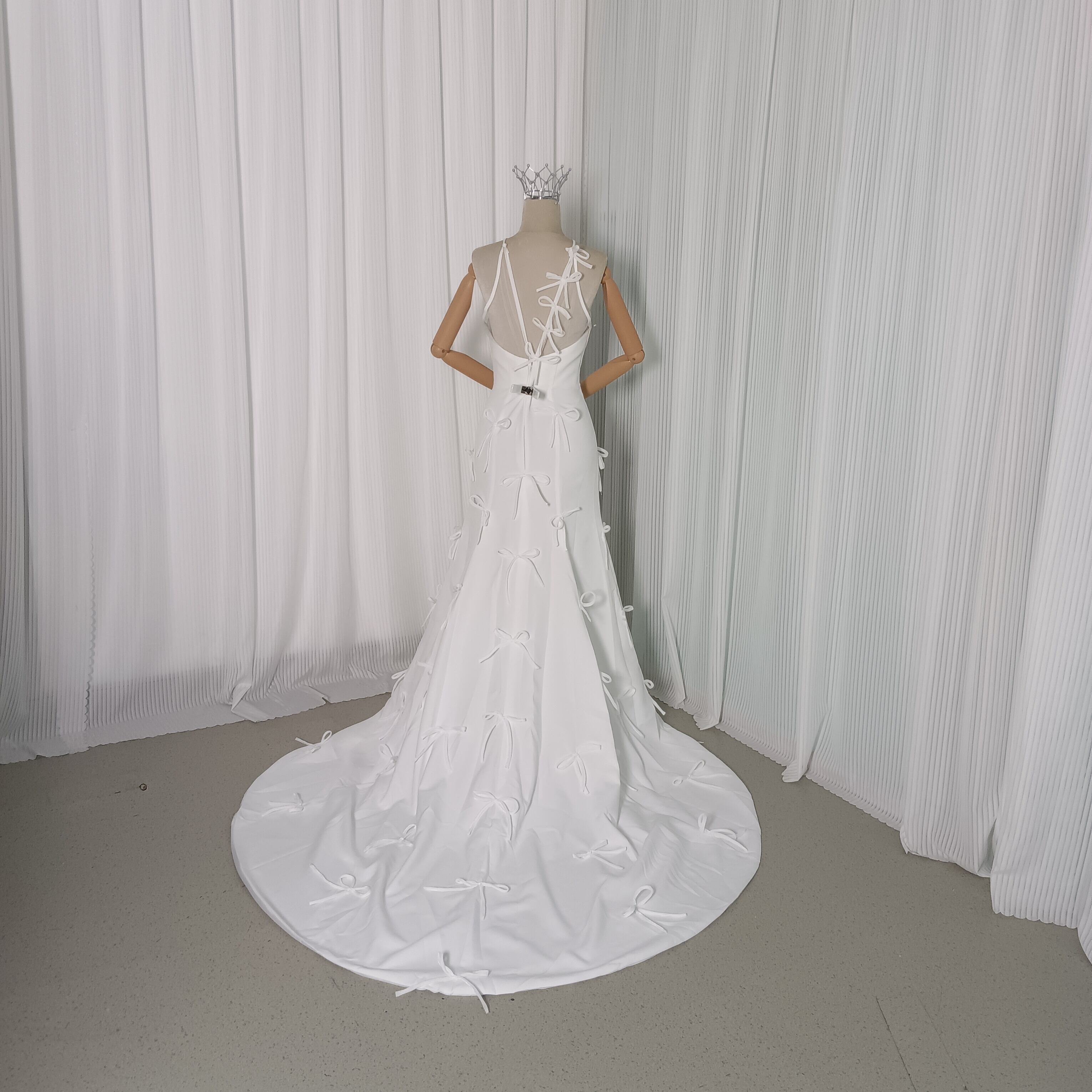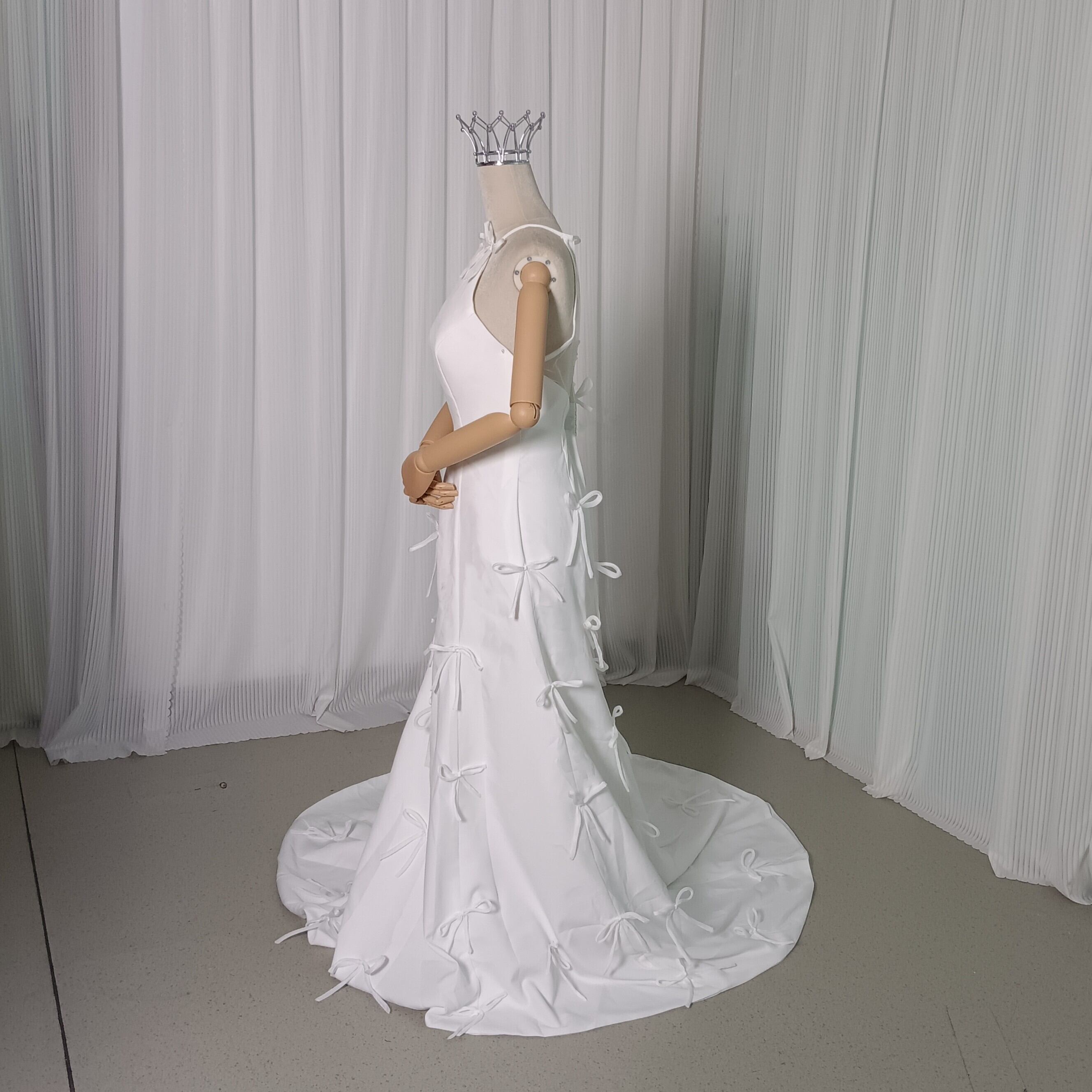 上品 ホルターネック ウエディングドレス 3D立体 リボンロングトレーン 2次会 前撮り 花嫁 挙式