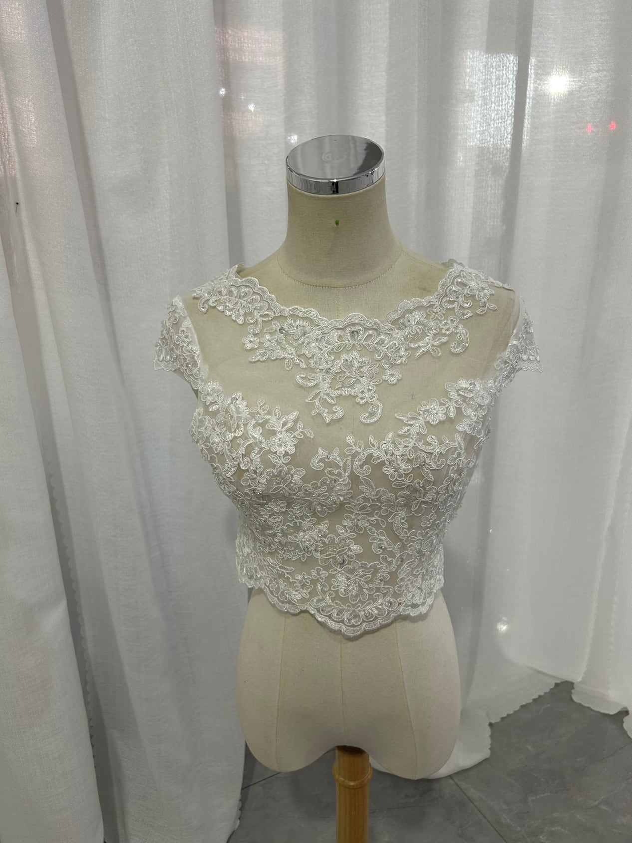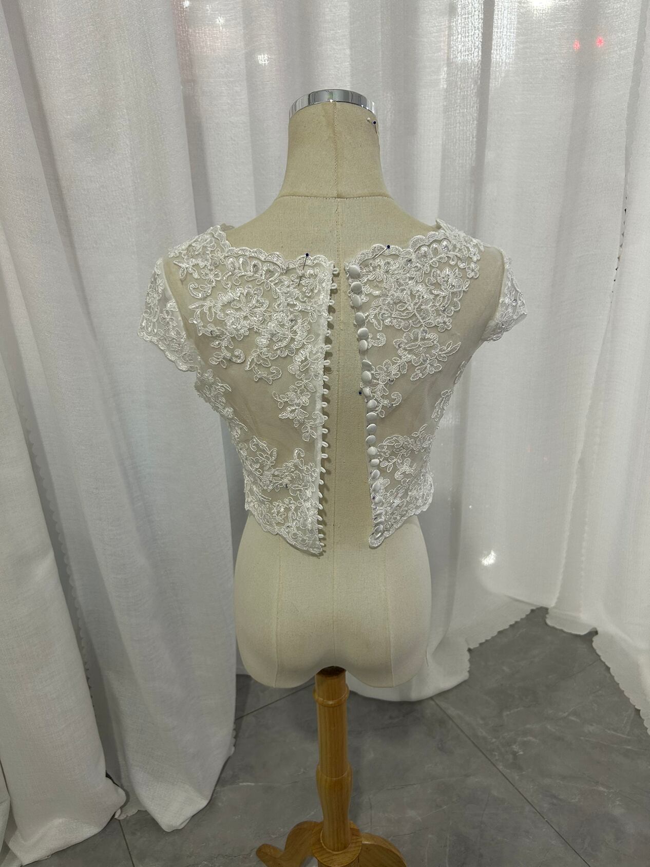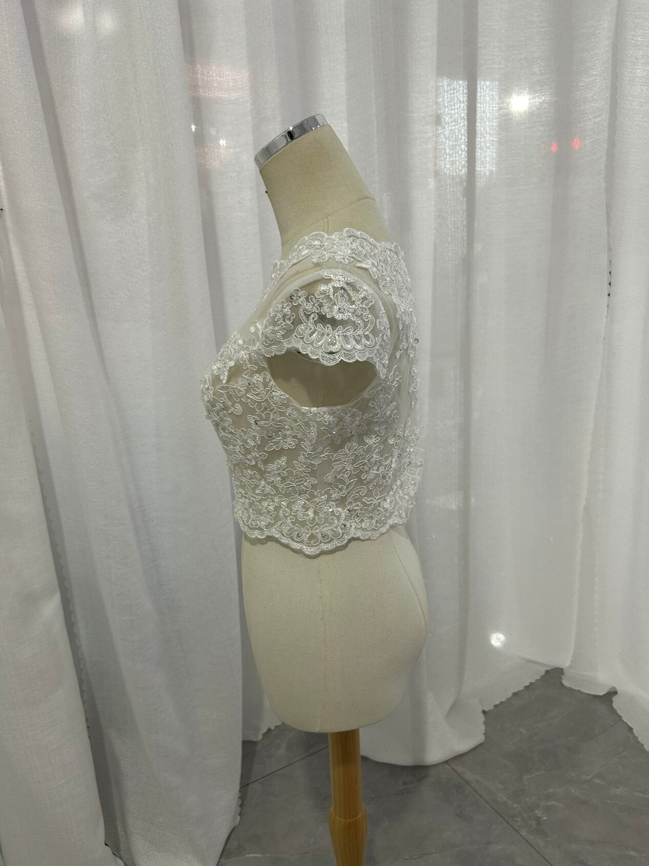 送料無料!エレガント ウエディングドレス キラキラのハンドビーディング ボレロ レース くるみボタン結婚式/披露宴 Size:S (+¥0)