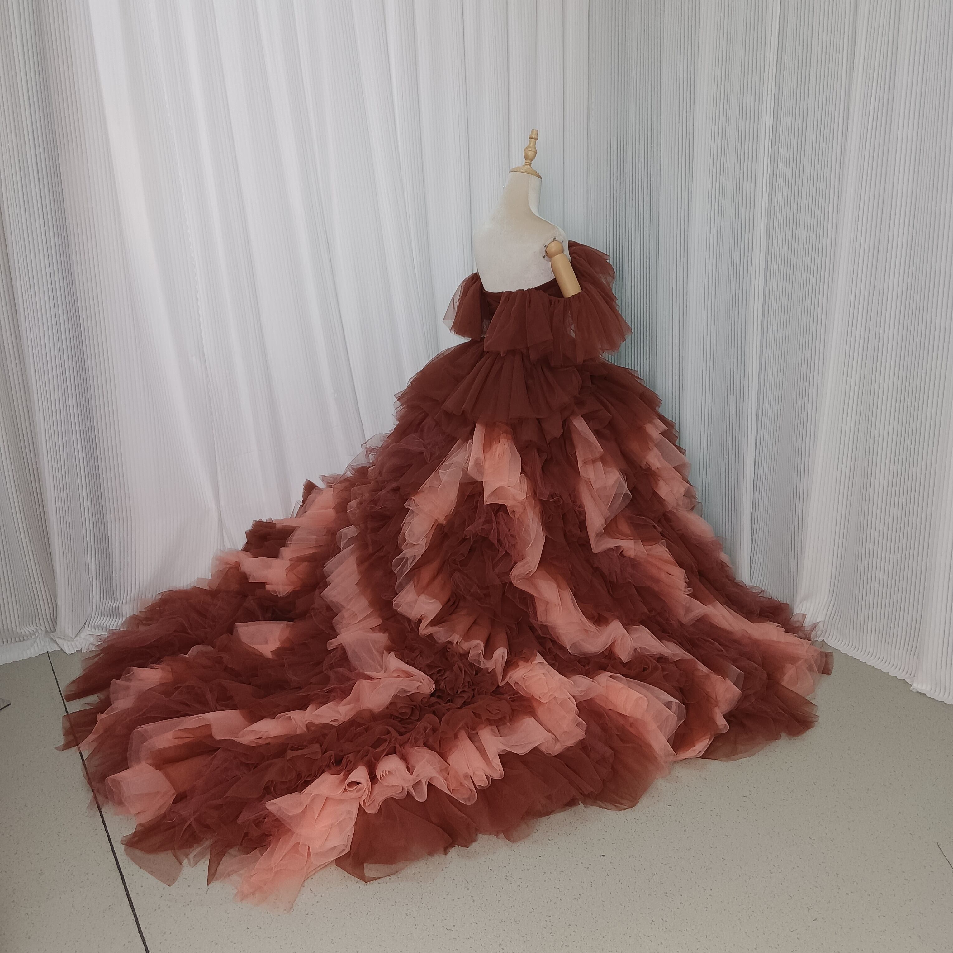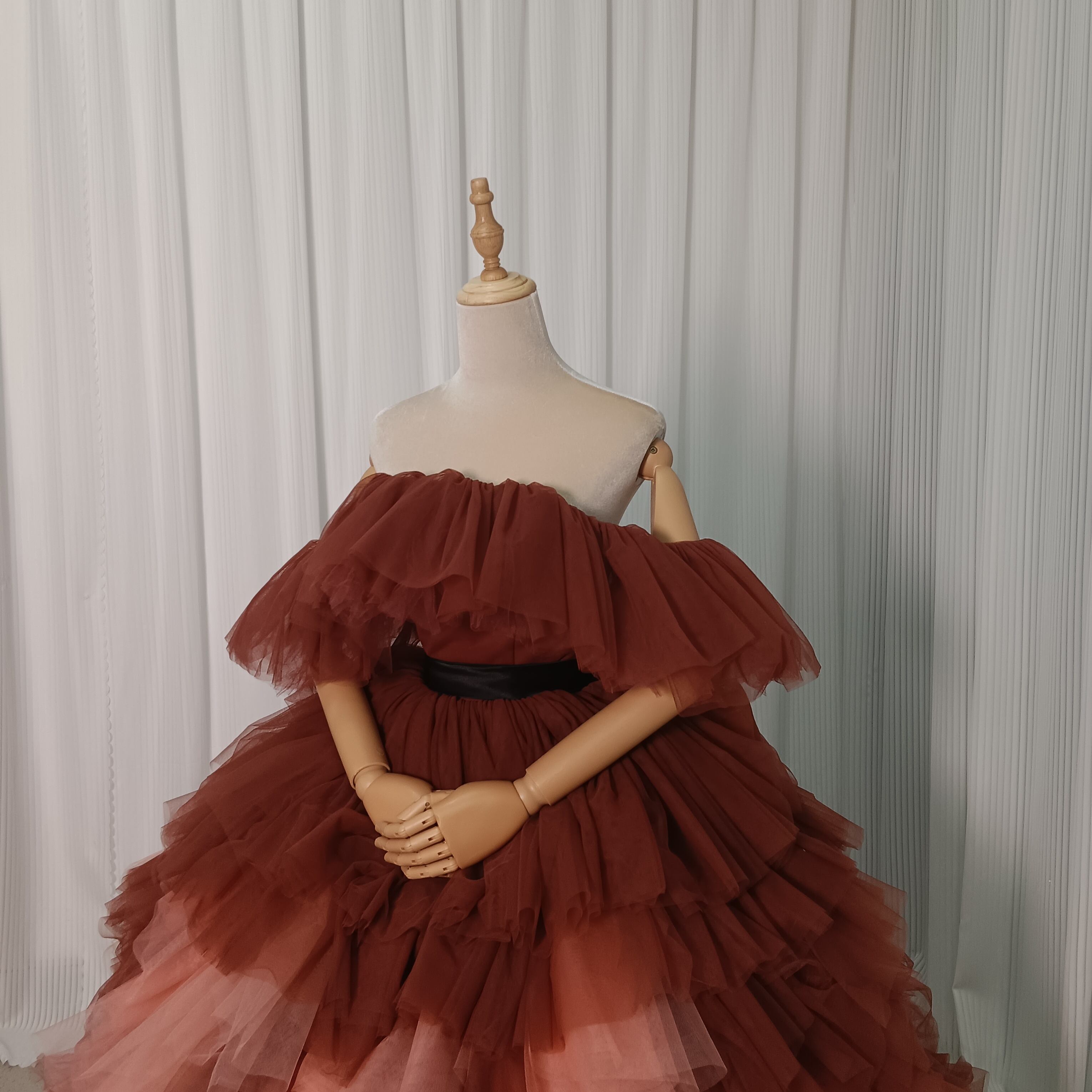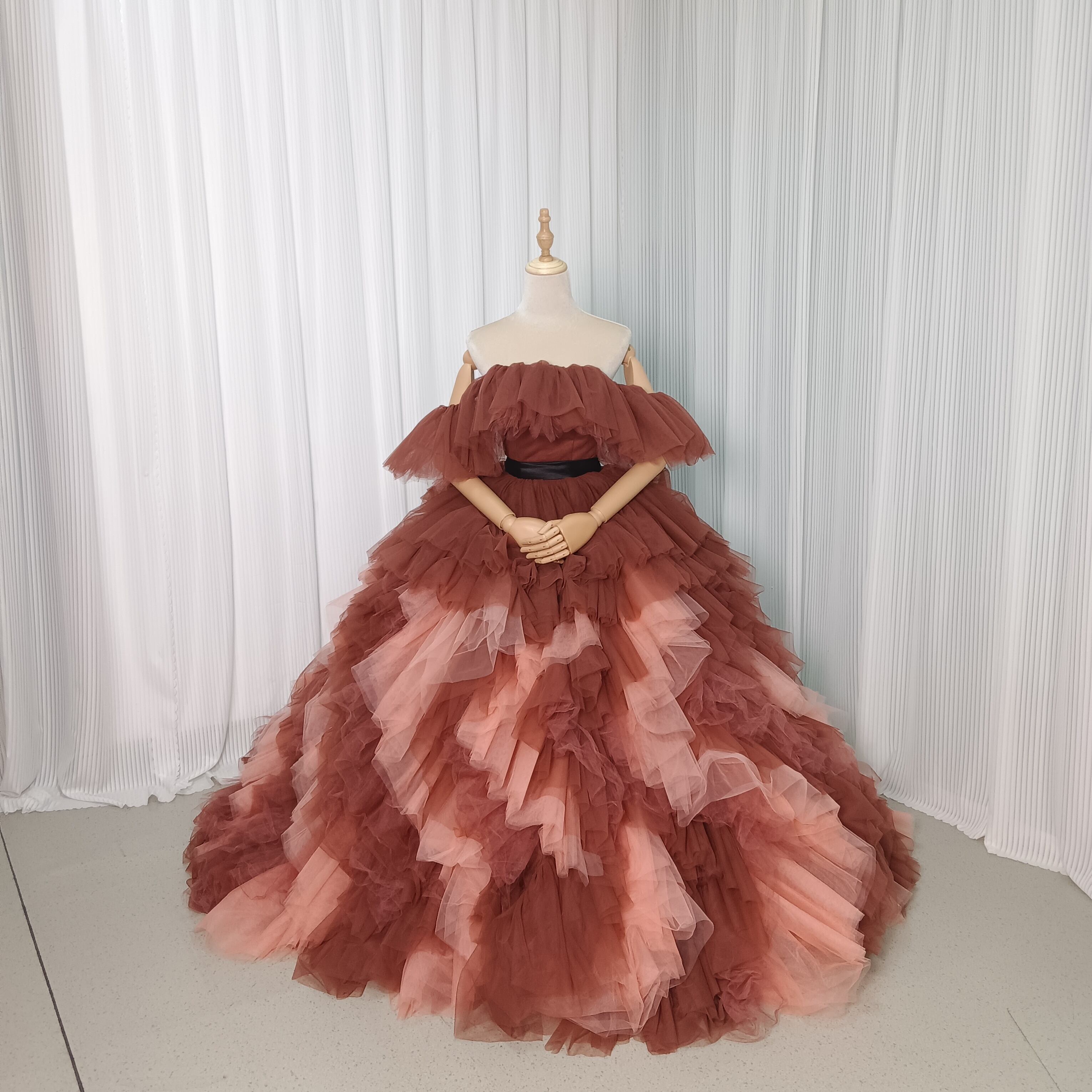 人気上昇!韓国風カラードレス 2色 もこもこチュールドレス ボリューム パフスリーブ 色オーダー可能